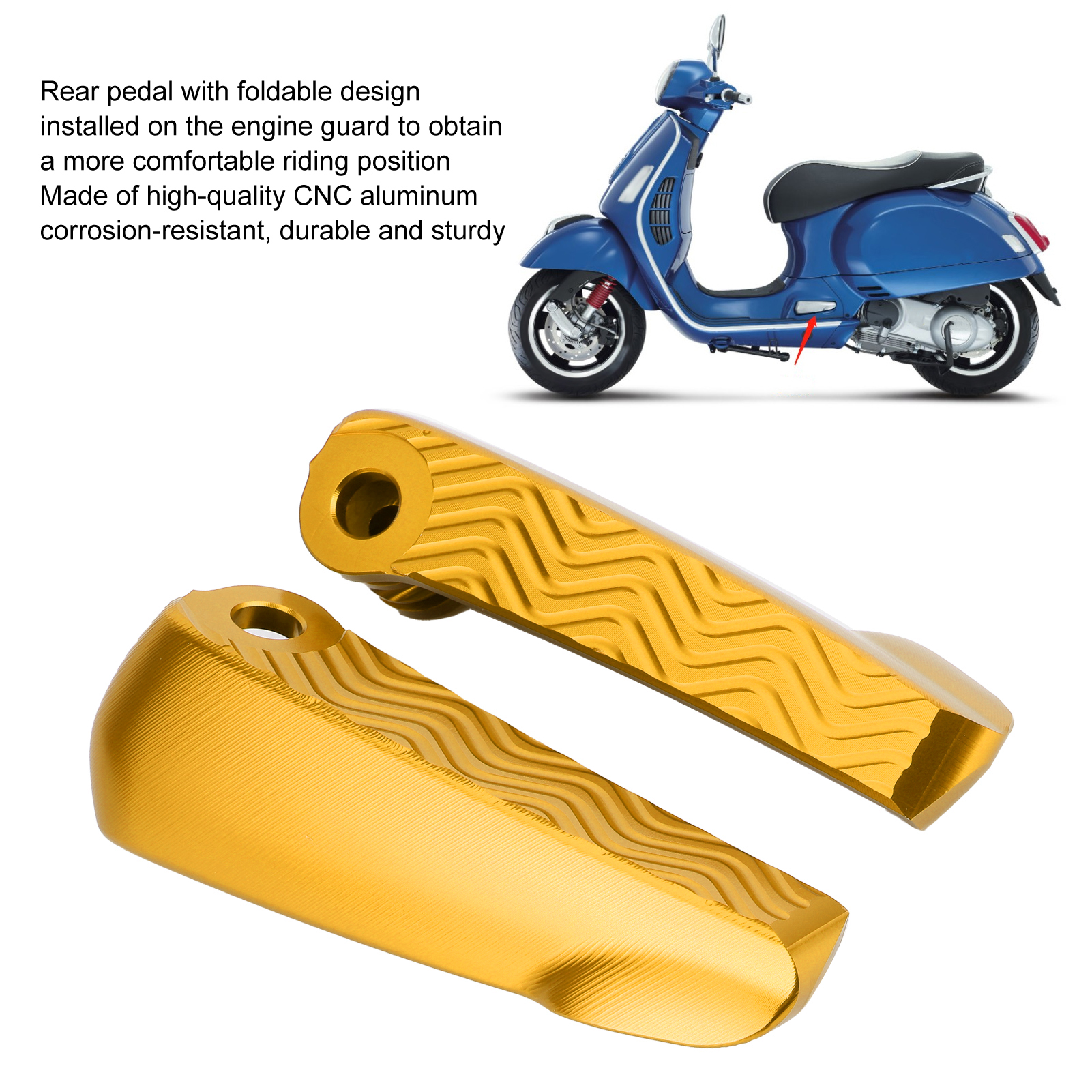 Pair Rear Foot Pegs Pedal Pad Motorcycle Folding Footrest Fit for Vespa GT/GTS/GTVGold