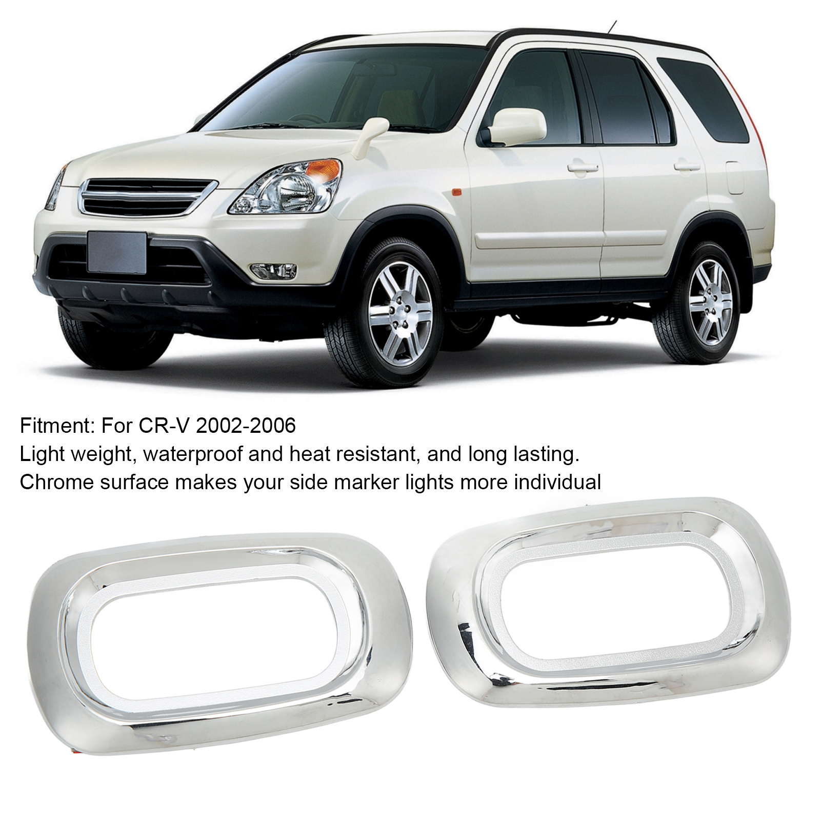 1、Applicable Model: Side marker light covers fit for CR‑V 2002‑2006, please confirm the model carefully before purchasing. 2、High Quality Material: Made of superior quality ABS material, light weight, sturdy and durable, long service life. 3、Chrome Plated: The surface is chrome‑plated, which makes your side marker lights more individual and conspicuous, and enhances the appearance of the vehicle. 4、Long Durability: Heat‑resistant, waterproof, and durable in all weather conditions. Perfectly match with your original car. 5、Easy Installation: No need complicated tools, can be installed with self‑adhesive tape without hurting the body.