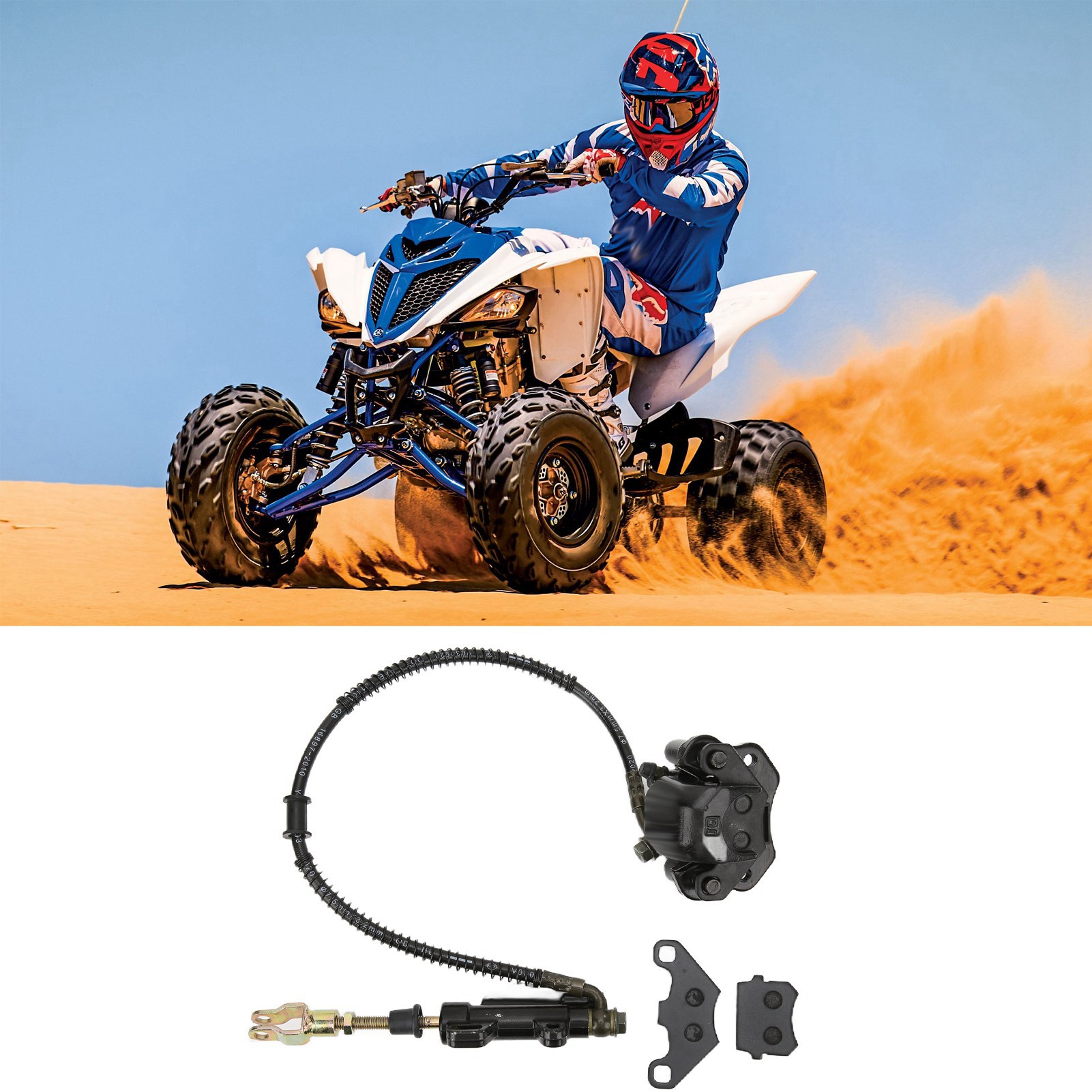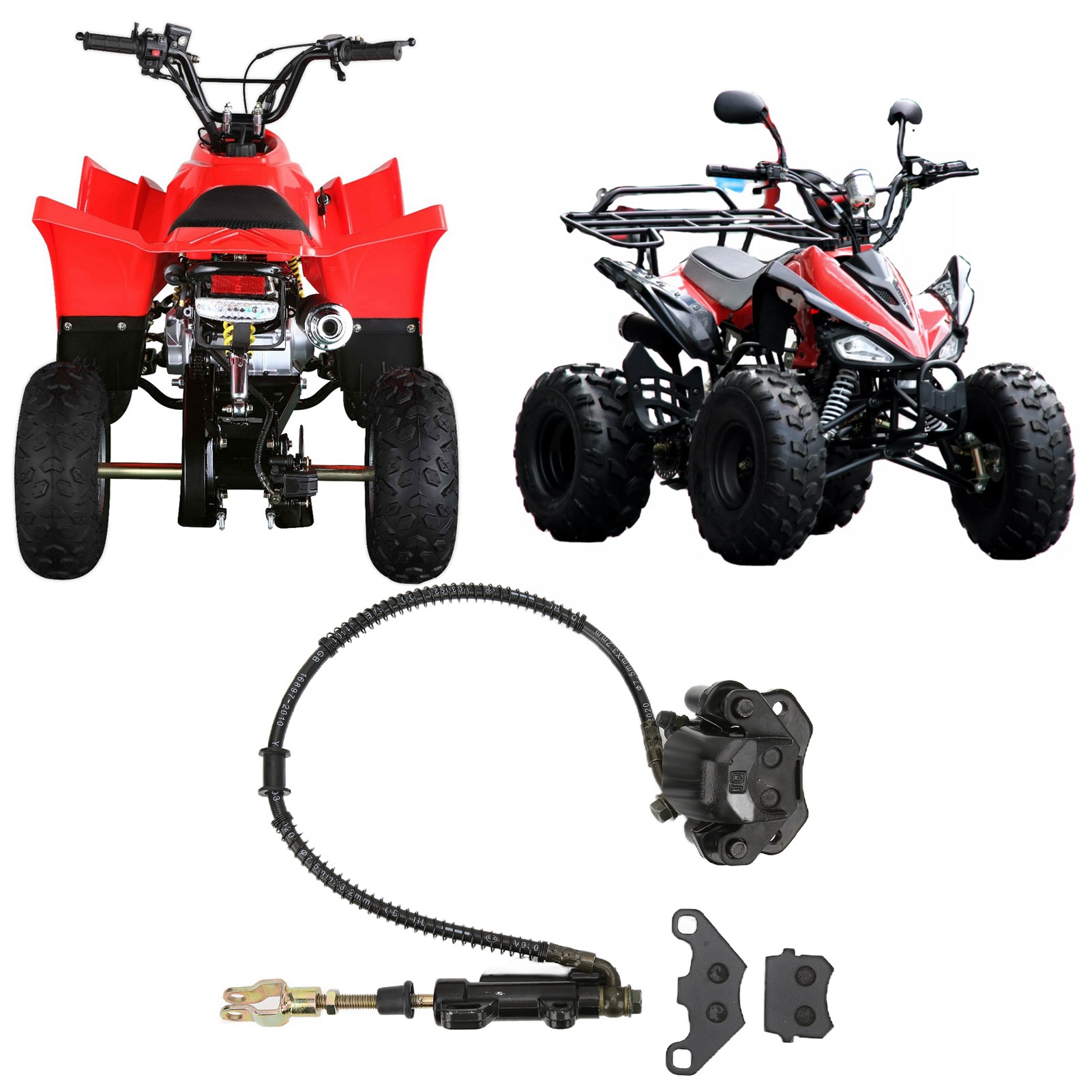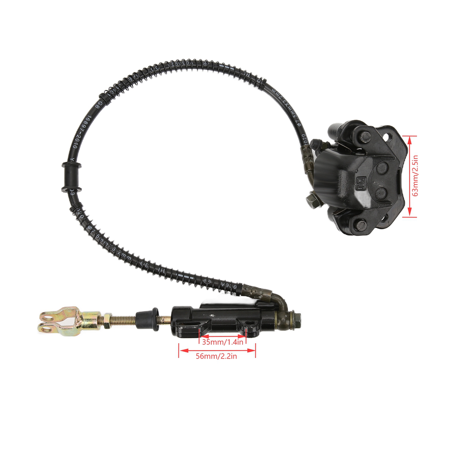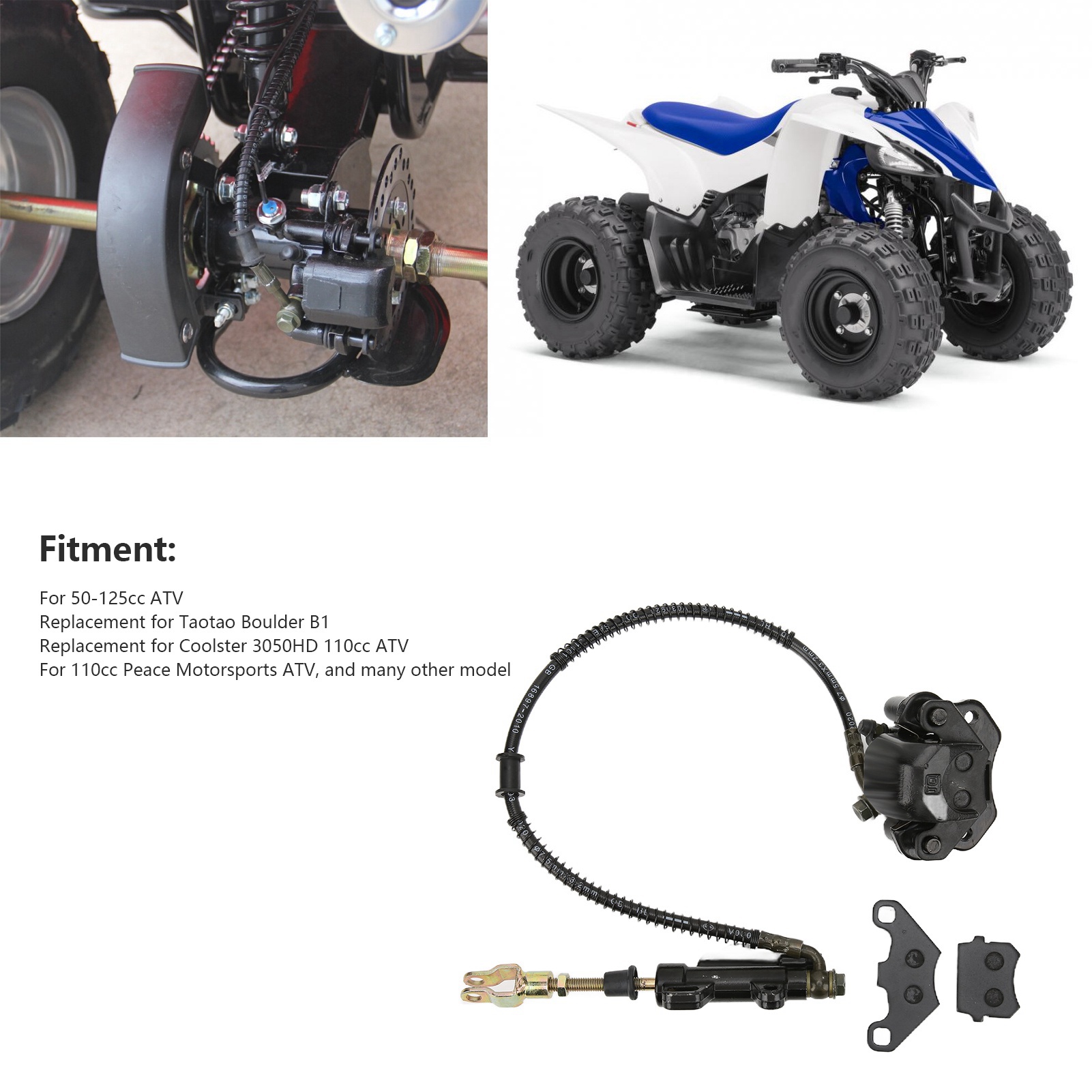 1、Replacement for Taotao Boulder B1, replacement for Coolster 3050HD 110cc ATV, suitable for 50‑125cc ATV. 2、Brake tubing length is 21.5in/550mm, brake caliper mounting hole center spacing :2.5in/63mm, banjo bolt size is M10x1.25 (thread diameter: 10mm/0.4in, pitch: 1.25mm/0.05in). 3、Effectively improve the braking performance of the original car and improve riding safety. 4、Compelet brake assembly comes with brake fluid and brake pads, plus 1 extra set of brake pads as spare parts. 5、It is widely used for the replacement of the rear brake caliper of the original car, refurbishment, upgrading and refitting.
