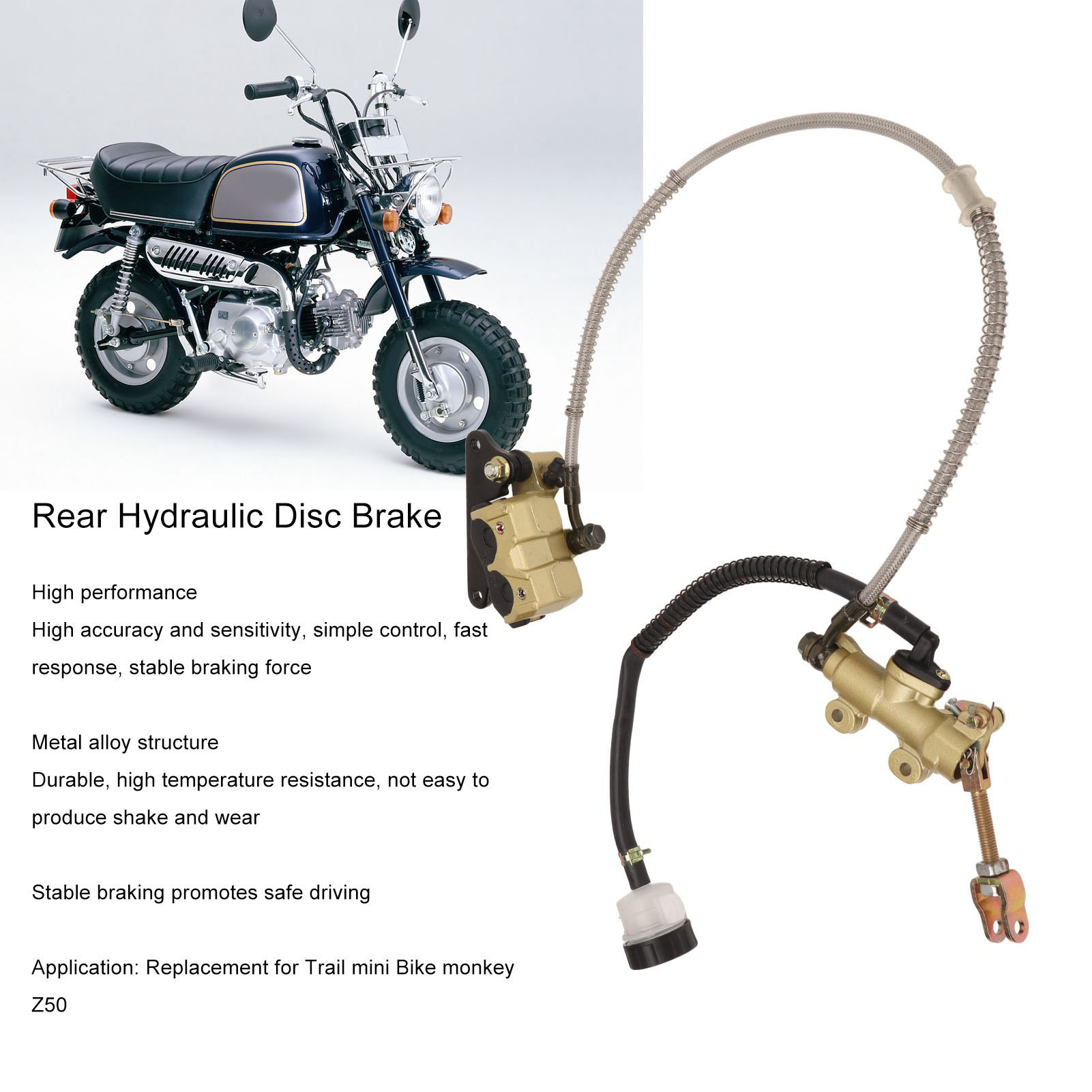 1、Strong Compatibility: Rear hydraulic disc brake is replacement for Trail mini Bike monkey Z50, which is made according to the prototype model. 2、Easy Control: Disc brake can realize faster braking effect, not easy to produce shaking and wear, and can better control your motorcycle. 3、Efficient Braking: Adopts hydraulic system, featuring fast response, high accuracy and sensitivity, stable braking force and good reliability. 4、Sturdy Construction: Made of high strength metal alloy material, durable and high temperature resistant, excellent stability and long service life. 5、Ideal Replacement: Used to replace the original damaged old brake pump, improve braking performance, increase the safety of your vehicle.