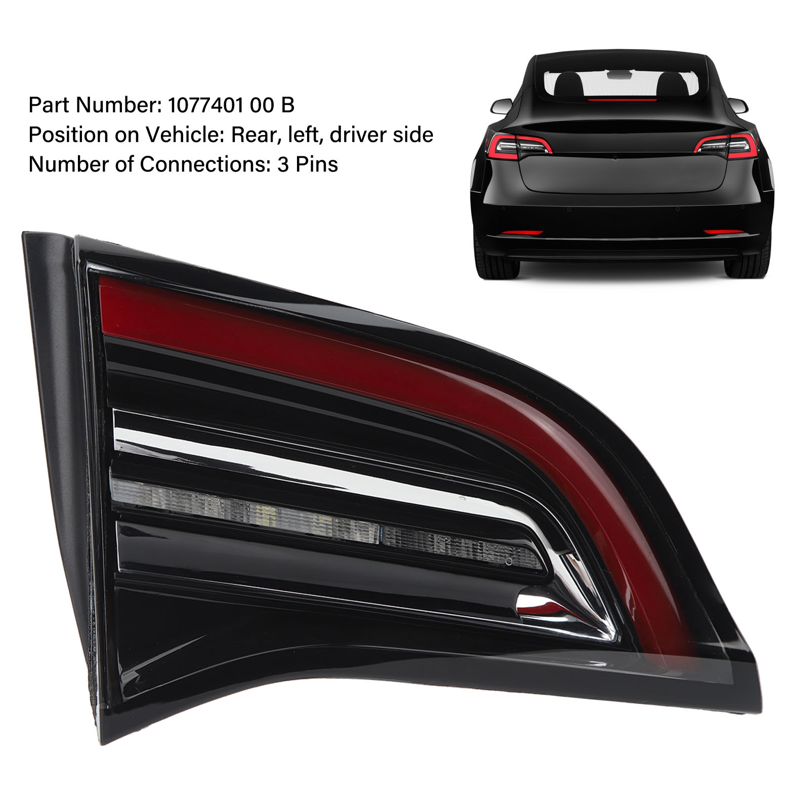 1、Vehicle Fitment: Rear left inner tail light is replacement for 3 2017‑2020, which is made according to the prototype of the car. 2、Part Number: Side inner tail light replace part number is 1077401 00 B. Please double check the part number of your item to ensure perfect fit. 3、Safe Driving: Light uses a high brightness light source, which can enhance the visual effect when driving and greatly improve the safety of driving. 4、Cool Style: Side inner light is fully in line with the overall style of the original car, which will not destroy the beauty of the original car and enhance personalized features. 5、Ideal Replacement: Rear inner tail lamp can be used to replace the old and damaged one of the original vehicle to improve the riding experience.