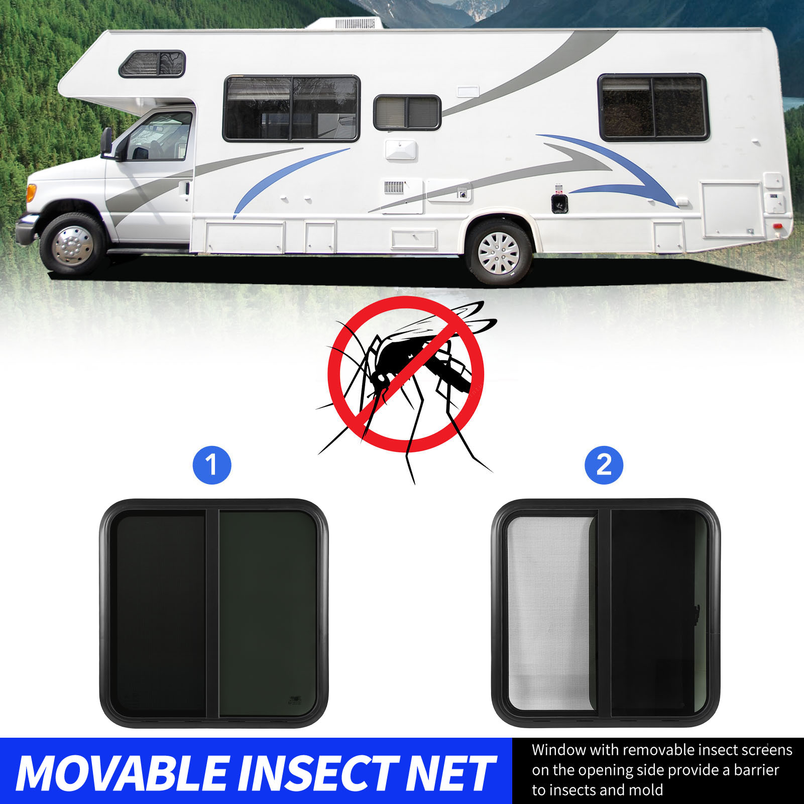 Application: Tinted windows with insect nets protect your privacy and ensure full sun does not heat the interior of your RV, fully sealed windows keep your camper cold in summer and warm in winter, used in storage cabins, living rooms, lounges or wherever windows are required, can be used for your camper trailer retrofit and other projects