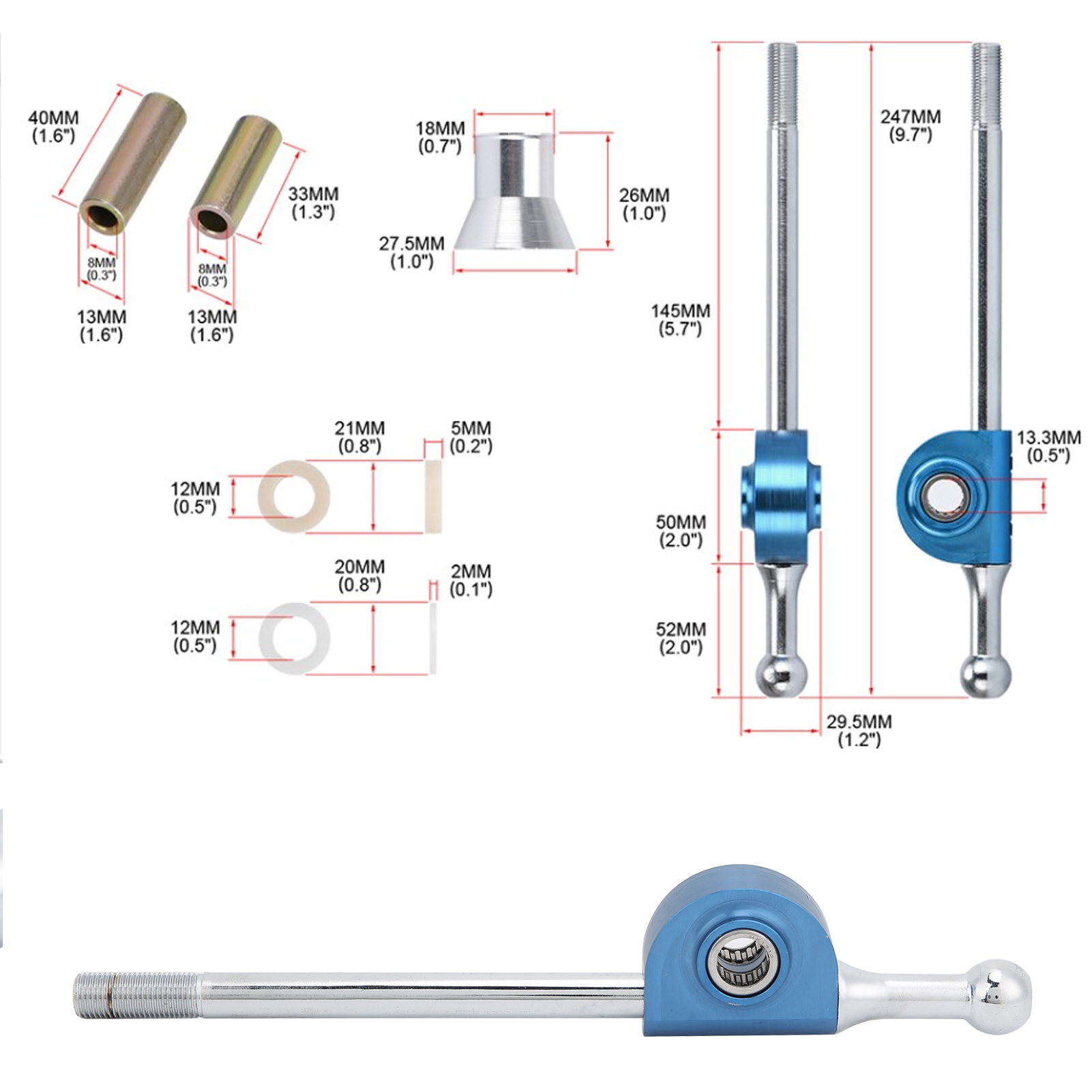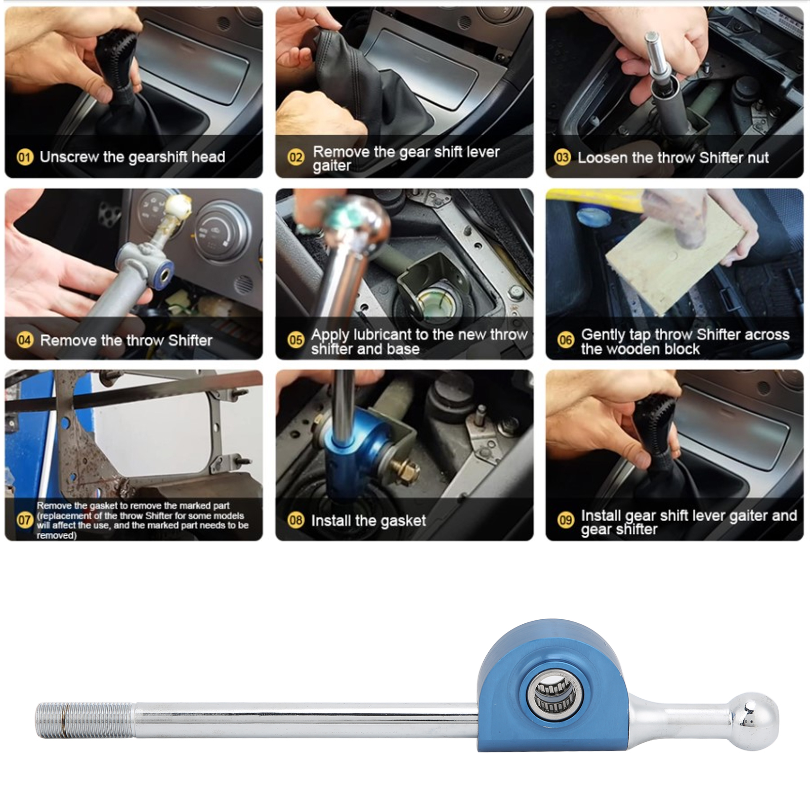 1、Reducing gear throws by 40%, which can provide faster and more direct gear selection to achieve smooth and precise gear changes. 2、Including stainless steel stick assembly and spherical pivots, and CNC machined aluminum mounts with roller bearings. 3、CNC‑processed anodized aluminum bracket, equipped with roller bearings for high mileage. 4、CAD design for precise gear selection. Designed specifically for motorsports, it is ideal for hard driving and off‑road racing. 5、All this is combined with a simple straightforward installation. Direct bolt-on installation, without complicated operations.
