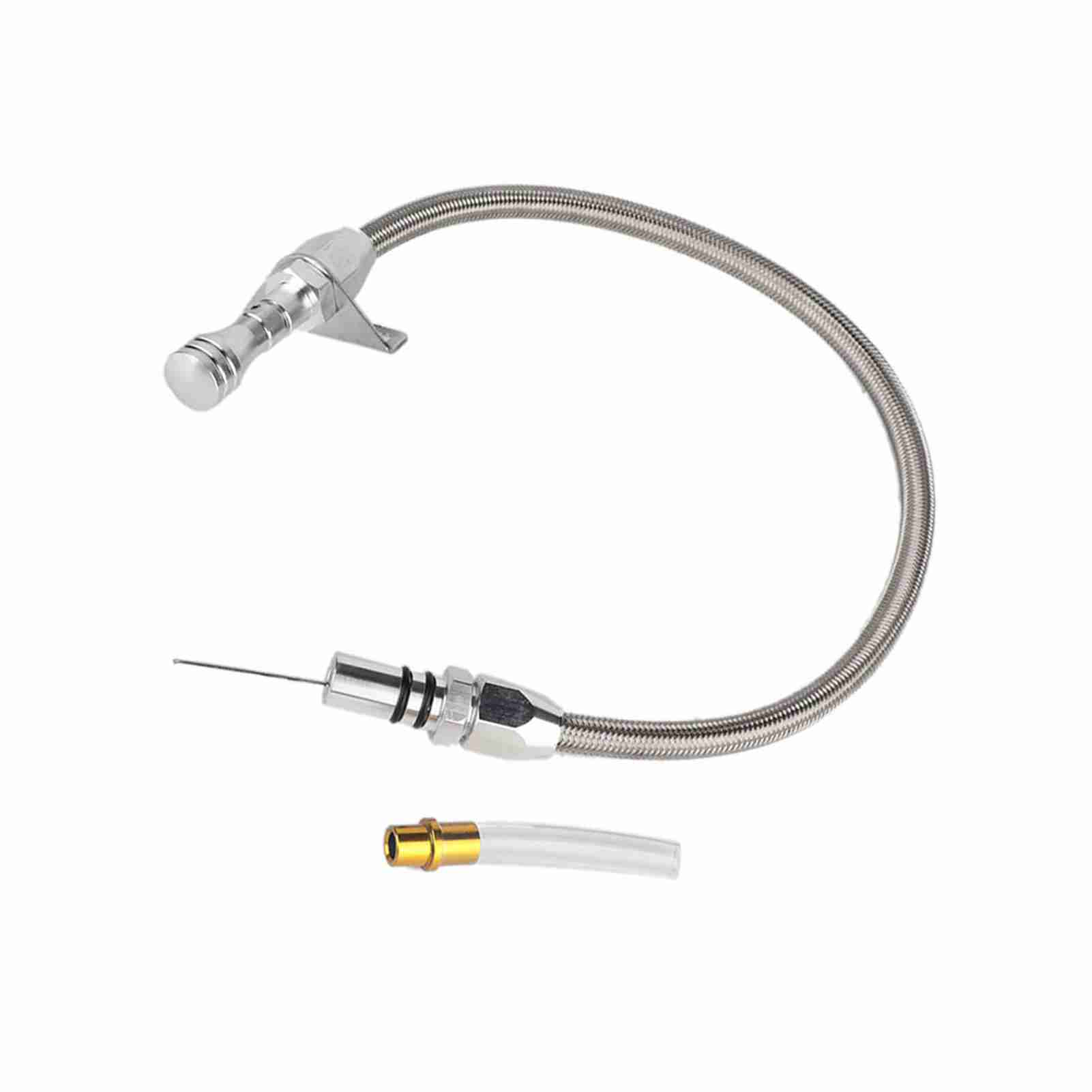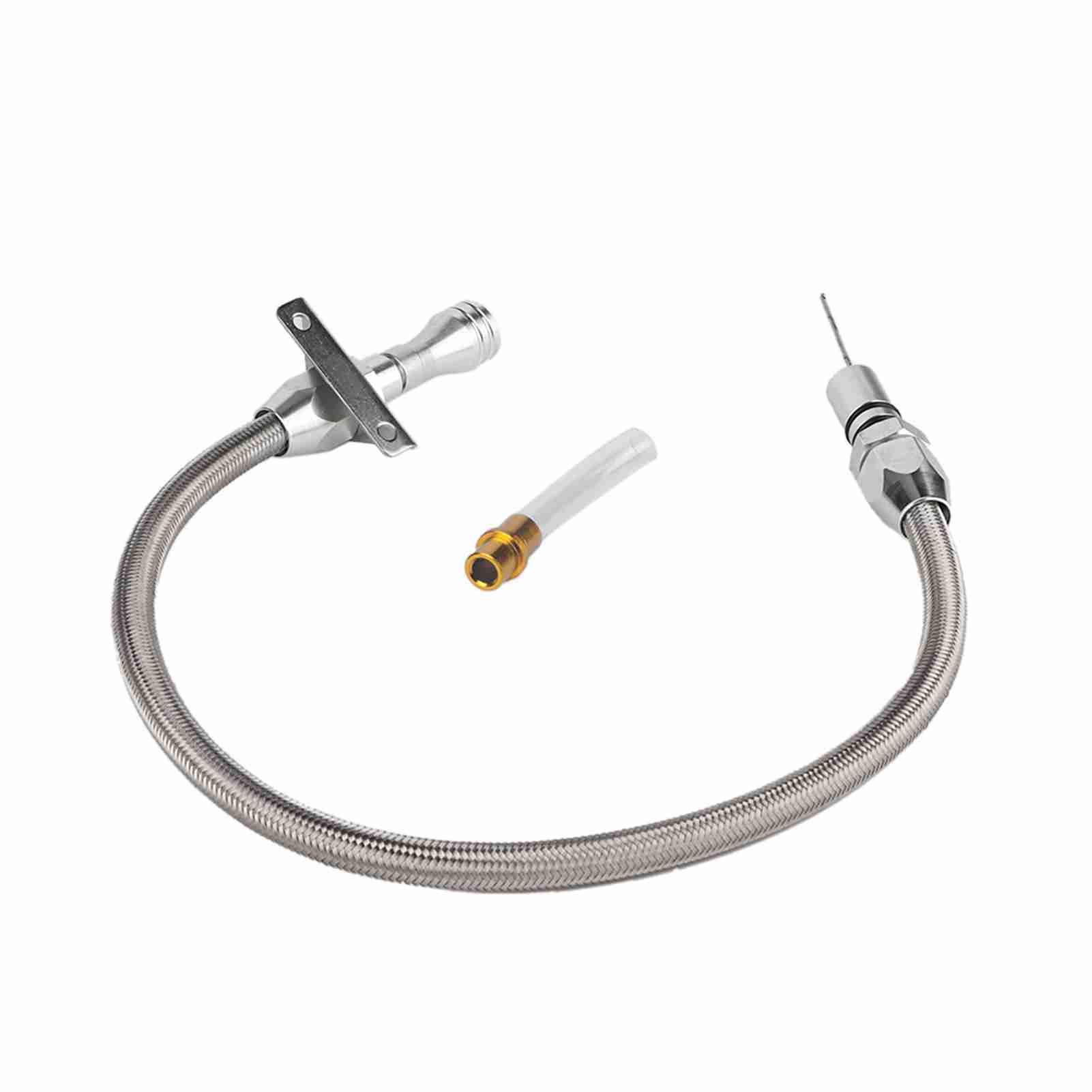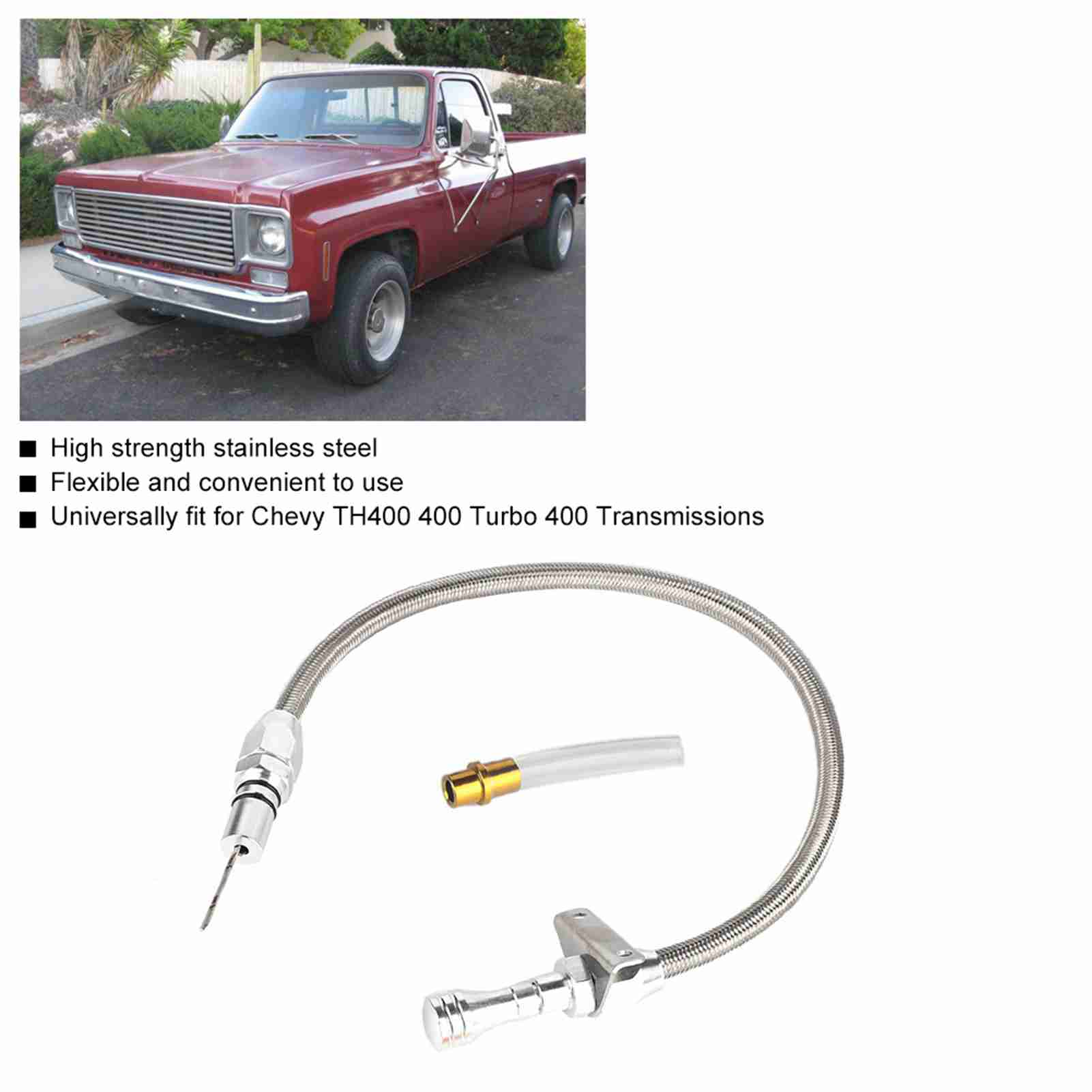 1、Excellent quality transmission dipstick with outstanding performance. 2、Stainless steel braided housing, high strength, durable for long-lasting use. 3、Beautiful and glossy appearance, looks incredibly great insdie any engine bay. 4、Flexible and convenient to use, good corrosion resistance. 5、Universally fit for Chevy TH400 400 Turbo 400 Transmissions.
