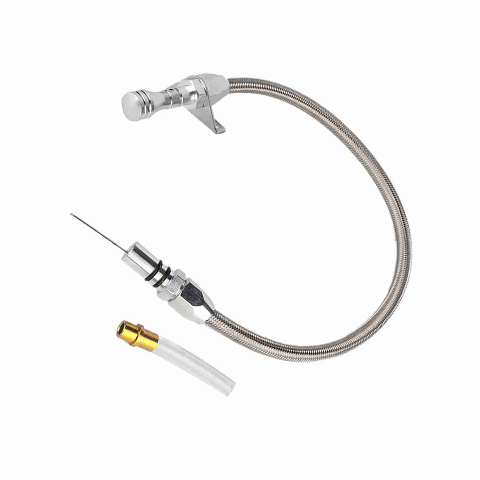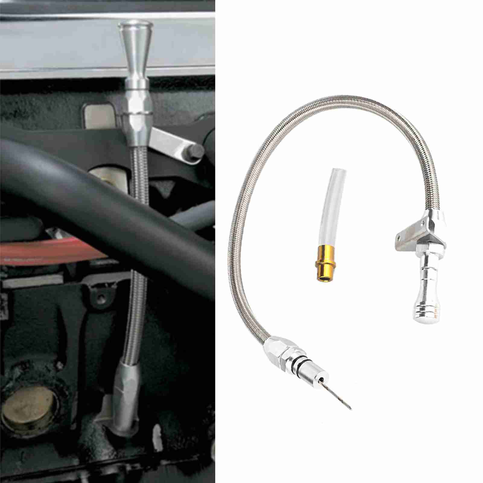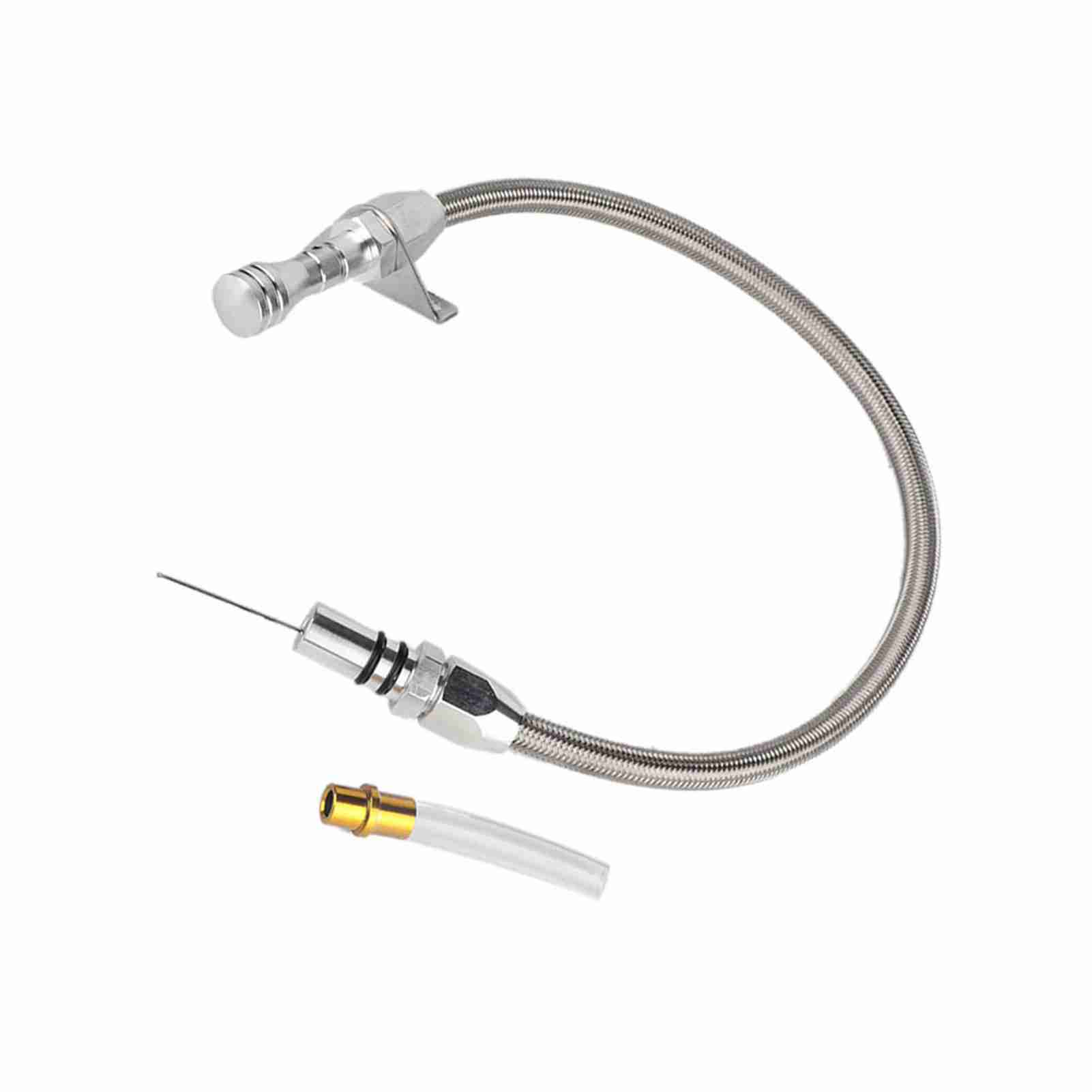 1、Excellent quality transmission dipstick with outstanding performance. 2、Stainless steel braided housing, high strength, durable for long-lasting use. 3、Beautiful and glossy appearance, looks incredibly great insdie any engine bay. 4、Flexible and convenient to use, good corrosion resistance. 5、Universally fit for Chevy TH400 400 Turbo 400 Transmissions.