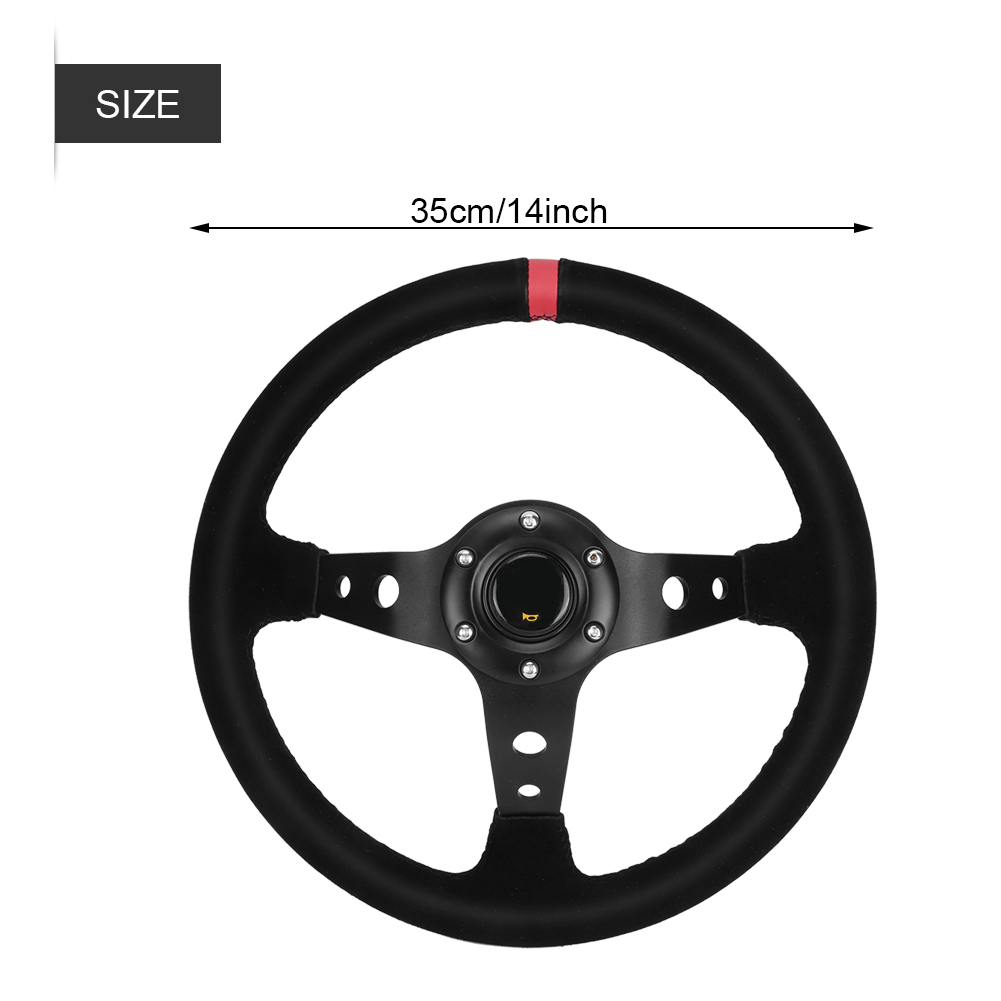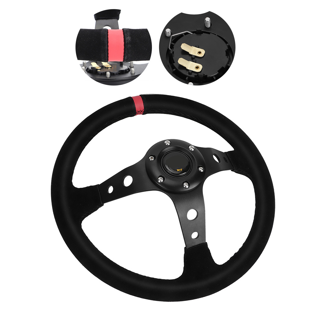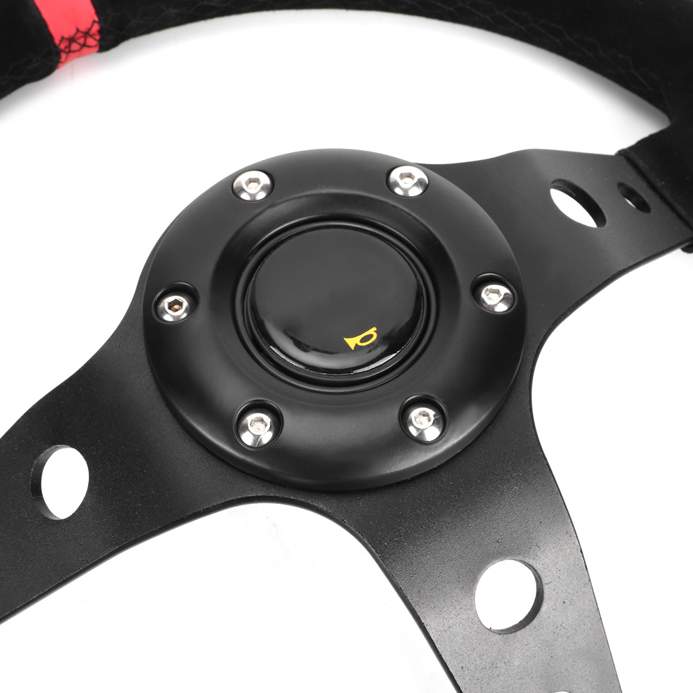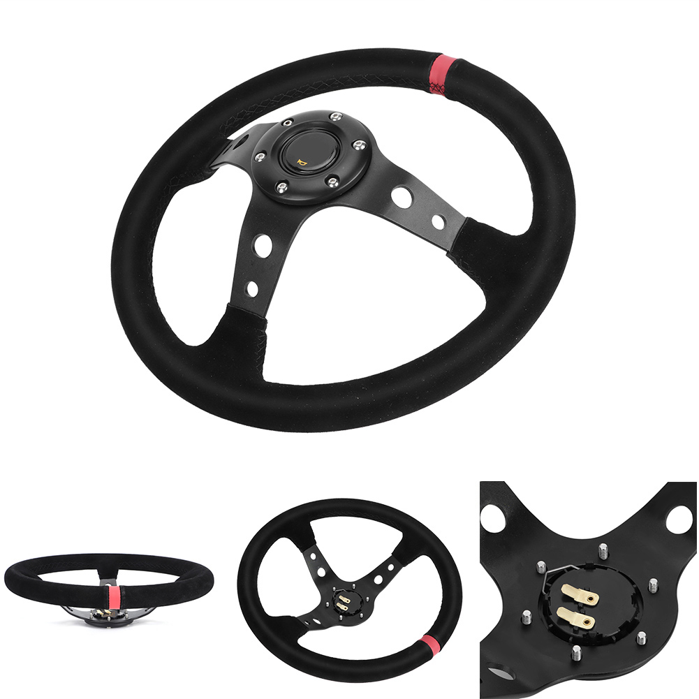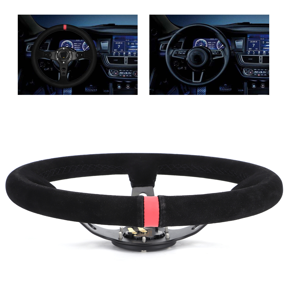 1、High quality aftermarket steering wheel with horn button 2、Compatible with most standard hub adapter, universal for most vehicle, racing car 3、Aluminum steering wheel frame and wrapped with napped leather, comfortable and durable 4、Fashionable and exquisite design, can enhances the appearance of your car's interior 5、Comes with mounting screws and wrench, easy installation without modification