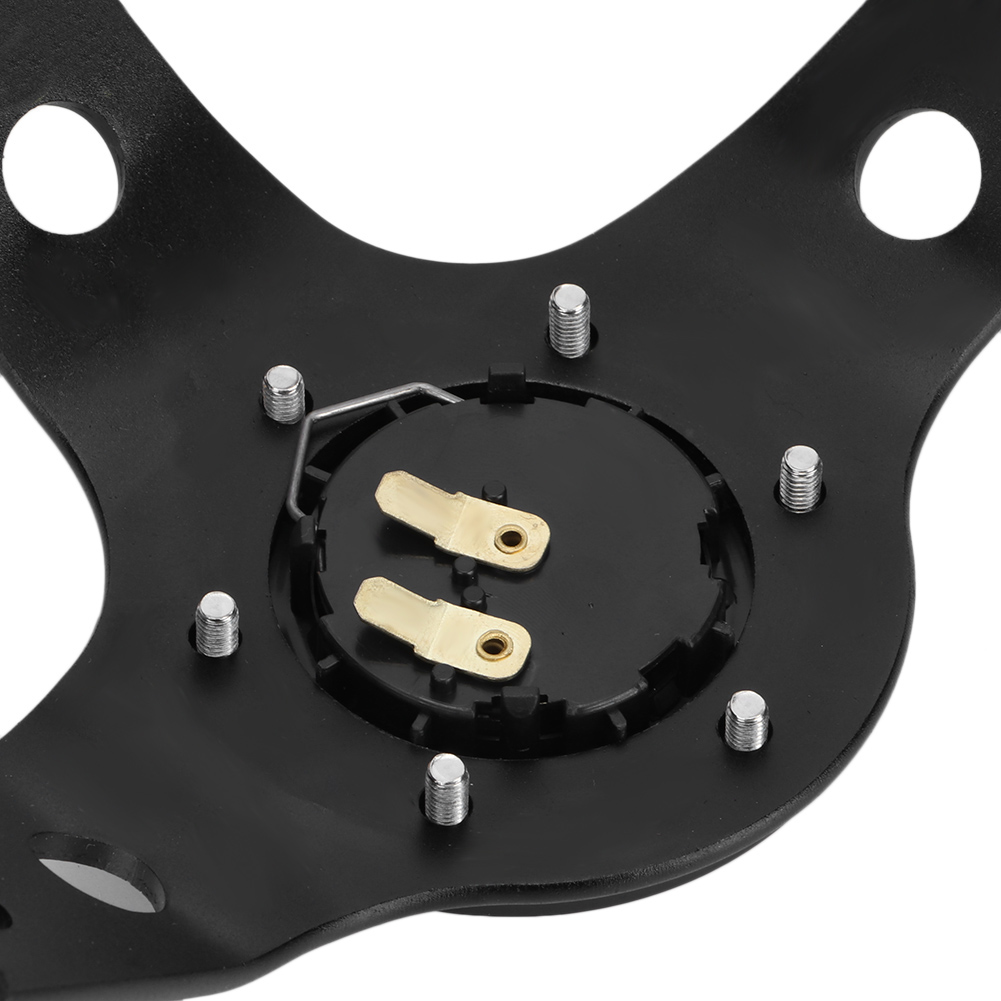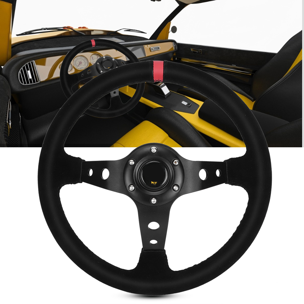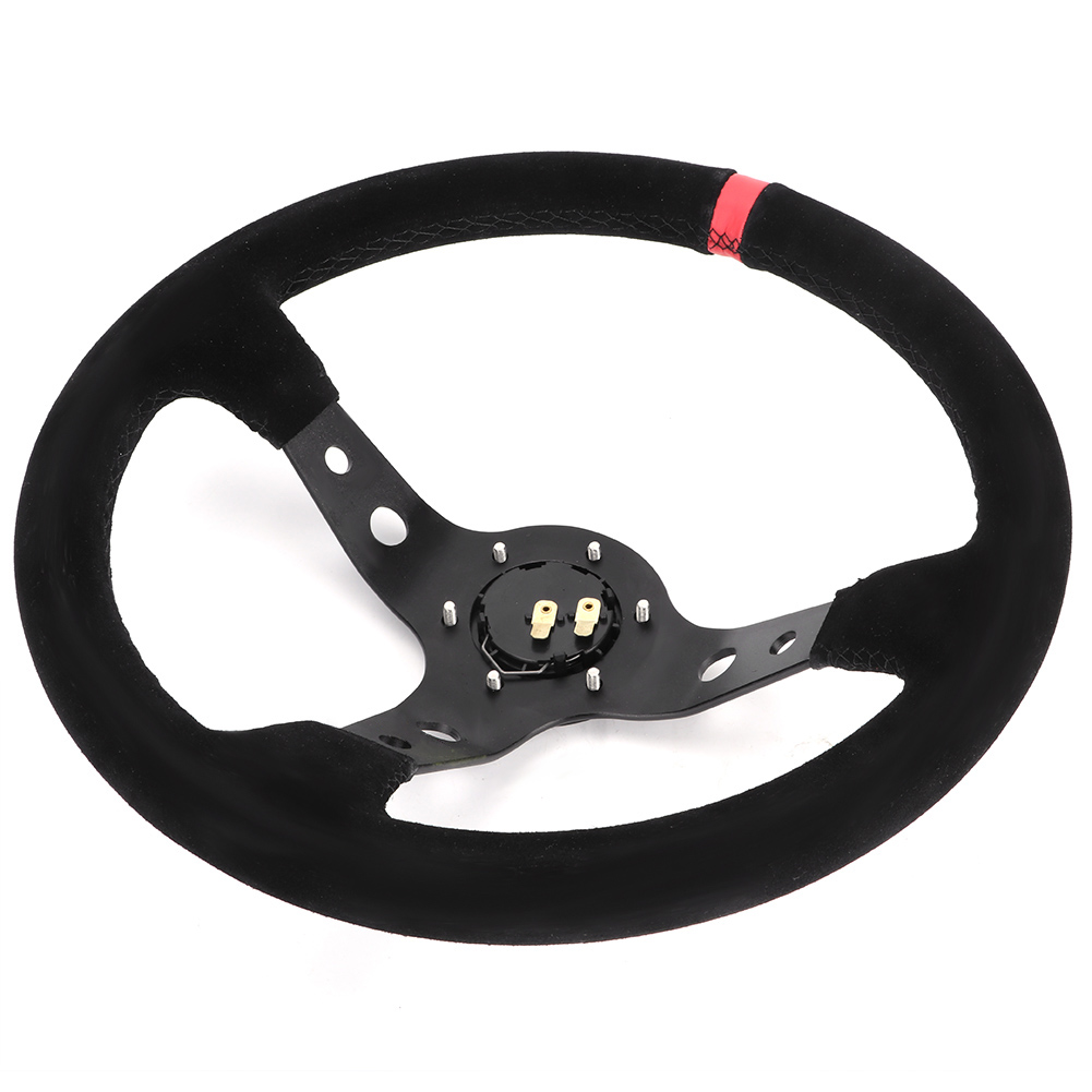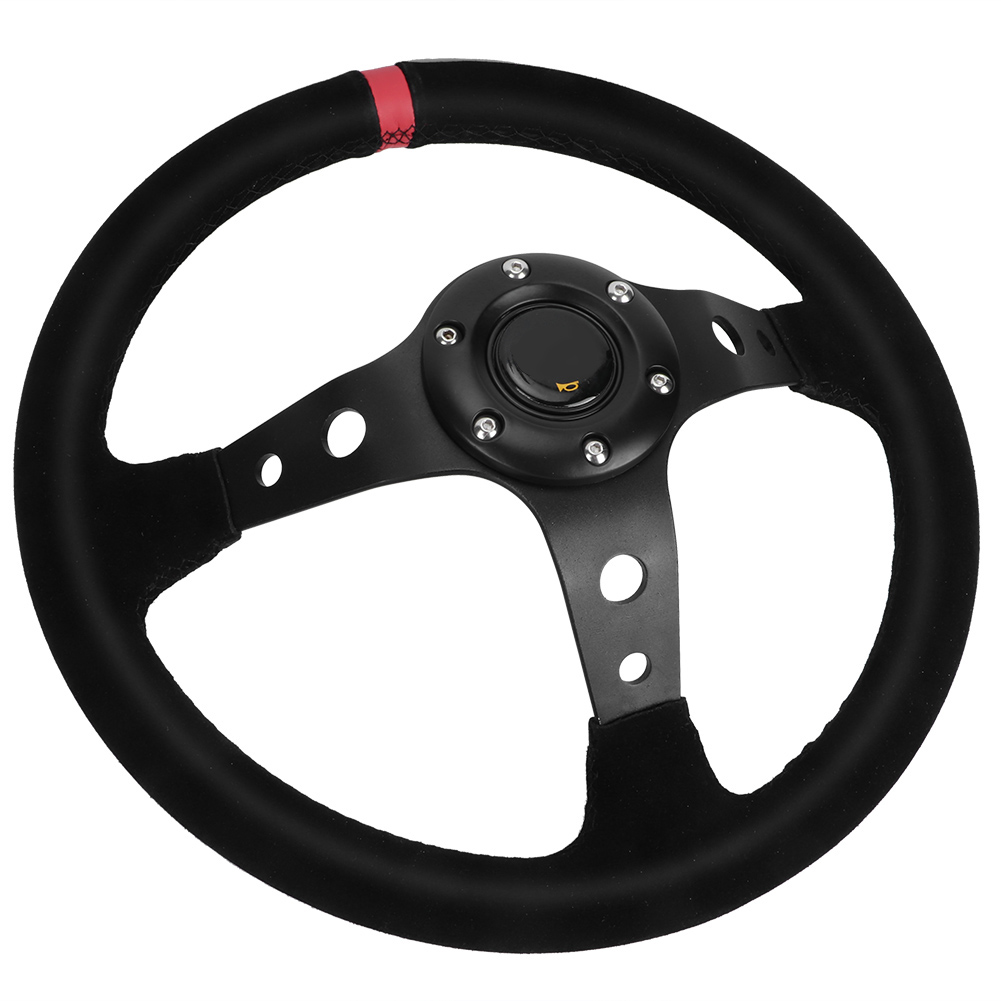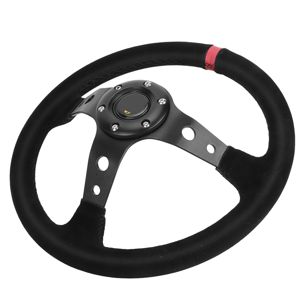 1、High quality aftermarket steering wheel with horn button 2、Compatible with most standard hub adapter, universal for most vehicle, racing car 3、Aluminum steering wheel frame and wrapped with napped leather, comfortable and durable 4、Fashionable and exquisite design, can enhances the appearance of your car's interior 5、Comes with mounting screws and wrench, easy installation without modification