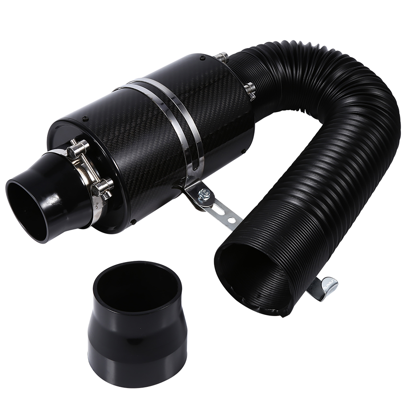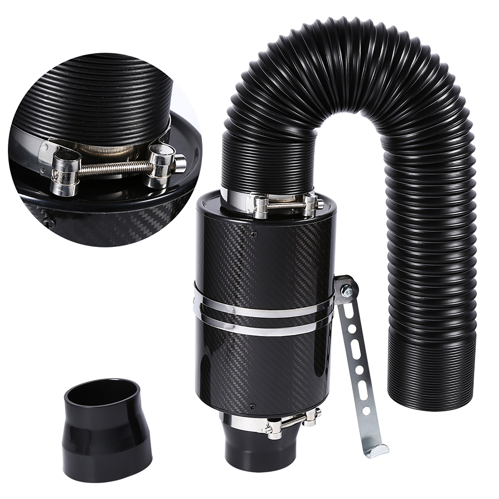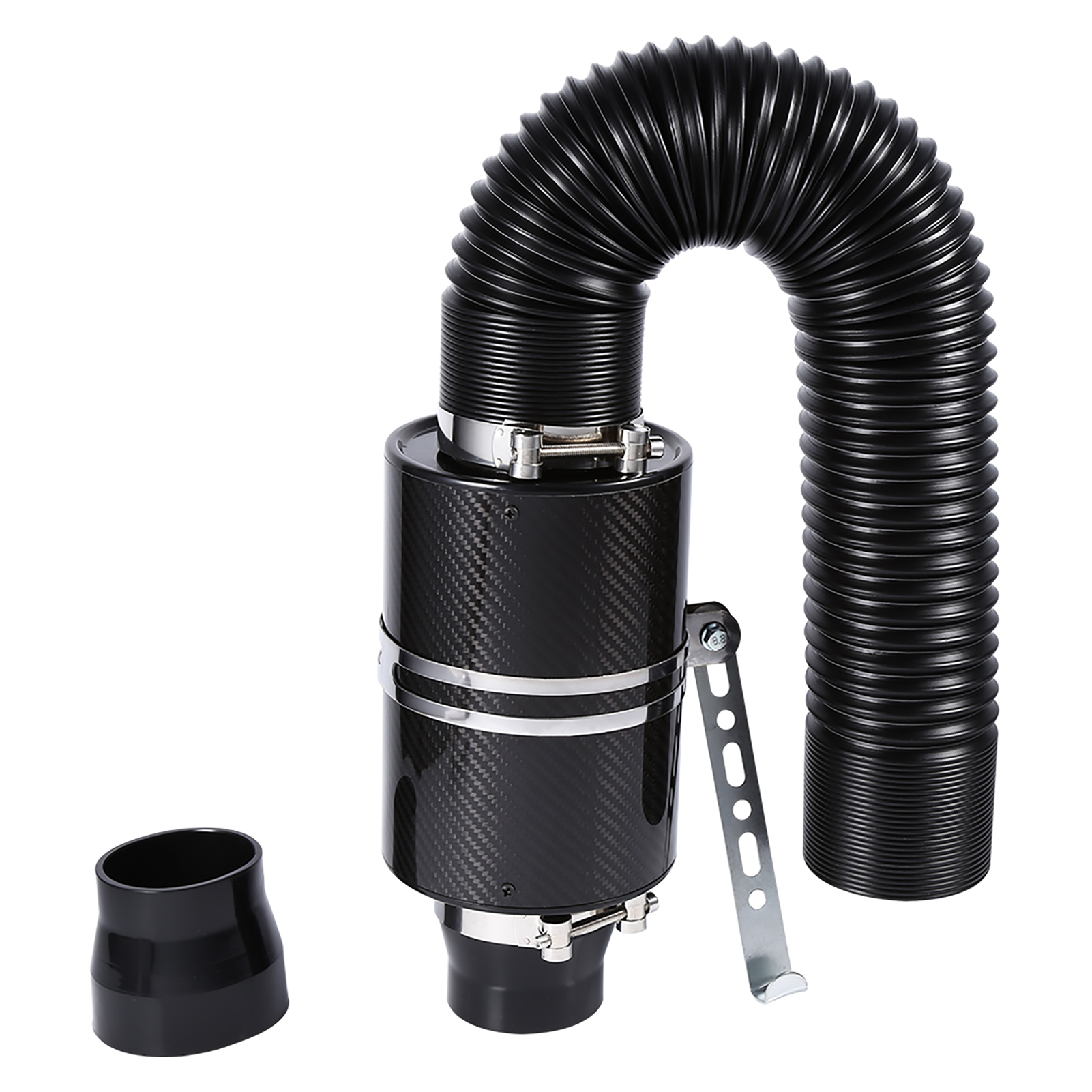 1、Effectively increase horsepower and improve the gas mileage, make the oil combustion complete and decrease the oil consumption. Reduce engine's carbon deposit and prolong it's service life 2、Adopt airbox design, it can store a plenty of fresh air and avoid blocked by insufficient air intake while oil return. Extremely improving the smoothness of driving 3、Carbon fibre shell, beautiful appearance and lightweight, good noise reduction property and heat insulation. Keep heat to minimum and maximize the air flow 4、With washable and reusable filter cartridge, economical and practical 5、Flexible cold air feed hose, carbon fibre air induction system designed to fit for air inlet hoses with diameters between 63mm and 76mm