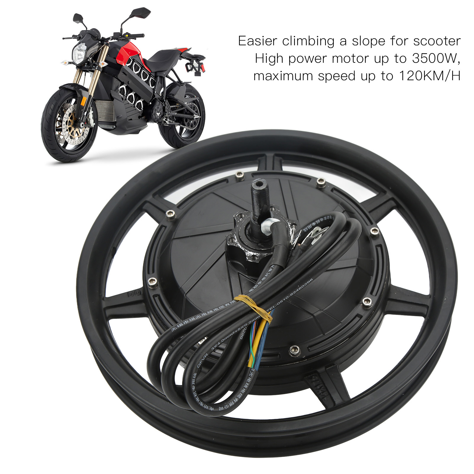 1、3500W Maximum Power: High power motor up to 3500W, with a maximum speed of 120KM/H, to meet the needs of various scenarios. 2、Powerful Motor: If you feel that the scooter is weak when climbing a slope and driving slowly, replace it with this motor, and immediately speed up to provide more power to solve the problem. 3、High Strength: Made of aluminum alloy, wheel hub motor is waterproof and rust proof, and can be used for a long time under the environment of high speed rotation. 4、Scope Of Application: 3500W wheel hub motor can be widely used for electric motorcycle, electric off road vehicle, electric bicycle, scooter, etc. 5、High Performance: With professional technology, the performance of the wheel hub motor is 30% higher than that of traditional motor.