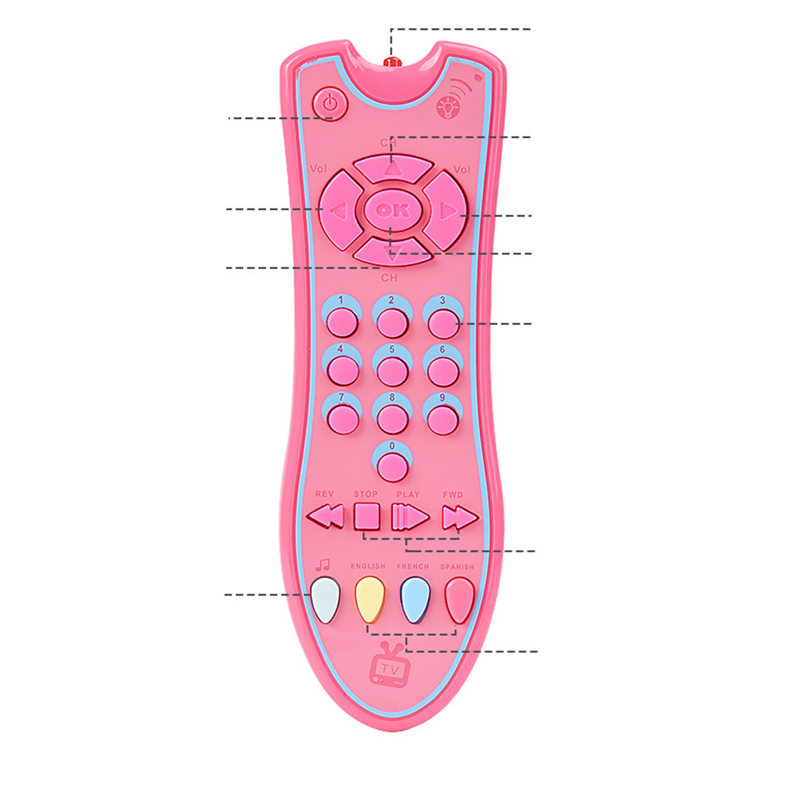 1、Multifunction: Baby remote control toy with different buttons, have different numbers, music, applause, etc., bring endless fun for kids. 2、Soft Lighting: TV remote control toy with soft and bright light to attract the baby attention, which will not damage their eyes. 3、Hands Exercise: Remote control has 24 buttons to exercise baby hand muscles, promote hand eye coordination, make their hands more flexible. 4、Educational: Baby simulation eemote control with a variety of language settings, which help to start the baby early education enlightenment. 5、Excellent Plastic: Simulation remote control toy made of plastic material, smoothing without burrs, which is durable and safe to play.