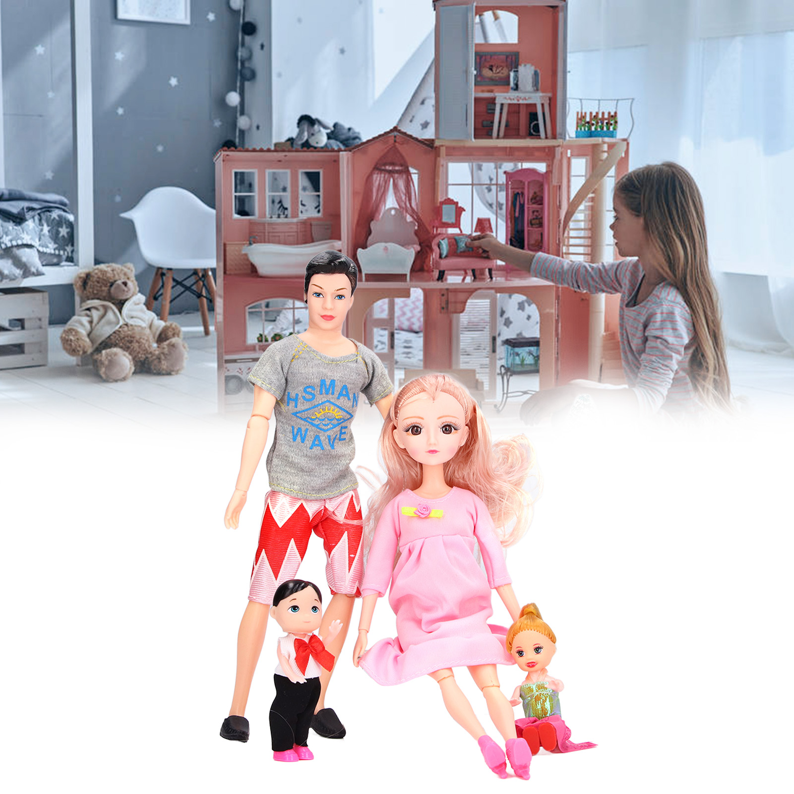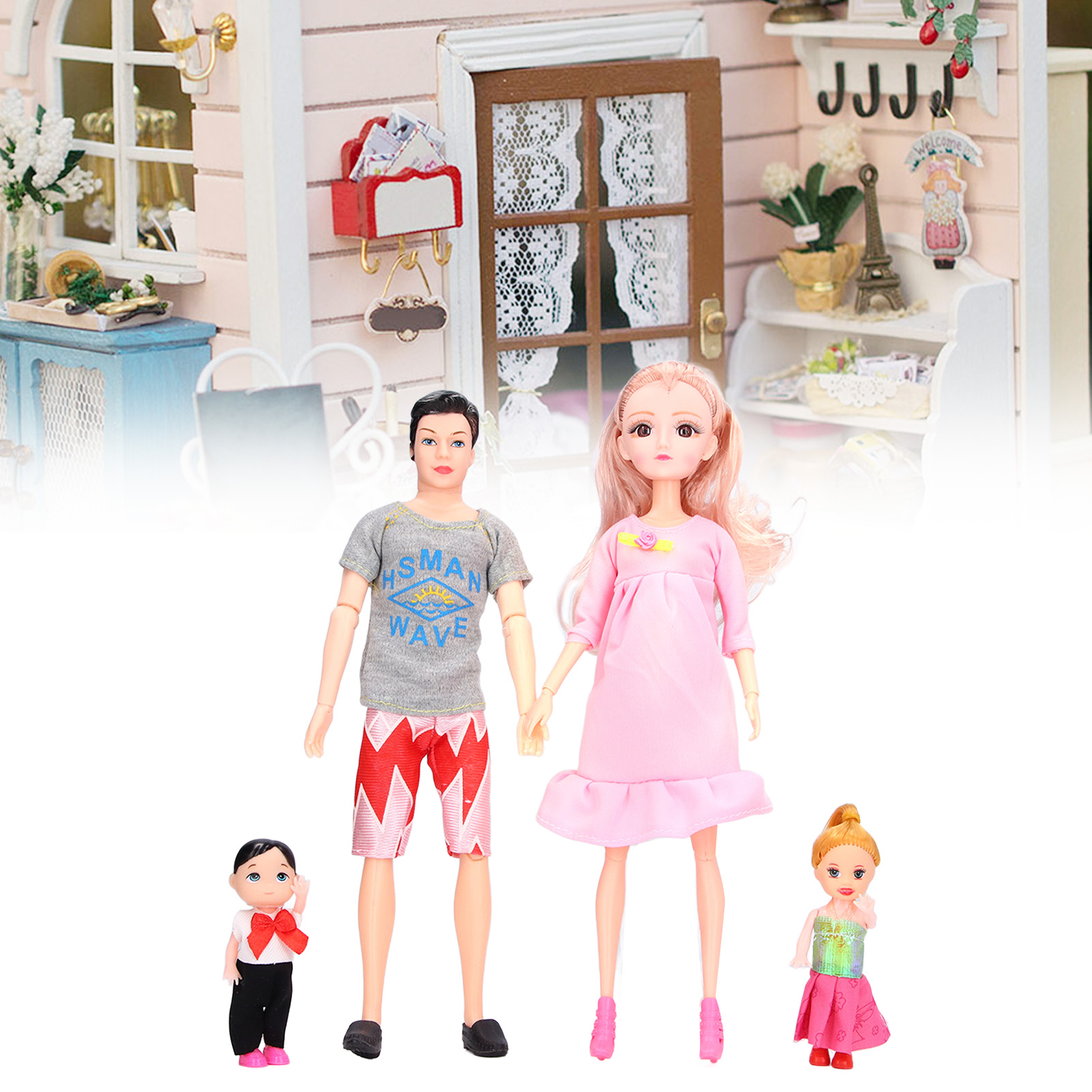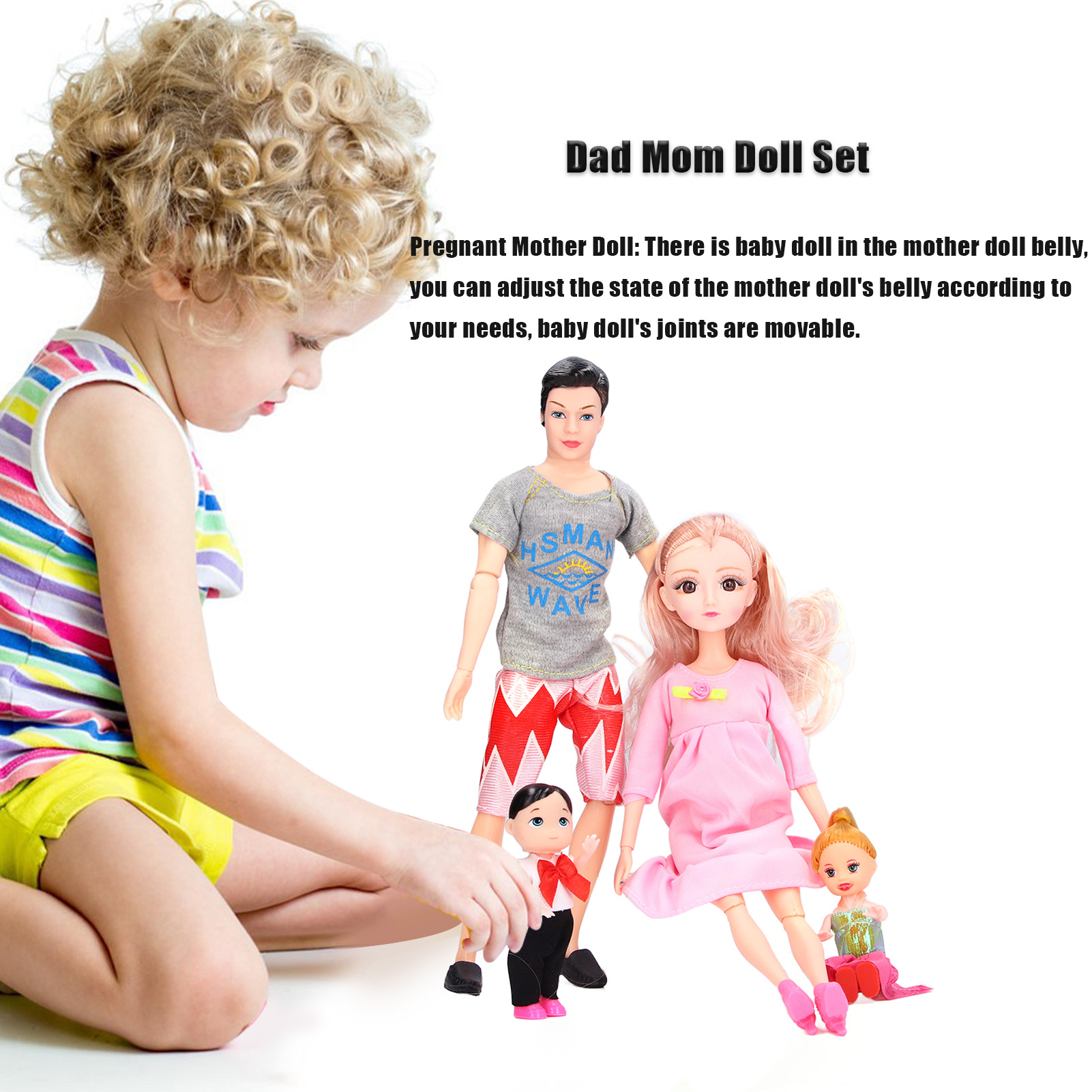 Family Doll Set Children Cute Dad Pregnant Mom Son Daughter Baby Doll with Accessories Holiday Gift
