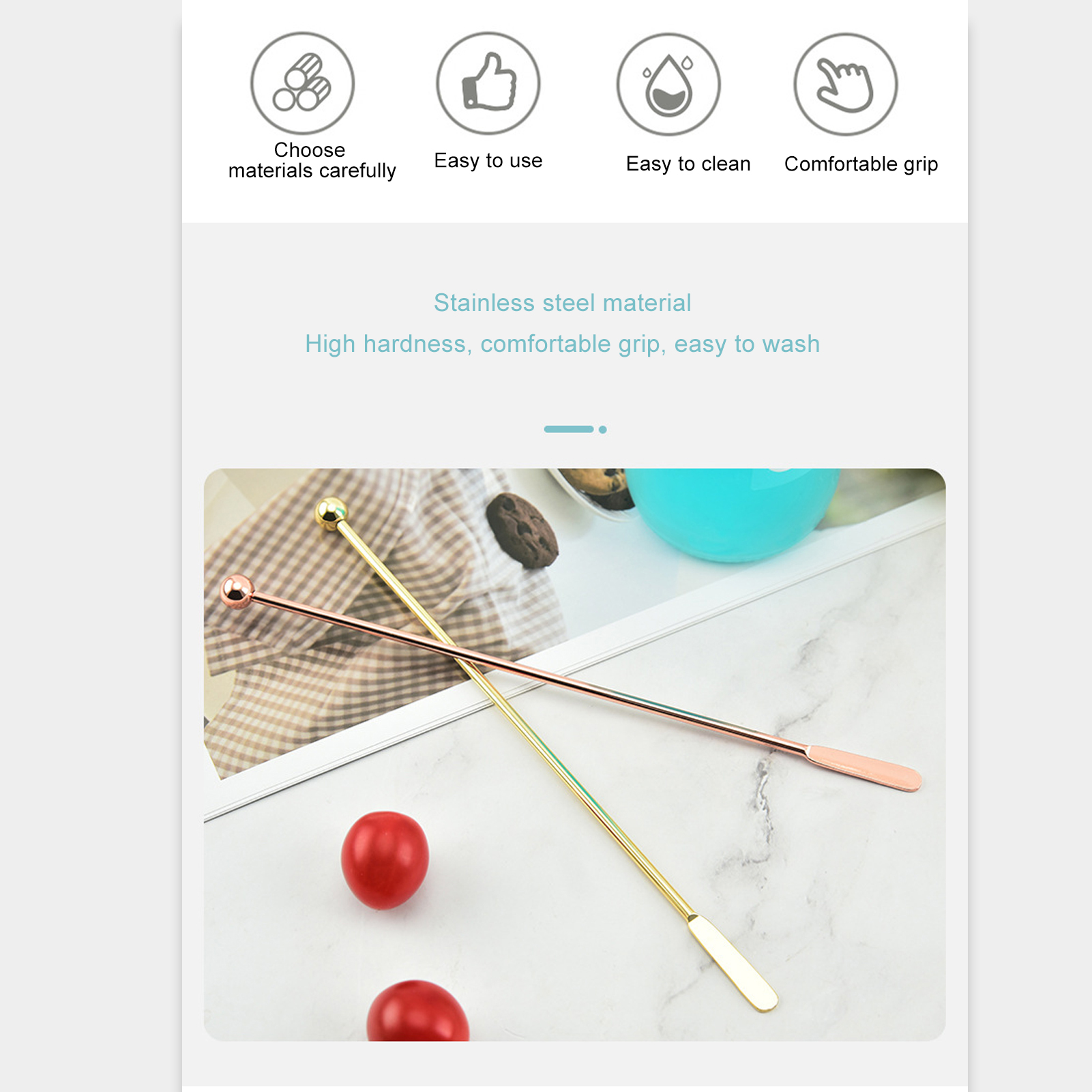 1、It is widely used in coffee shops, restaurants, coffee shops, hotels and home kitchens. 2、Long handle design, very suitable for mixing cocktails, wine, milk tea, coffee. 3、Selected high‑quality 304 stainless steel material, safe and hygienic, very durable. 4、Cocktail stirrer, comfortable to hold, smooth and round, and can be in contact with food. 5、Reusable, easy to clean, corrosion‑resistant, anti‑oxidation, and long service life.
