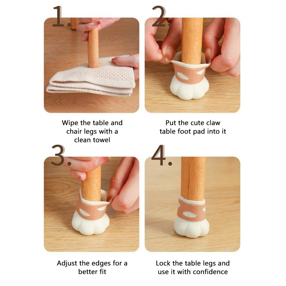 1、1. Cute Design: This set of table and chair leg protectors are designed with cat s claw in appearance, and are made of silicone material to ensure that they will not fall off during long-term use. The chair floor protector is definitely your best choice for protecting wooden floors and reducing noise. 2、2. Thickened Silicone Material: Made of durable silicone material, with high quality and high elasticity, waterproof, stretchable and thick enough material to make the chair leg floor protector suitable for most furniture legs for a long time 3、3. Easy to Install and Clean: No tools, no glue needed, just slide the chair s floor protector onto the chair s feet. If it gets dirty, it can be easily removed and cleaned.