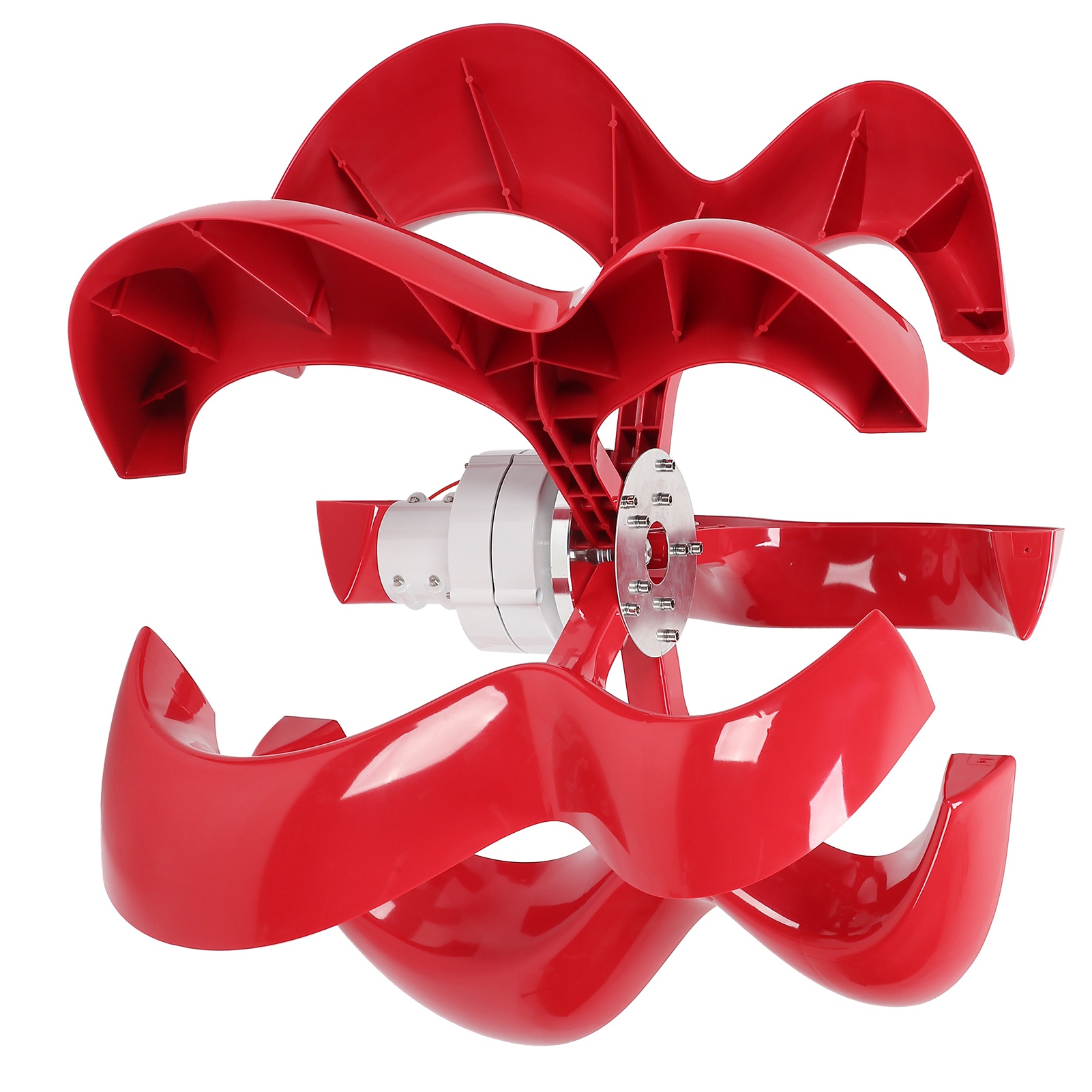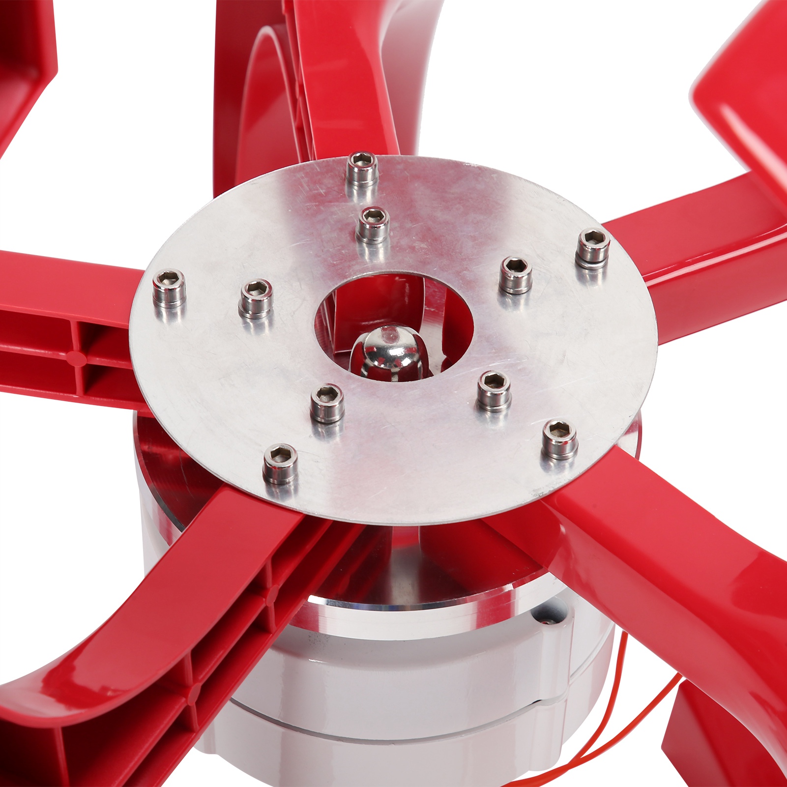 1、EFFICIENT OPERATION: Low starting wind speed, small size, beautiful appearance and low running vibration. Humanized flange installation design is used to facilitate installation and maintenance. 2、NYLON BLADE: The wind rotor blade is made of nylon fiber, with optimized aerodynamic shape design and mechanism design, the wind energy utilization coefficient is high, and annual power generation is increased. 3、PWM MICROPROCESSOR: It adopts the maximum power tracking intelligent microprocessor control to effectively adjust the current and voltage, and the controller supports 24V 48V automatic identification. 4、PERMANENT MAGNET ROTOR: The permanent magnet rotor alternator is used with a special rotor design to effectively reduce the resistance torsion, so that the wind rotor and the generator have better matching characteristics and the reliability of the unit operation. 5、SCOPE OF APPLICATION: The wind turbines kit adopts 5 blade design, protection level of controller is IP67, supports automatic adjustment of wind direction angle, and is widely used in ships, terraces, monitoring, street lamp charging, etc.
