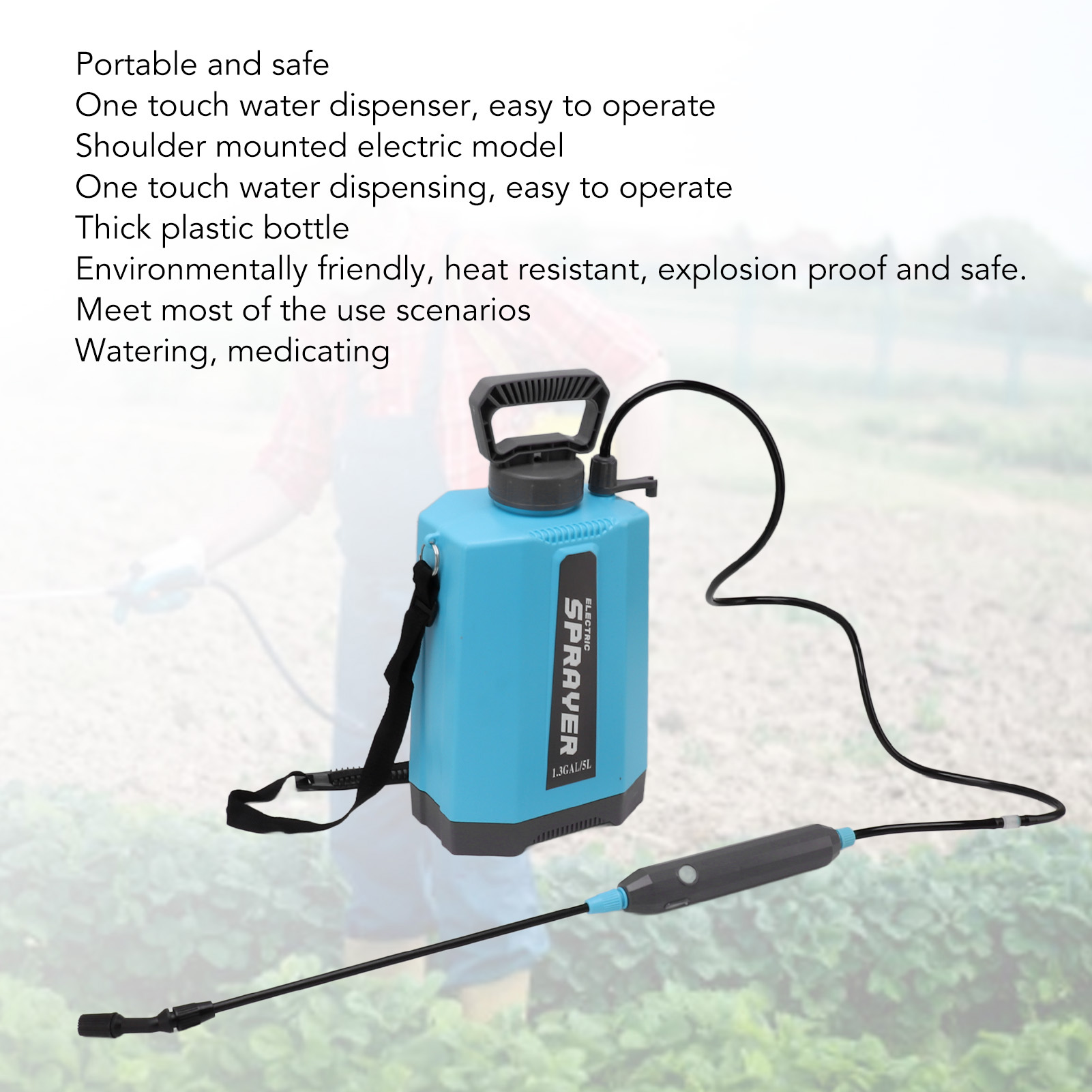 1、ADJUSTABLE: The electric gardening sprayer can easily adjust the water spraying status and water output. Users can choose the right spraying method and water output according to the actual needs, which reduces the workload and improves the work efficiency. 2、MULTIFUNCTIONAL DESIGN: This sprayer can be used in a variety of scenarios such as watering flowers, medicating, etc., which can meet different gardening needs. Whether it's a home garden or farmland farm, it can easily cope with a variety of tasks. 3、COMPACT AND PORTABLE: The electric gardening sprayer is compact and easy to carry. Whether it is outdoor gardening work or indoor plant maintenance, it can be carried out anywhere and anytime, convenient and flexible. 4、COMFORTABLE SHOULDER MOUNTED DESIGN: The electric gardening sprayer has a shoulder mounted design, which reduces the burden on your arms and makes spraying water easier. 5、EFFICIENT WATER SAVING: This sprayer sprays evenly and sprays a wide range of areas, which can save water and realize water saving as well as being friendly to the environment.