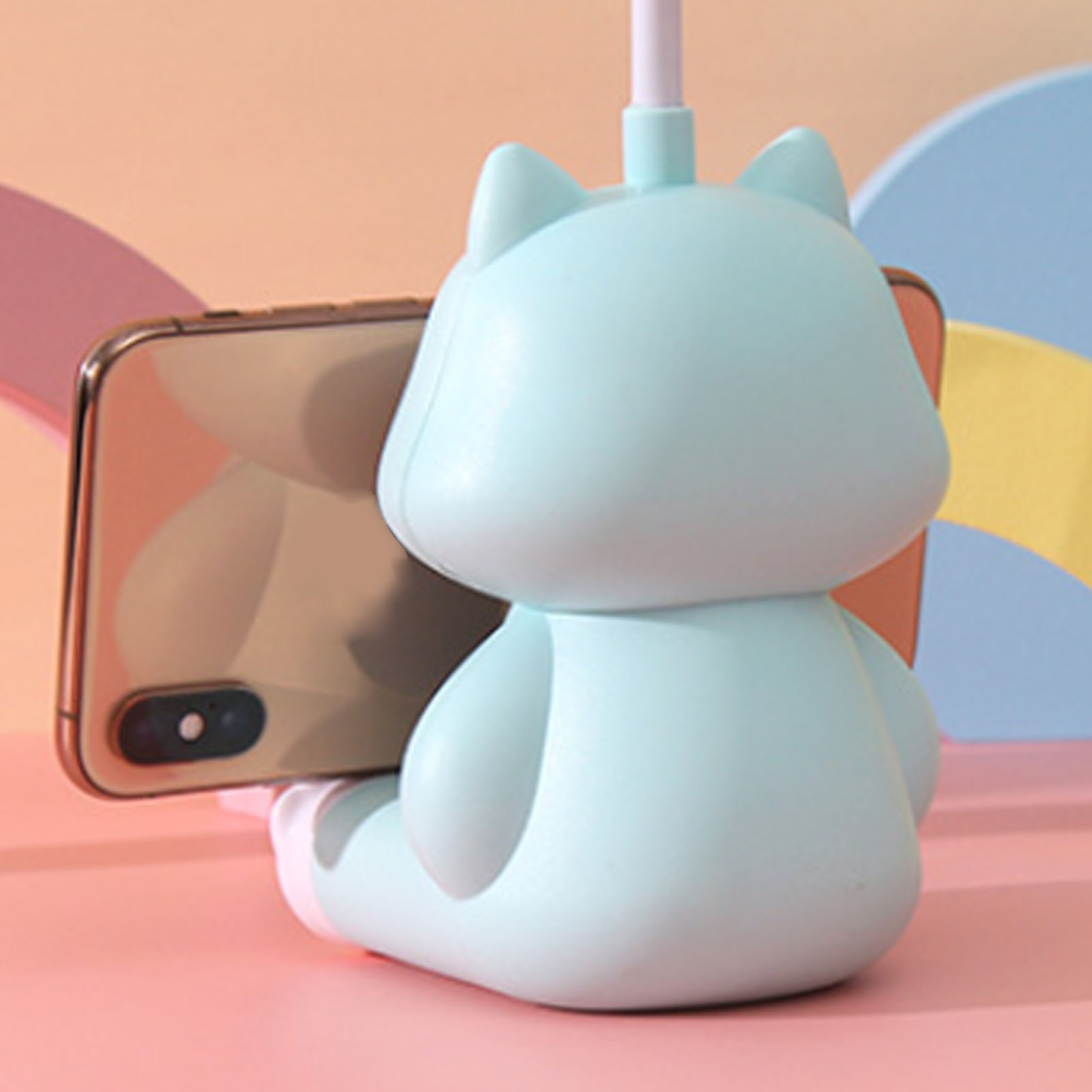 1、Cute Lamp Design: This cute desk lamp not only is this kawaii desk lamp a great eye protecting study light for kids, but also a cute kawaii desk accessory for a girls room, dorm or office. 2、Cartoon Desk Lamp: Bright desk lamp shines a flicker free, non glare. Cartoon desk light which is gentle and friendly to kids eyes. So it is very suitable for kids desk lamp, study lamp, reading lamp. 3、Rechargeable Desk Lamp: The desk lamp with USB charging port (Including USB cable), portable desk lamp can take to everywhere after fully charged. 4、Adjustable Gooseneck Desk Lamp: Kids can direct the angle and direction of the light with the flexible gooseneck. And after folding, it is a portable small desk lamp, which is convenient to carry and store. 5、Phone Stand and Small Items Storage: Cartoon reading lamp can also be used as a phone stand, and the pit on the belly can store small objects. This night light is a lovely room decoration for girls, boys, make a beautiful ideal gift.