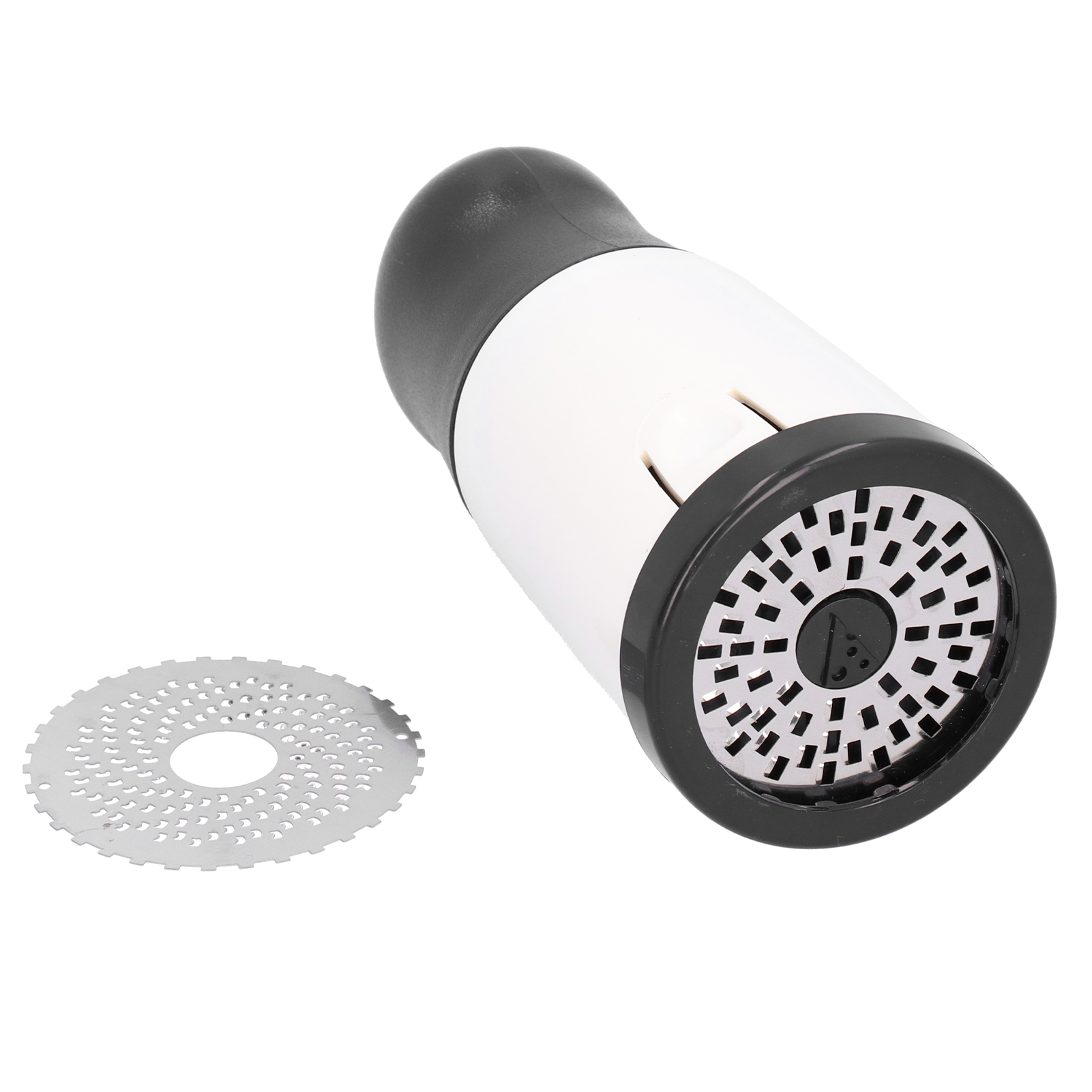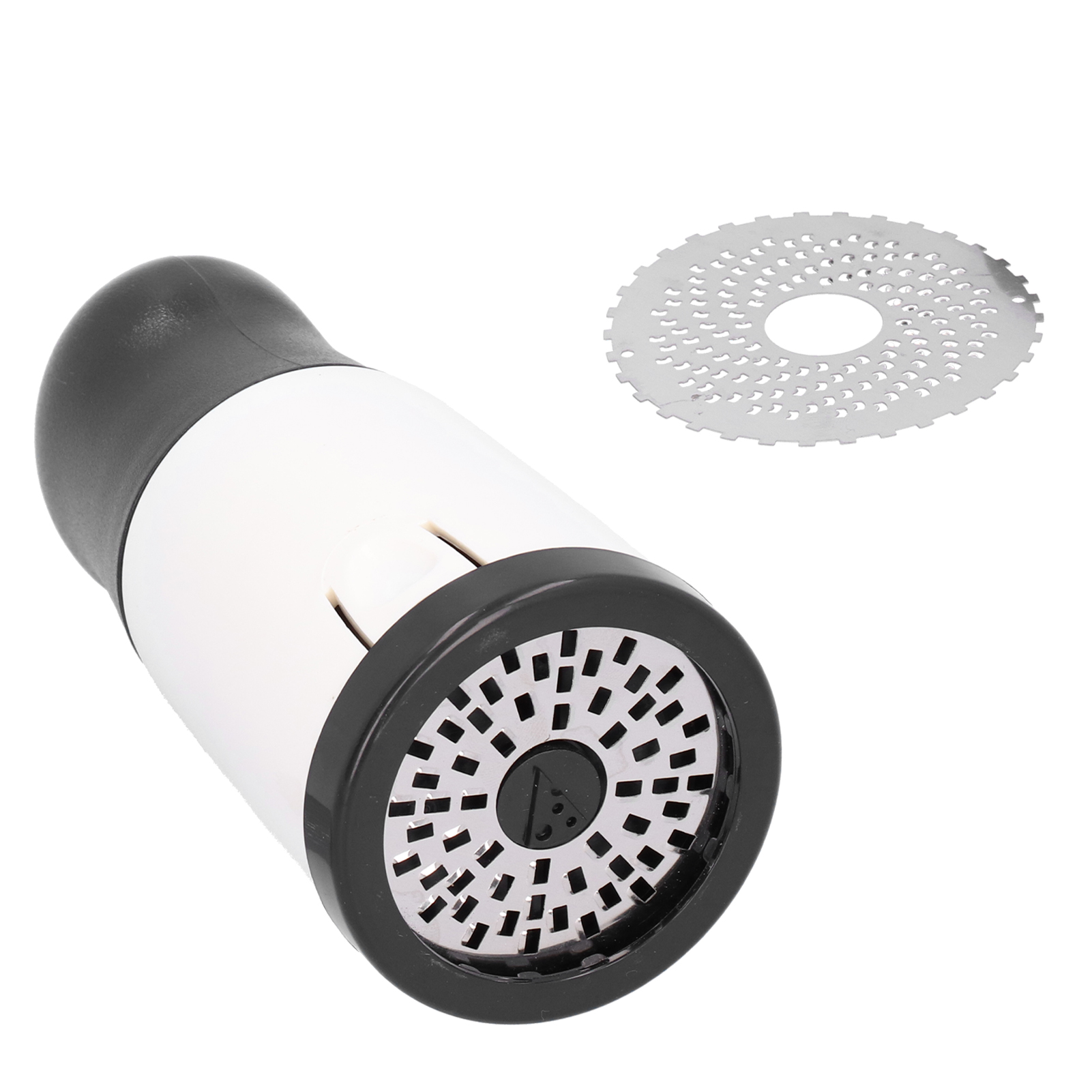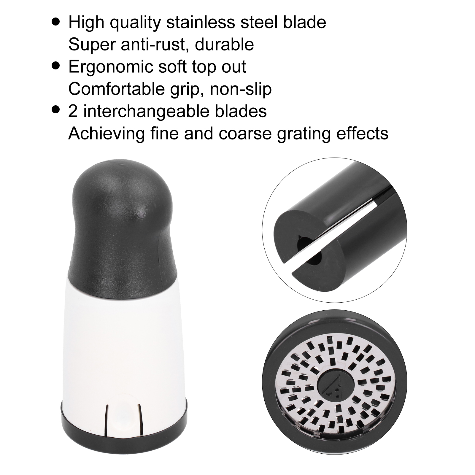 1、Cheese grater is made of high‑quality stainless steel blades, super rust‑proof and durable. 2、Equipped with two blades, which can be replaced at will, which is convenient and practical. 3、The method is simple to use, activate the cutting blade by twisting your wrist. 4、Ergonomic soft touch top fits your hand, with a comfortable grip and non‑slip. 5、2 interchangeable blades can achieve fine and rough grating effect, you can cut according to your preference.