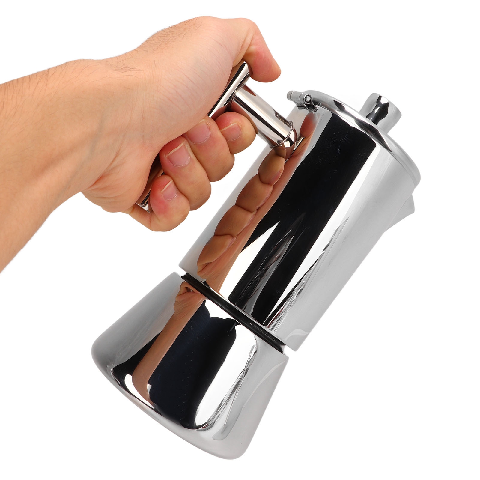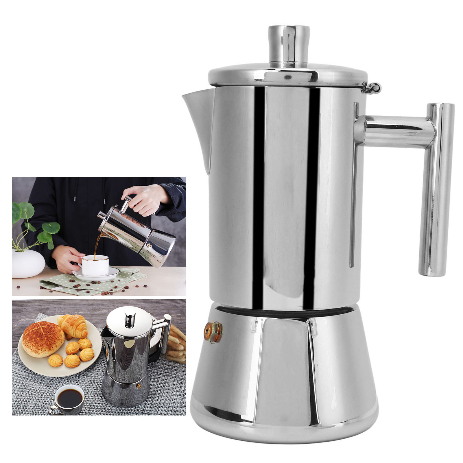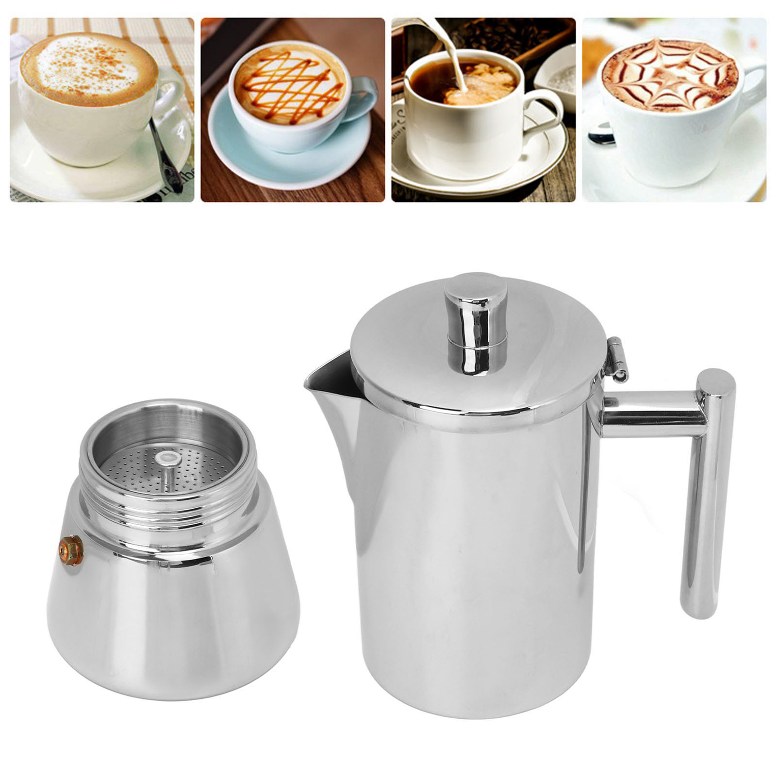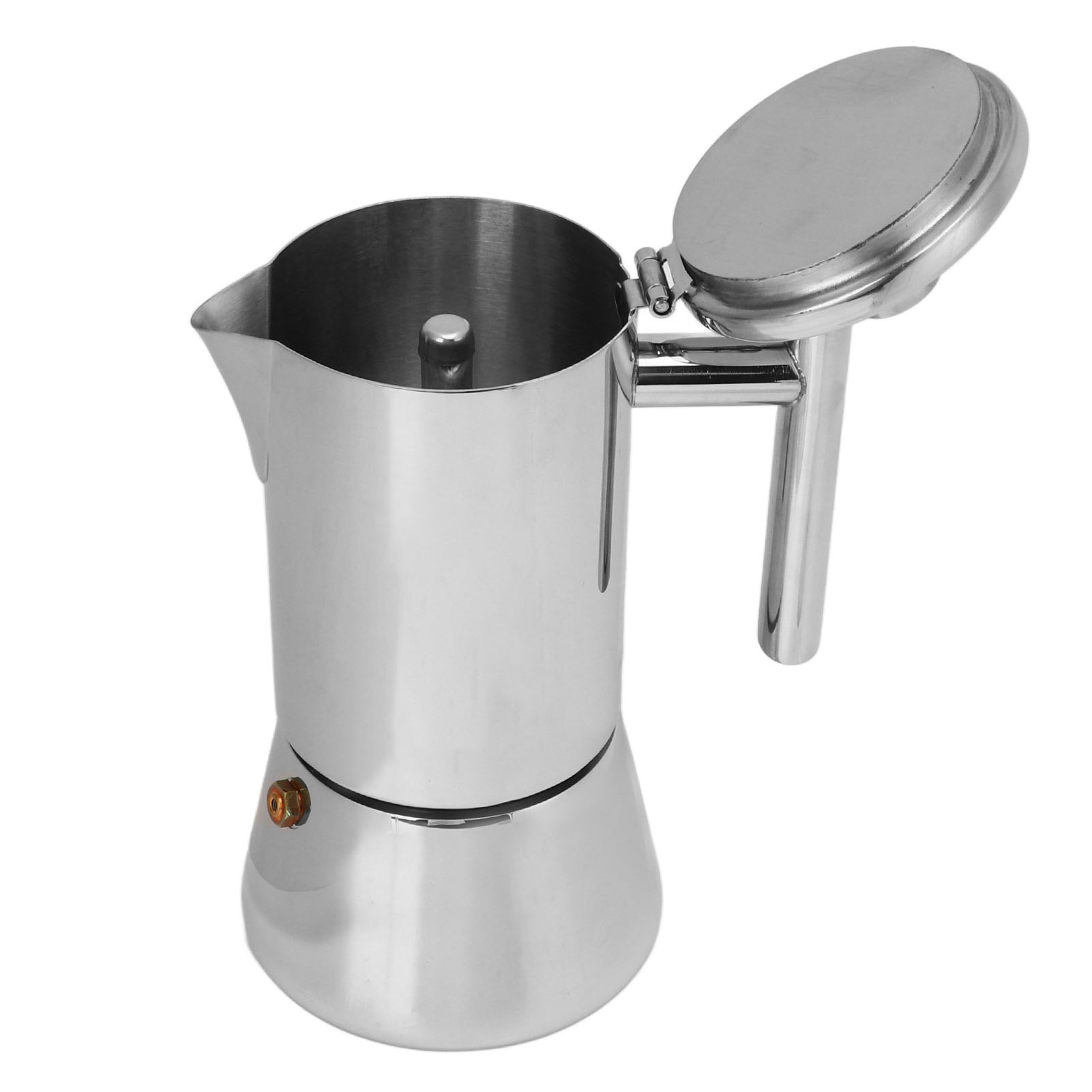 1、Premium Material: Made of premium 304 stainless steel, the coffee making pot adopts high mirror polishing treatment, rustproof and corrosion resistant. 2、Wide Application: The stainless steel coffee making pot is suitable for gas stove, induction stove, electric stove and so on, dishwasher safe. 3、Heatproof: The coffee maker kettle adopts exquisite craftsmanship, has heat resistant handle and insulation lid, can be used for a long time. 4、Safety Valve: The stainless steel coffee maker adopts safety valve design, with dual safety, takes less than five minutes to heat and brew. 5、Leakage Proof: The spout of polished coffee pot adopts the aquiline design, the water flow is clear, leakage prevention, overflow proof, not easy to splashing.