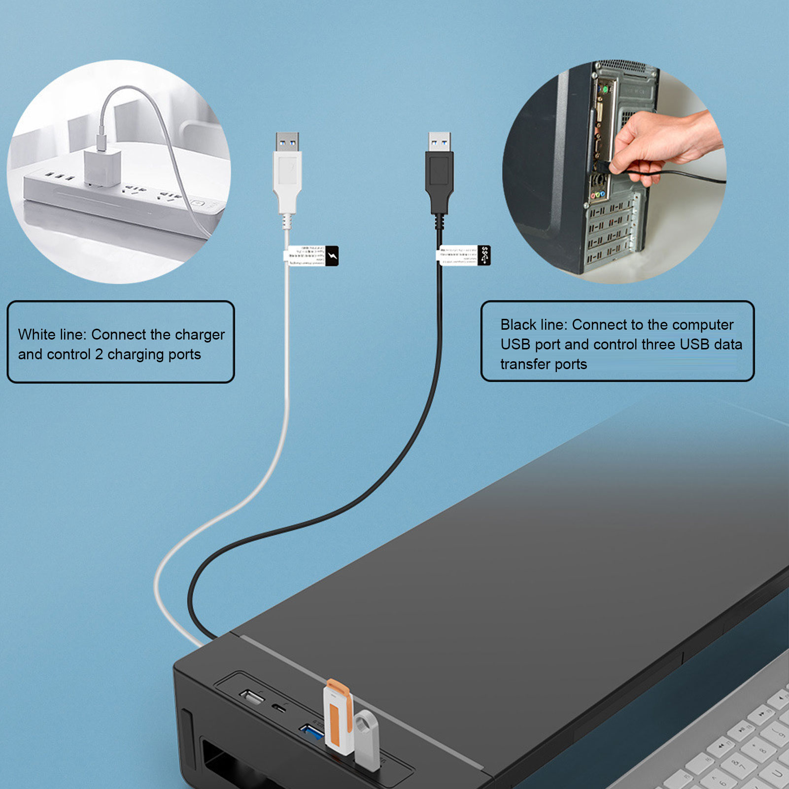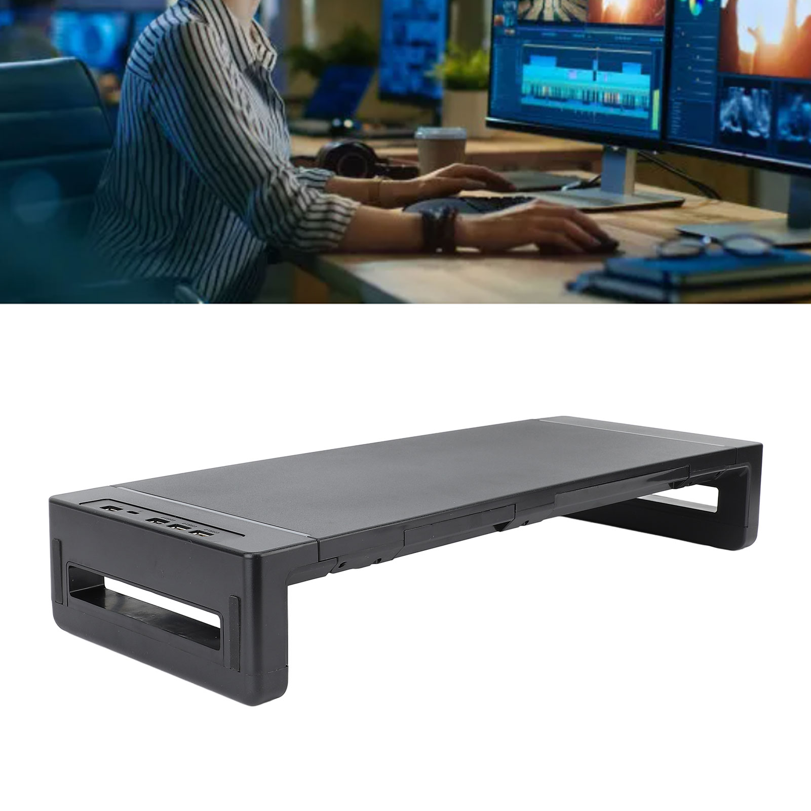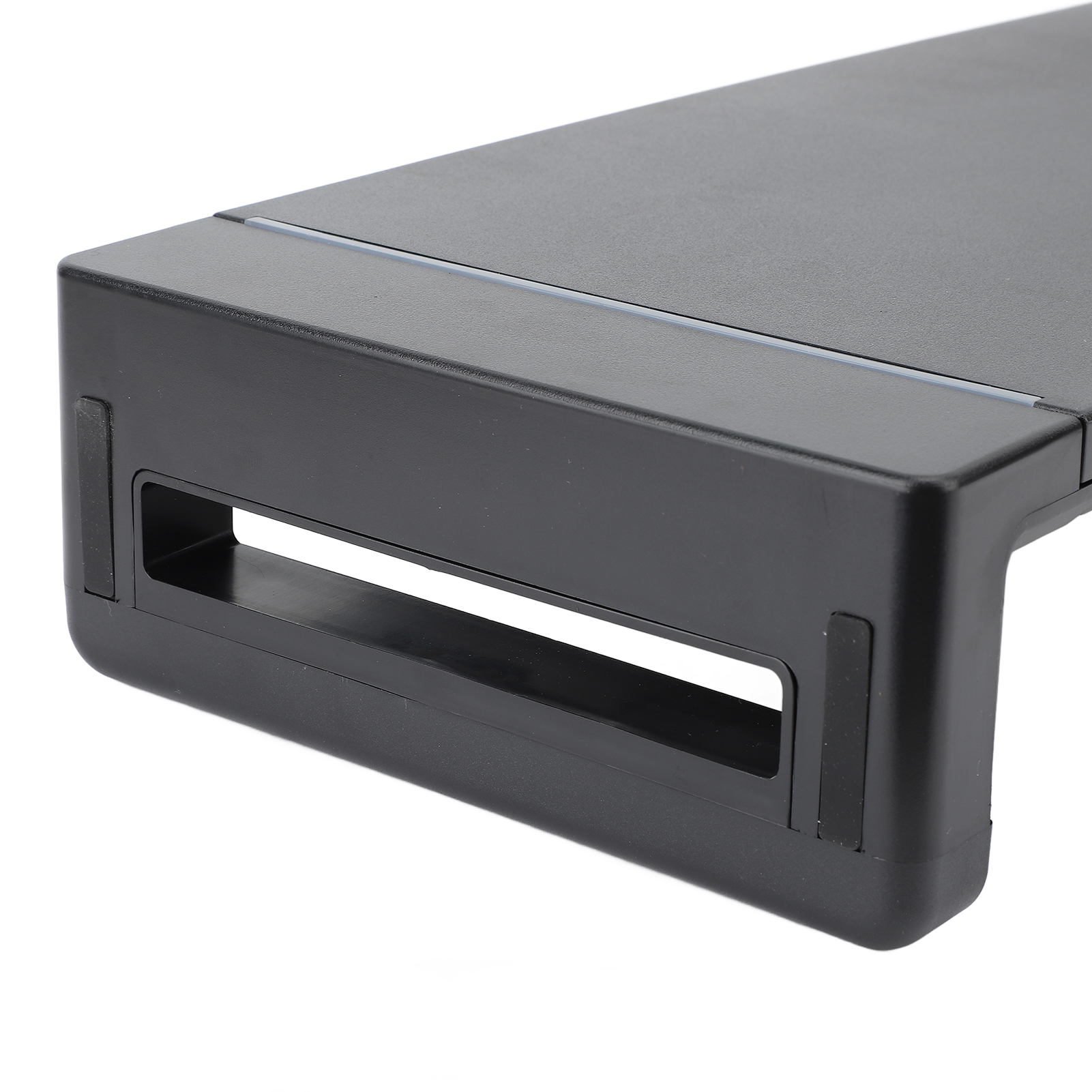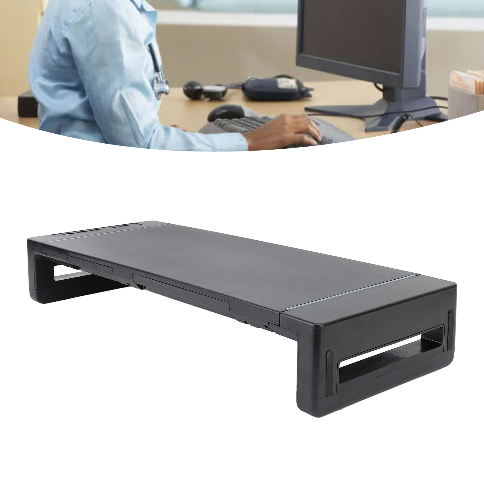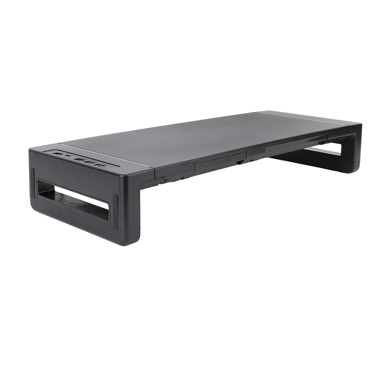 1、EFFICIENT ORGANIZATION: Our monitor stand provides you with more work space, making your desk tidier and more organized. It conveniently stores important files, notebooks, and more in an orderly manner. 2、VISUAL COMFORT: The monitor stand raises your screen to the most comfortable viewing height, preventing neck and eye fatigue caused by prolonged computer use. With a height adjustment of up to 90mm, it offers an ergonomic visual experience, relieving tension in the neck and back. 3、POWERFUL FAST CHARGING: With independent USB 3.0 power supply fast charging, our monitor stand can quickly charge your devices, meeting the demands of your fast paced work. It includes both TYPE C and USB ports, catering to all your charging needs. 4、CONVENIENT USAGE: Equipped with a drawer phone holder, it securely holds your phone in front of you, allowing easy access to phone information without the need to hold it manually. This enhances work efficiency. It can effortlessly withstand a weight of 25KG without deformation, remaining stable and sturdy even after prolonged use. 5、MULTI FUNCTIONAL HUB: Our monitor stand comes with an eight in one hub, enabling you to connect multiple devices simultaneously and meet various usage requirements. Whether it's connecting a mouse, keyboard, USB drive, or headphones, it provides seamless connectivity.
