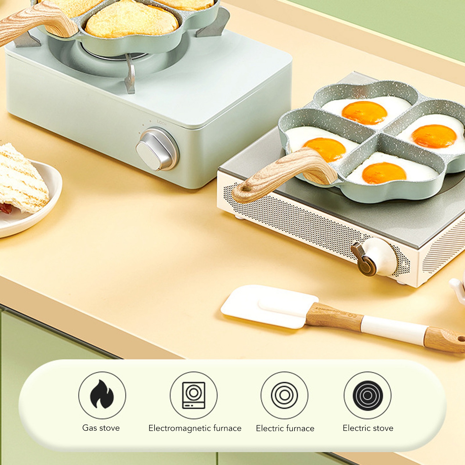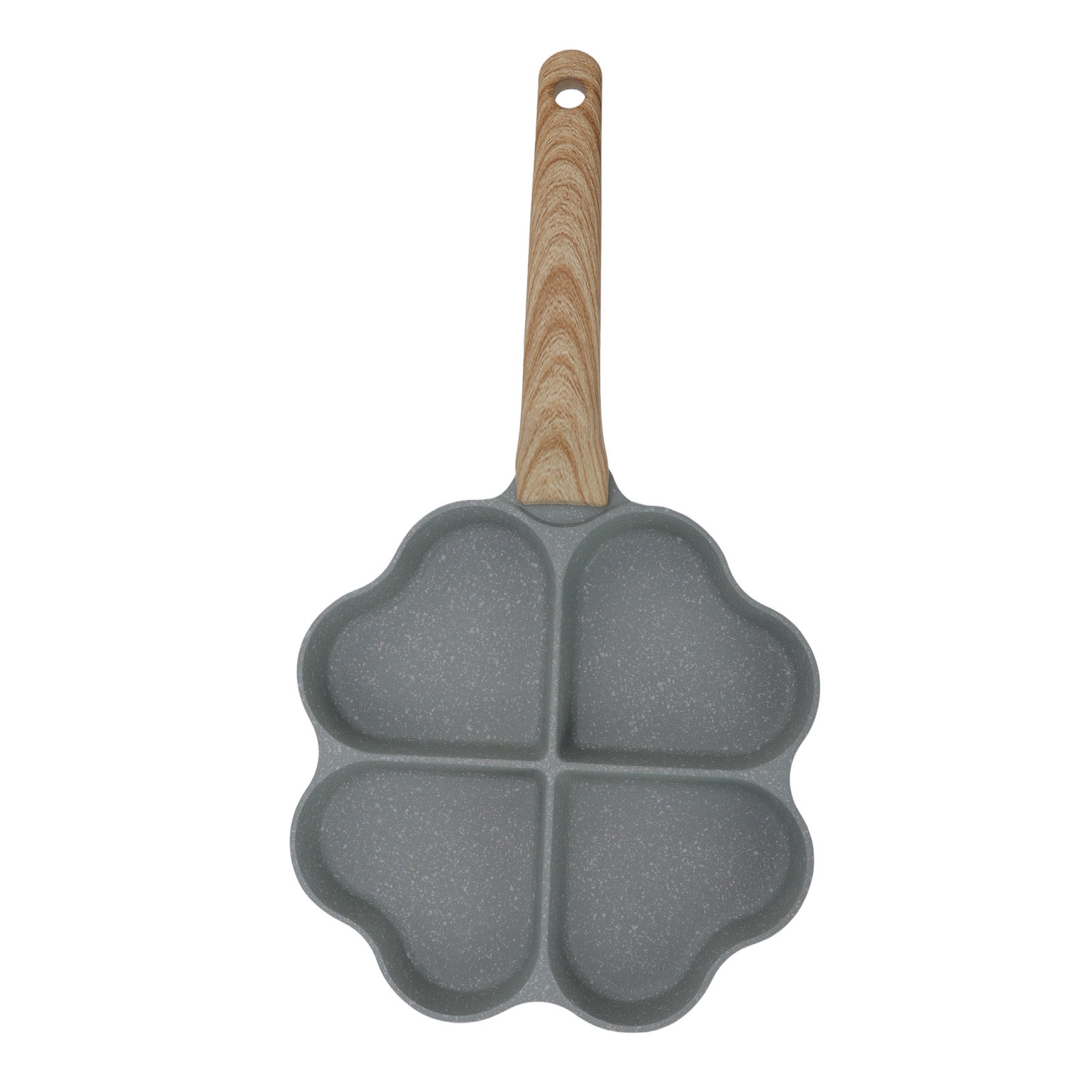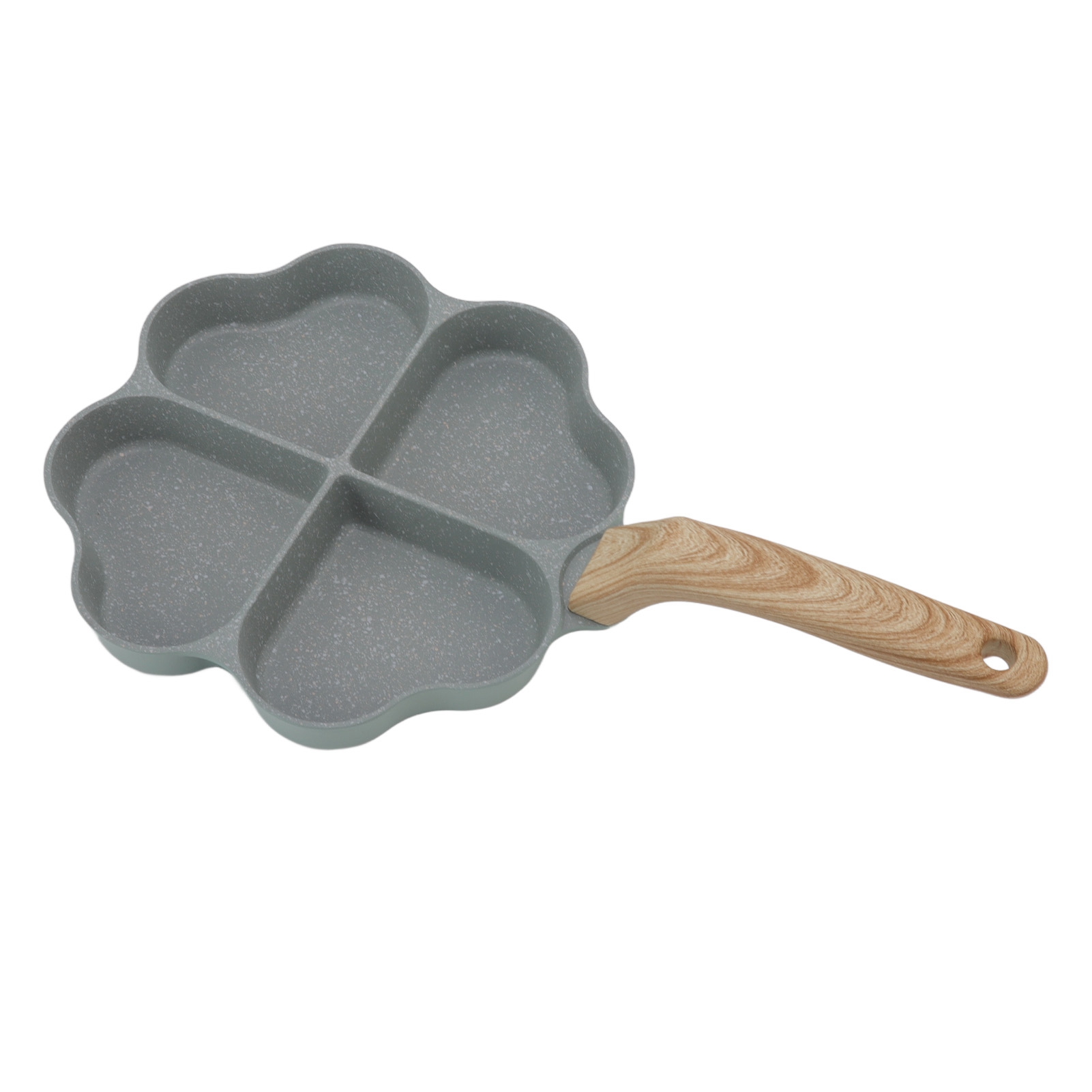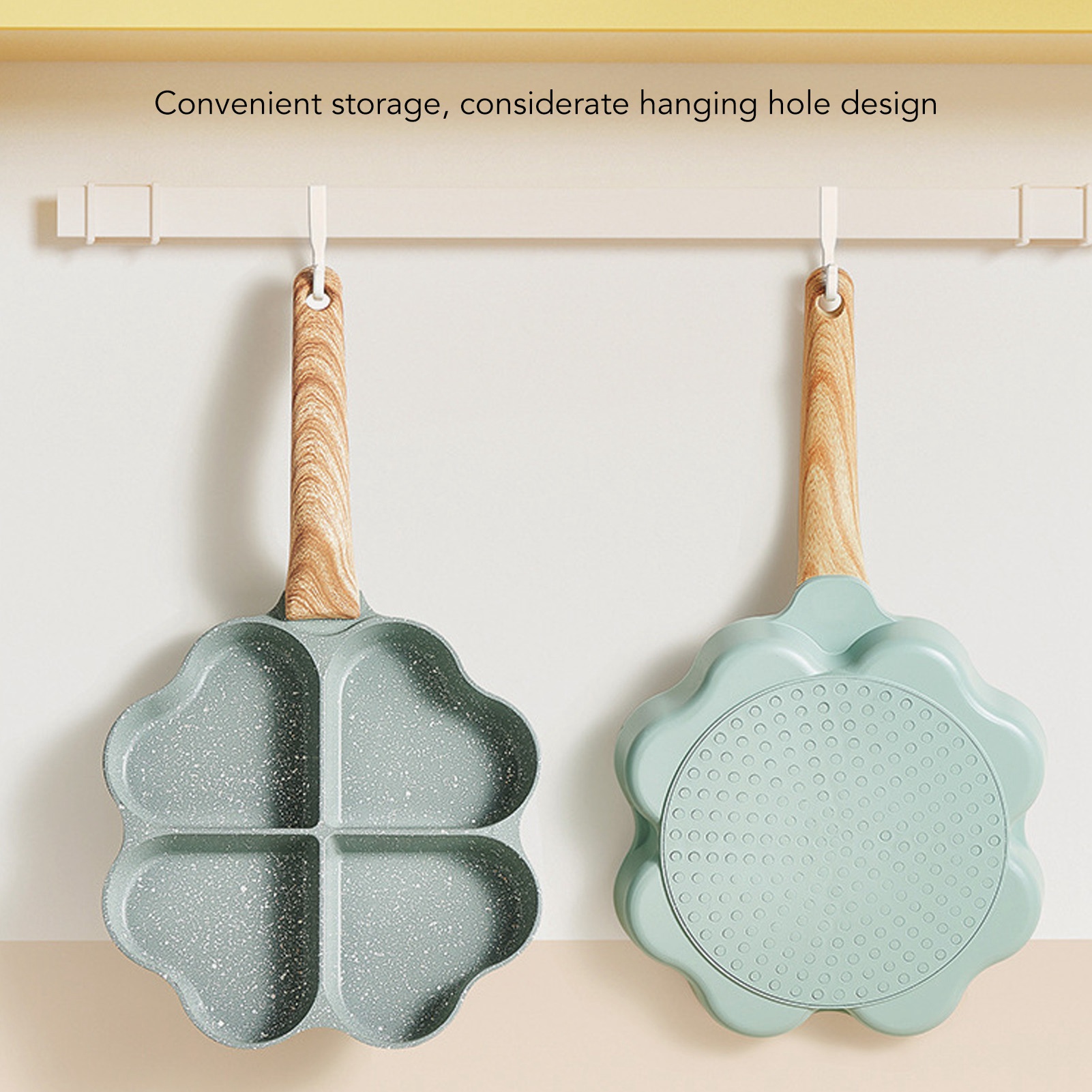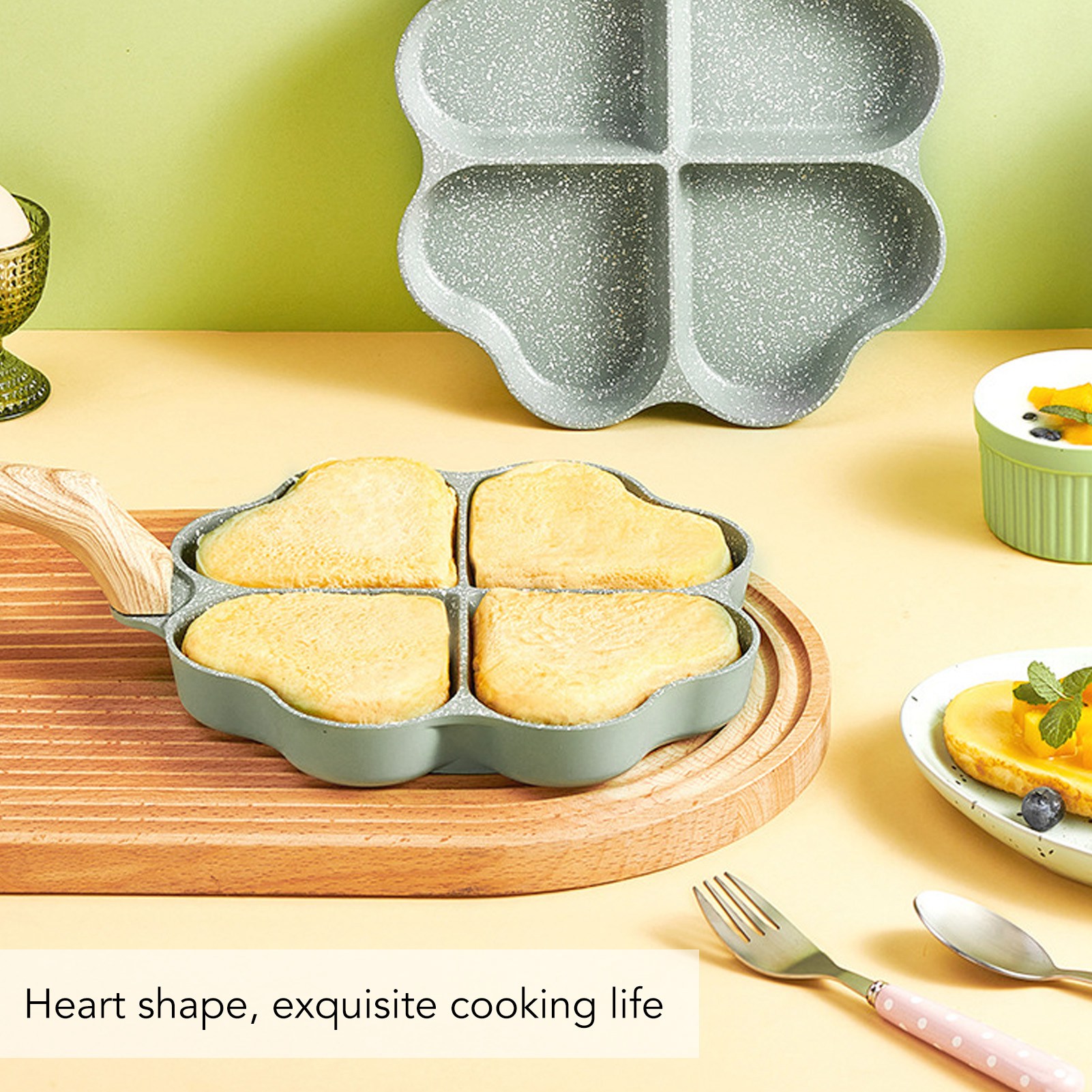 Egg Frying Pan Nonstick Heart Shaped 4 Cup Uniform Heating Pancake Pan with Handle for Kitchen Green