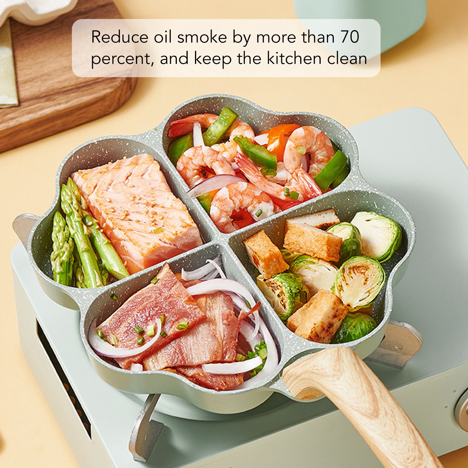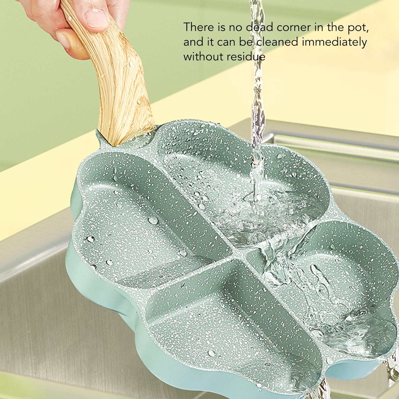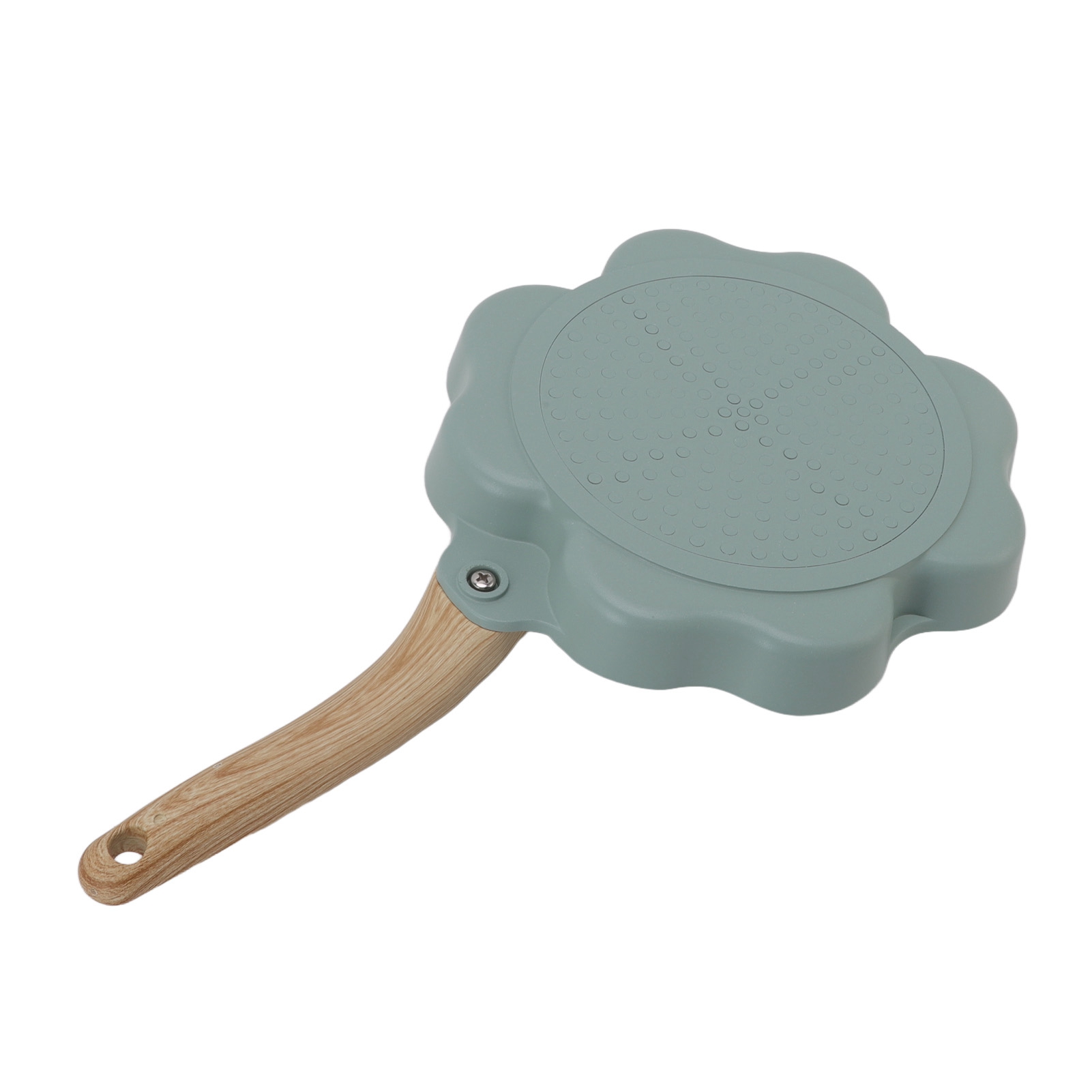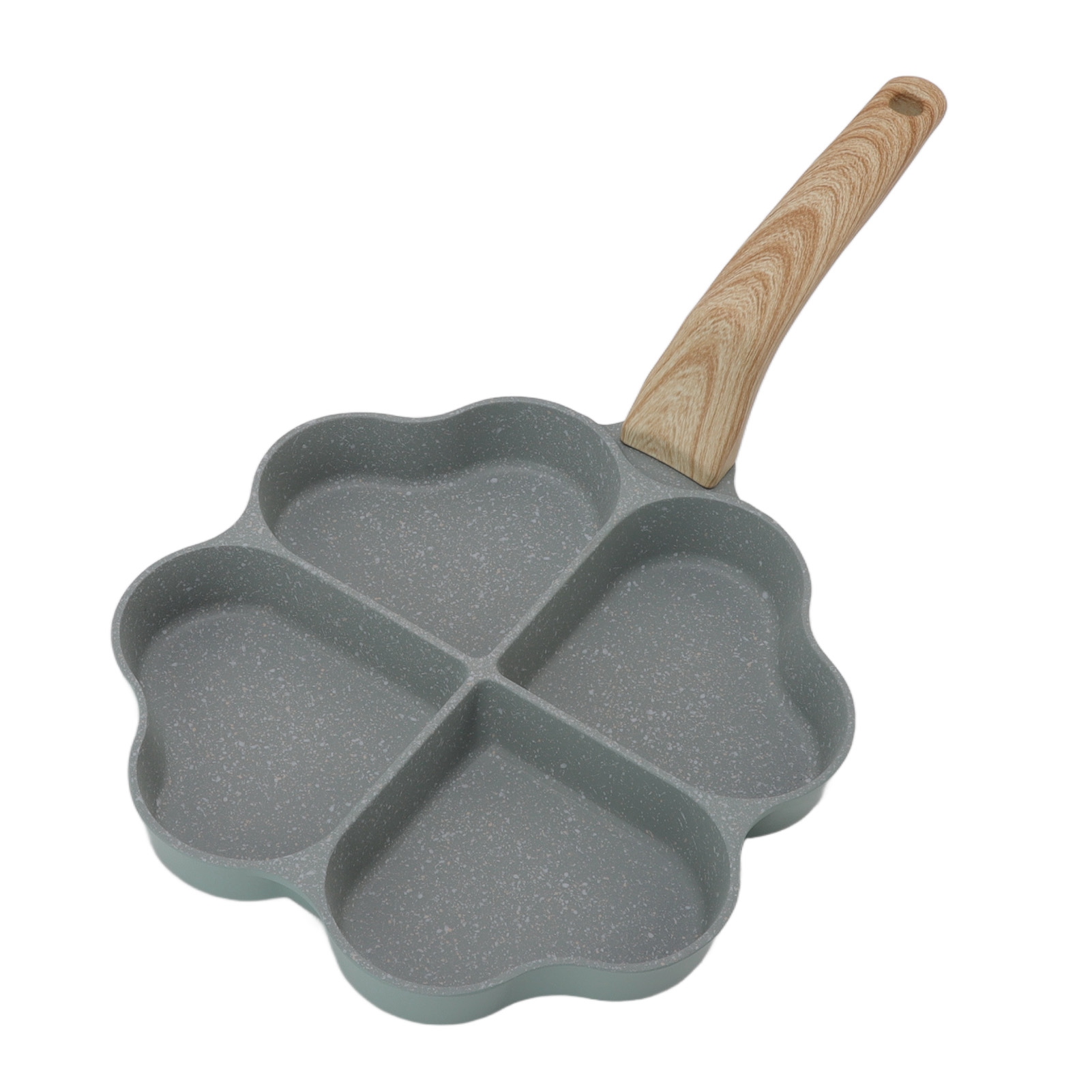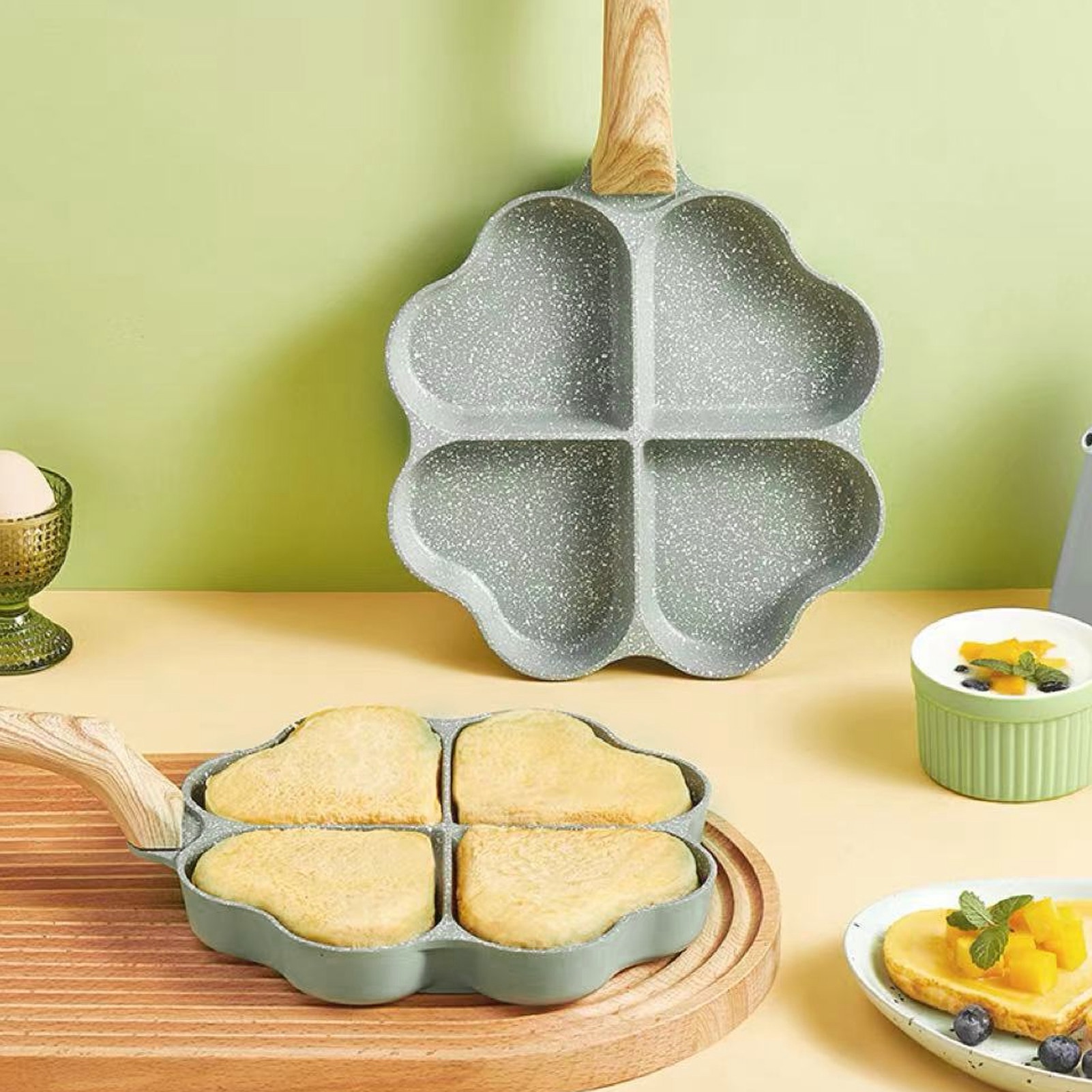 Egg Frying Pan Nonstick Heart Shaped 4 Cup Uniform Heating Pancake Pan with Handle for Kitchen Green