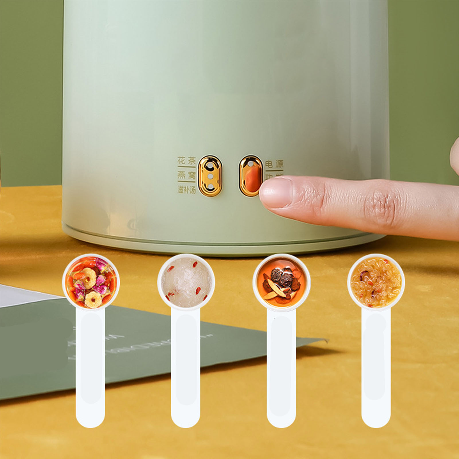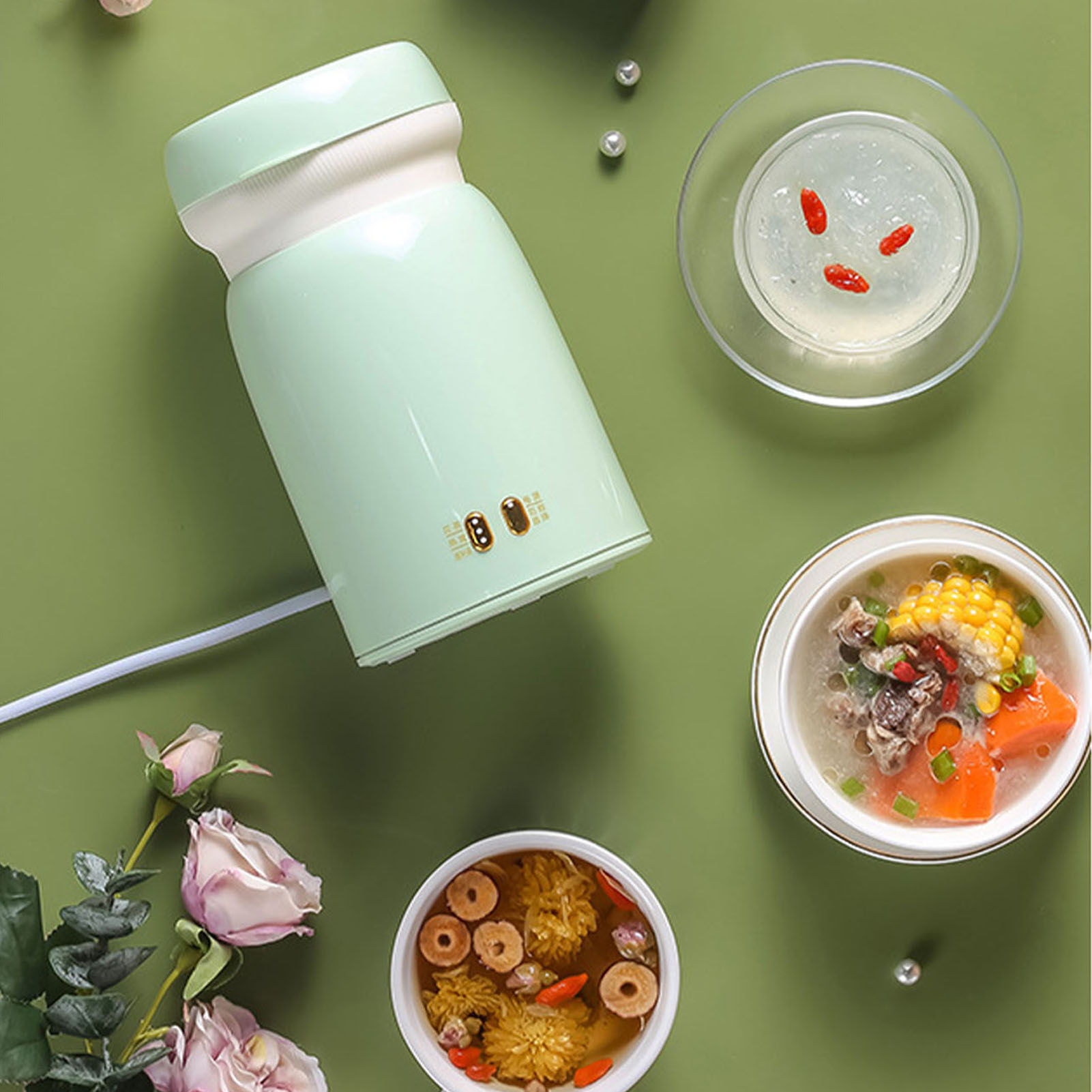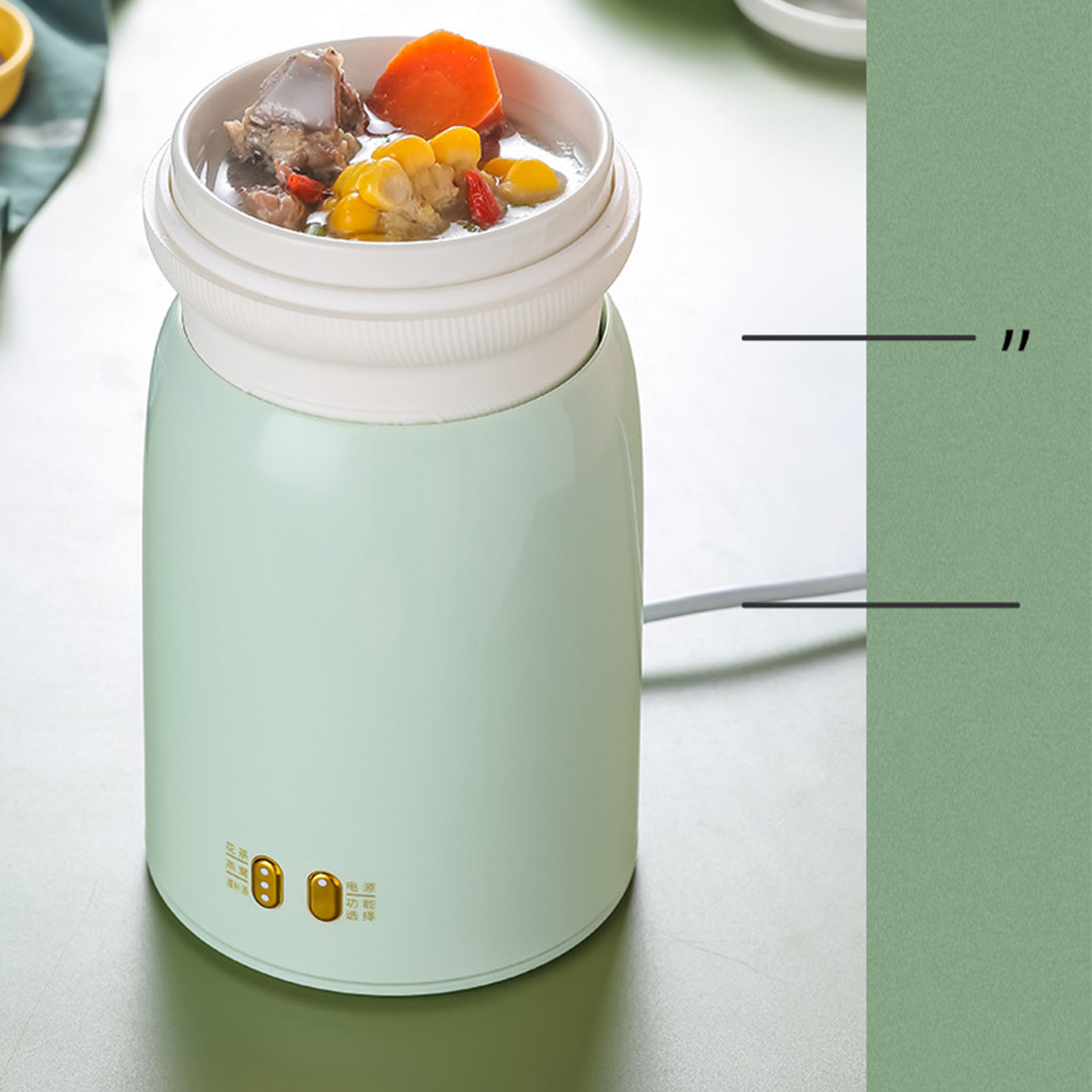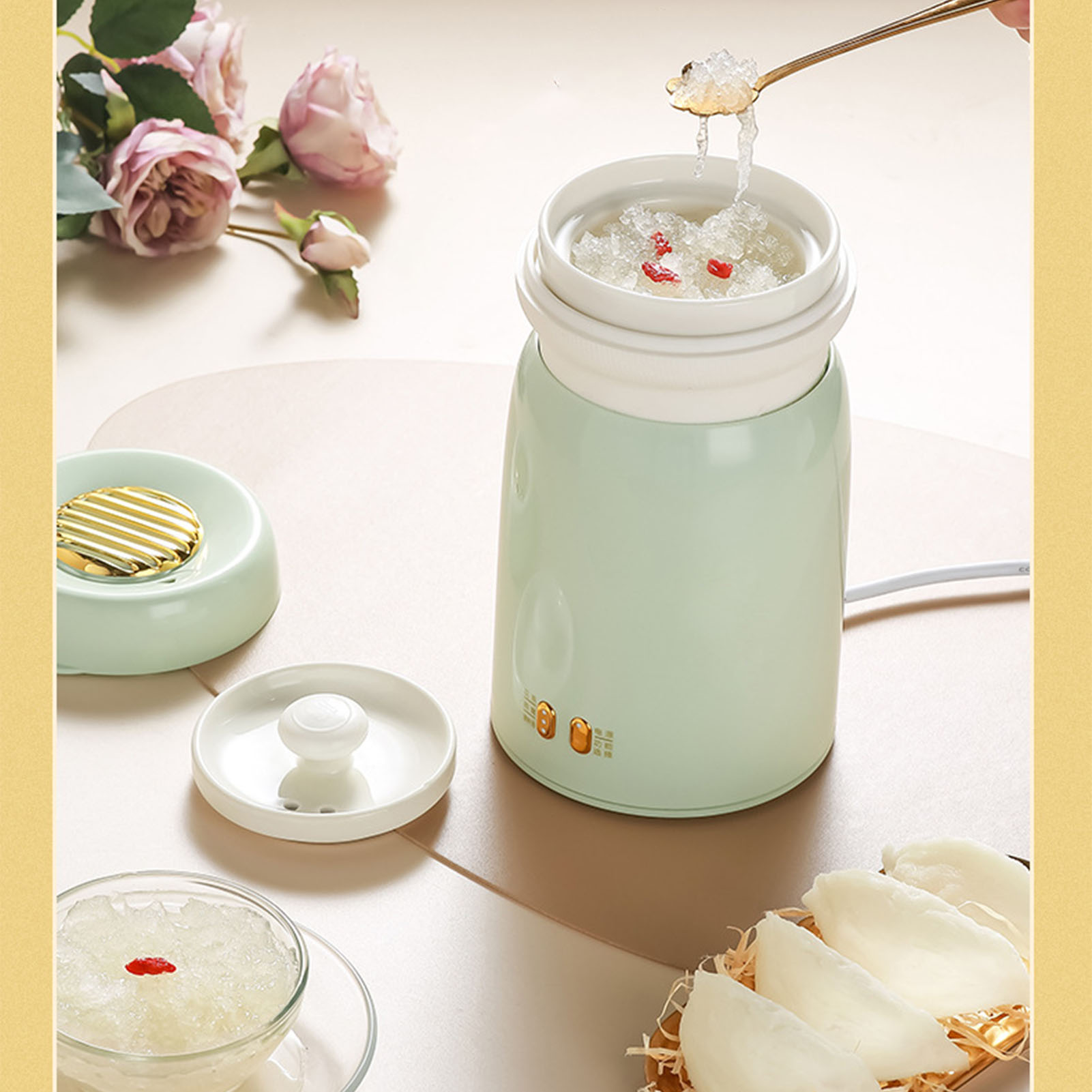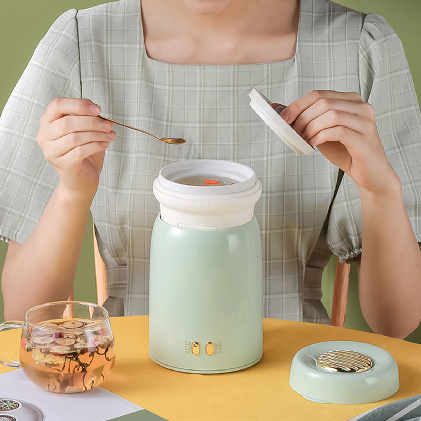 1、Multiple Purposes: Multi functional electric stewing cup, which can be used for stewing flower tea, plain porridge, nourishing soup, desserts, and other food, convenient and practical. 2、Safe Operation: This multifunctional stew cup adopts safe heating technology to ensure stable and reliable operation, and equipped with dry burning and overheating protection. 3、Convenient Use: The multifunctional usages of this electric stew cup meets different dietary needs, and the button operation is convenient and fast, can be used with confidence. 4、500ml Capacity: The capacity of this electric stew cup is 500ml, which is compact and convenient, very suitable for home, office or travel use, convenient for storage and carrying. 5、Durable Materials: This electric heating health cup is made of excellent materials, with exquisite workmanship, which is reliable and durable, and suitable for long term use.