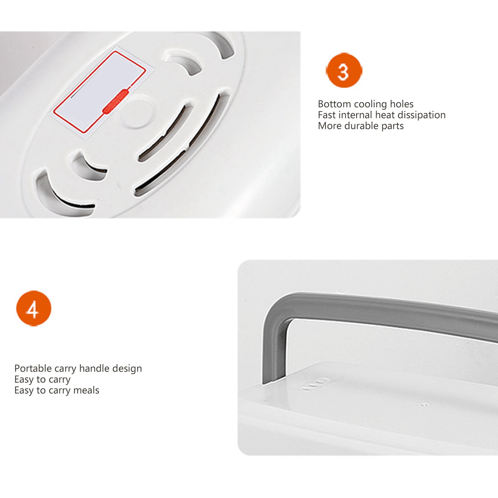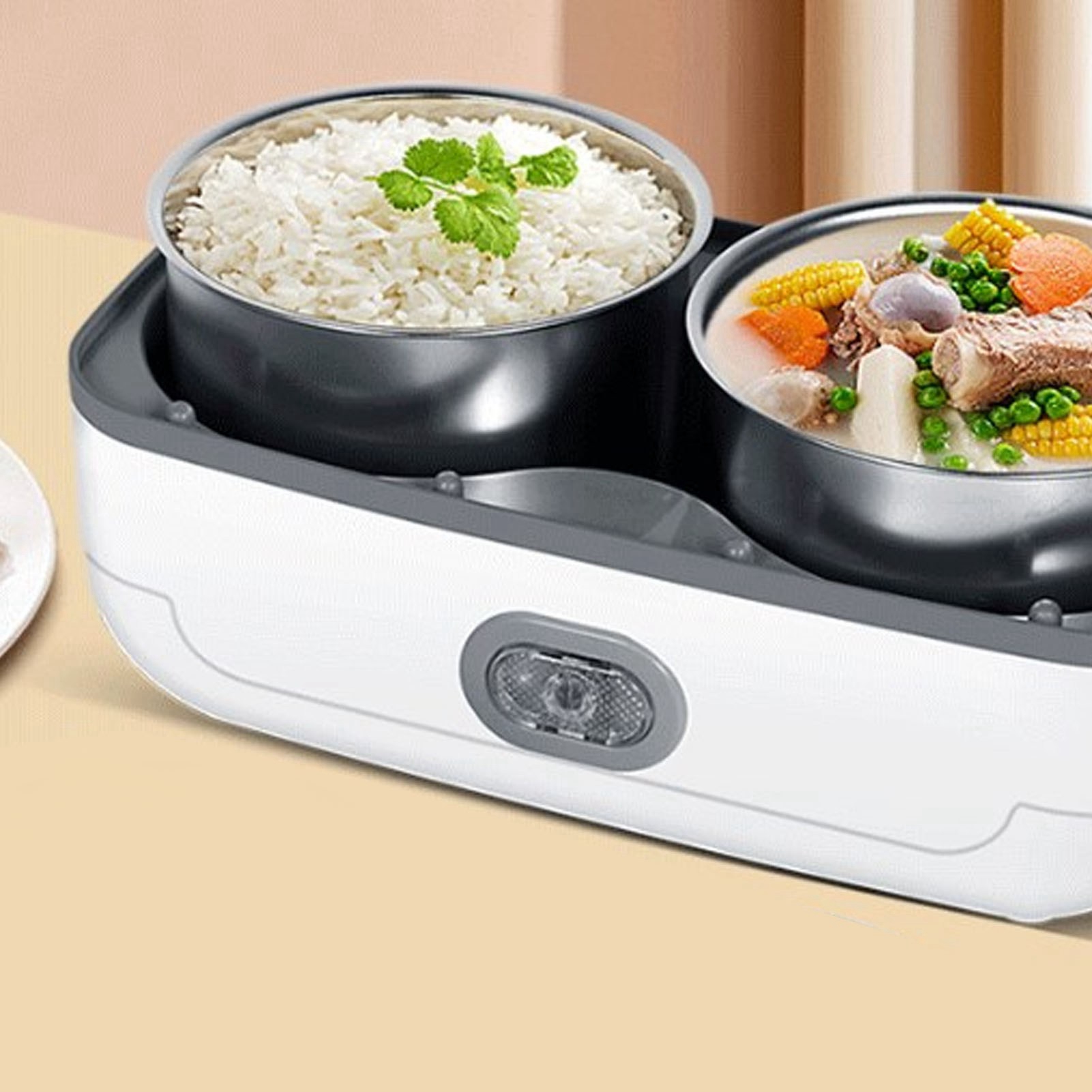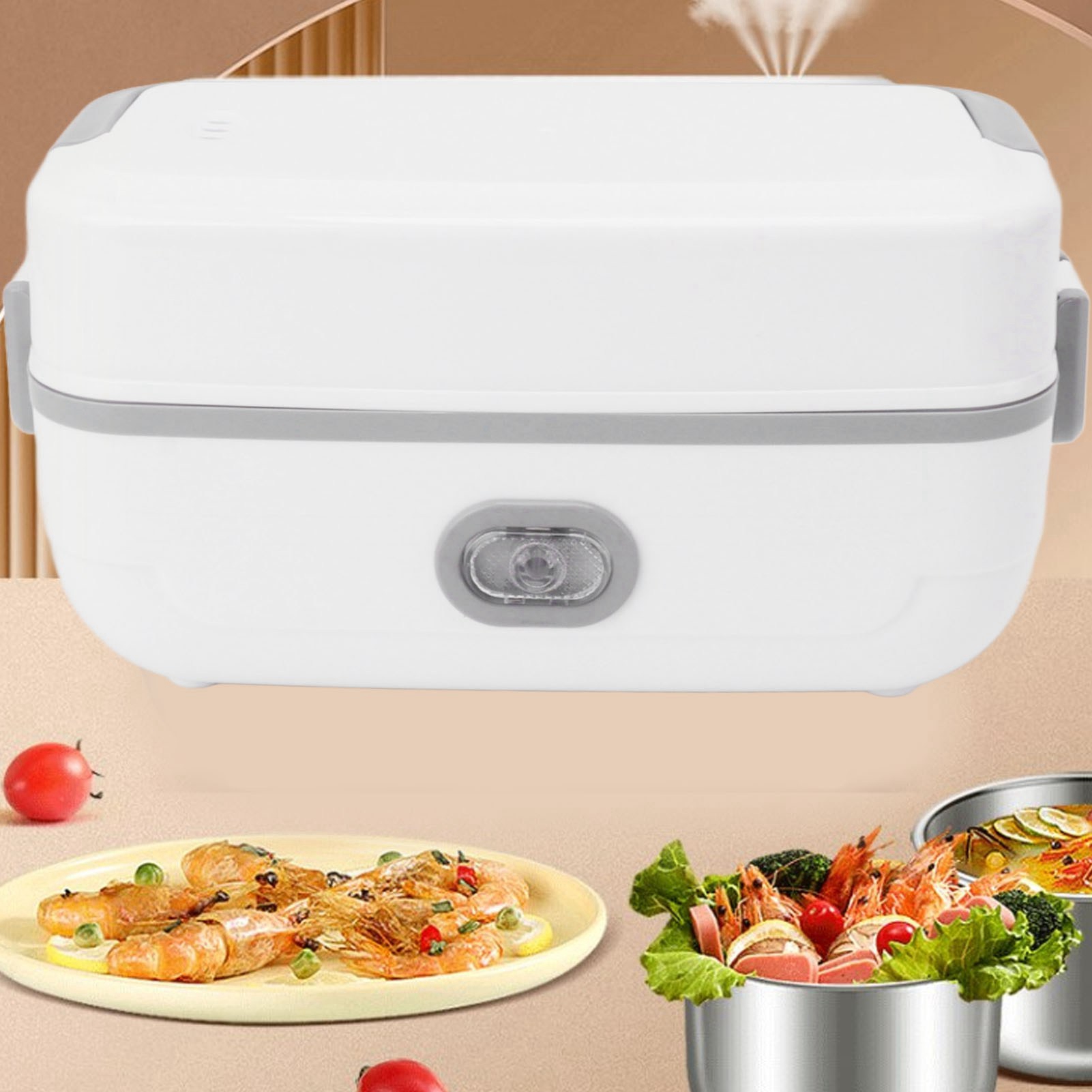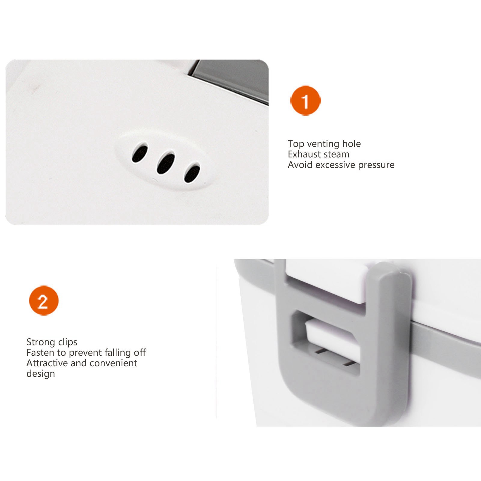 1、Easy to Use: Plug in the electric lunch box 20 to 40 minutes before your meal to heat it up and you can enjoy hot homemade food in the office or anywhere else you don't have a kitchen. 2、Easy to Clean: The electric lunch box comes with a 304 stainless steel container and inner lid, dishwasher safe and easy to clean. 3、Excellent Seal: The electric lunch box lid is fitted with a leak proof gasket to provide a better seal and prevent liquid food from spilling out when it is bumped around. 4、Multifunctional: The electric lunch box is capable of steaming, boiling, stewing and everything in between, raw rice can be cooked to maturity and heated at the touch of a button to keep it fresh without fear of letting it cool. 5、Anti Dry Burn Protection: The electric lunch box has anti dry burn safety protection to give you peace of mind, during the steaming process, the lack of water automatically stops working to ensure safe use.