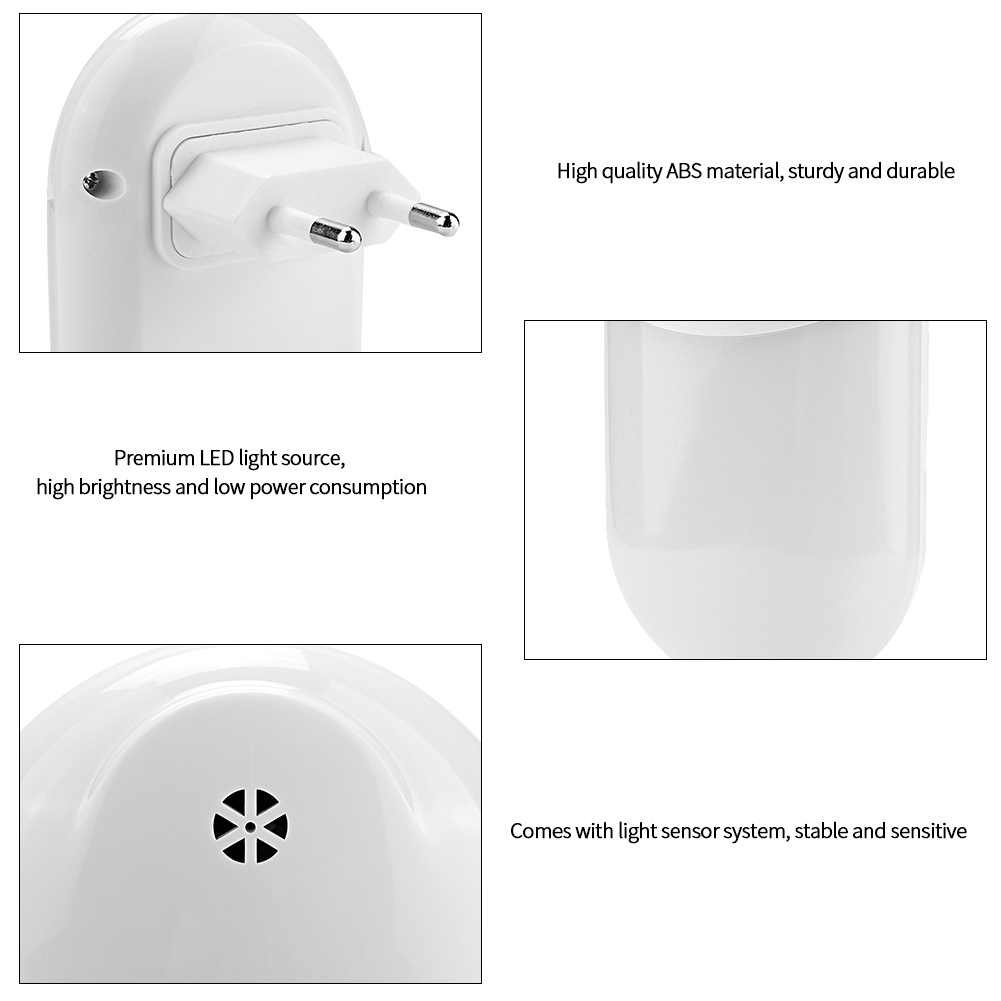 1、Made of high quality environmental protection PS material, this night lamp is sturdy and durable. 2、Premium LED light source, high brightness and low power consumption. 3、Comes with light sensor system, stable and sensitive. 4、Lightweight and small size, easy to store and use. 5、Can be widely used in bedrooms, closets, cabinets, corridors, balconies, carriages, etc.