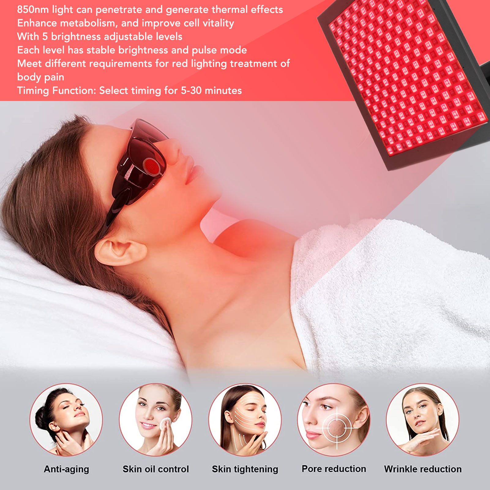 1、660nm and 850nm: 660nm infrared light can get into deep layers of the skin so that it stimulates cellular repair and increases circulation. 850nm light can penetrate and generate thermal effects, enhance metabolism, and improve cell vitality. 2、Multiple Working Modes: Our infrared light has 5 brightness gears. Each level has stable brightness and pulse mode to meet different body pain infrared light treatment needs. According to your actual use, the all in one device can solve various needs. 3、Convenient and Practical: Made from aluminum construction with foldable base, making storage and use more easy. Plug and play style, press the switch of the control box to light up. 4、Effective Relief: Red lamp helps to take your neck pain, shoulder pain,muscle soreness away. You can use this lamp before going to bed for a better sleep. 5、Safe to Use: This infrared light lamp has the timing function of 5‑30 minutes, and it can automatically turn off when time is up. No need to worry over exposure when fall asleep, safely use it at home.