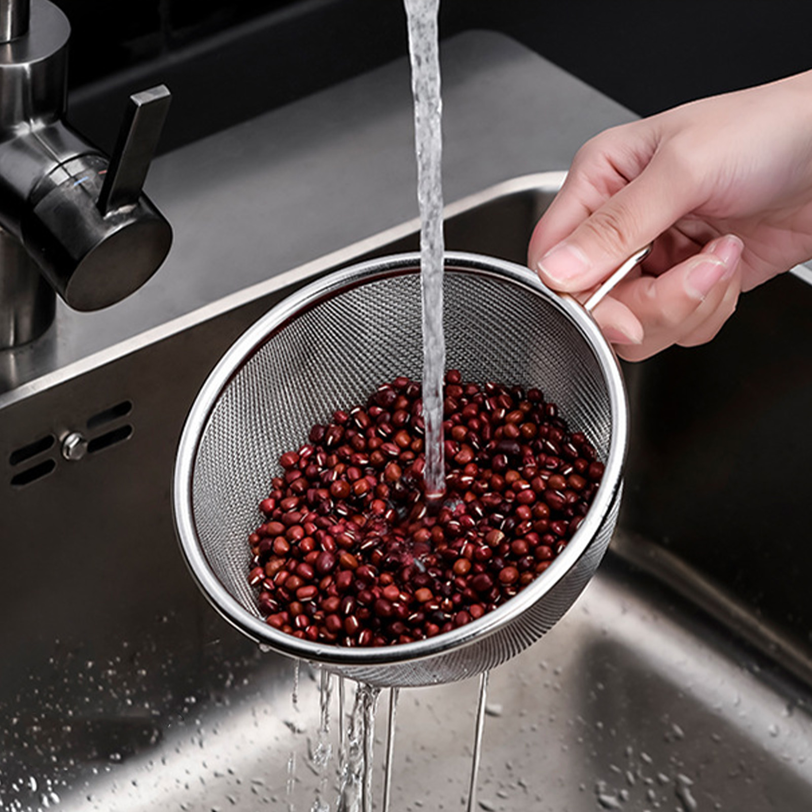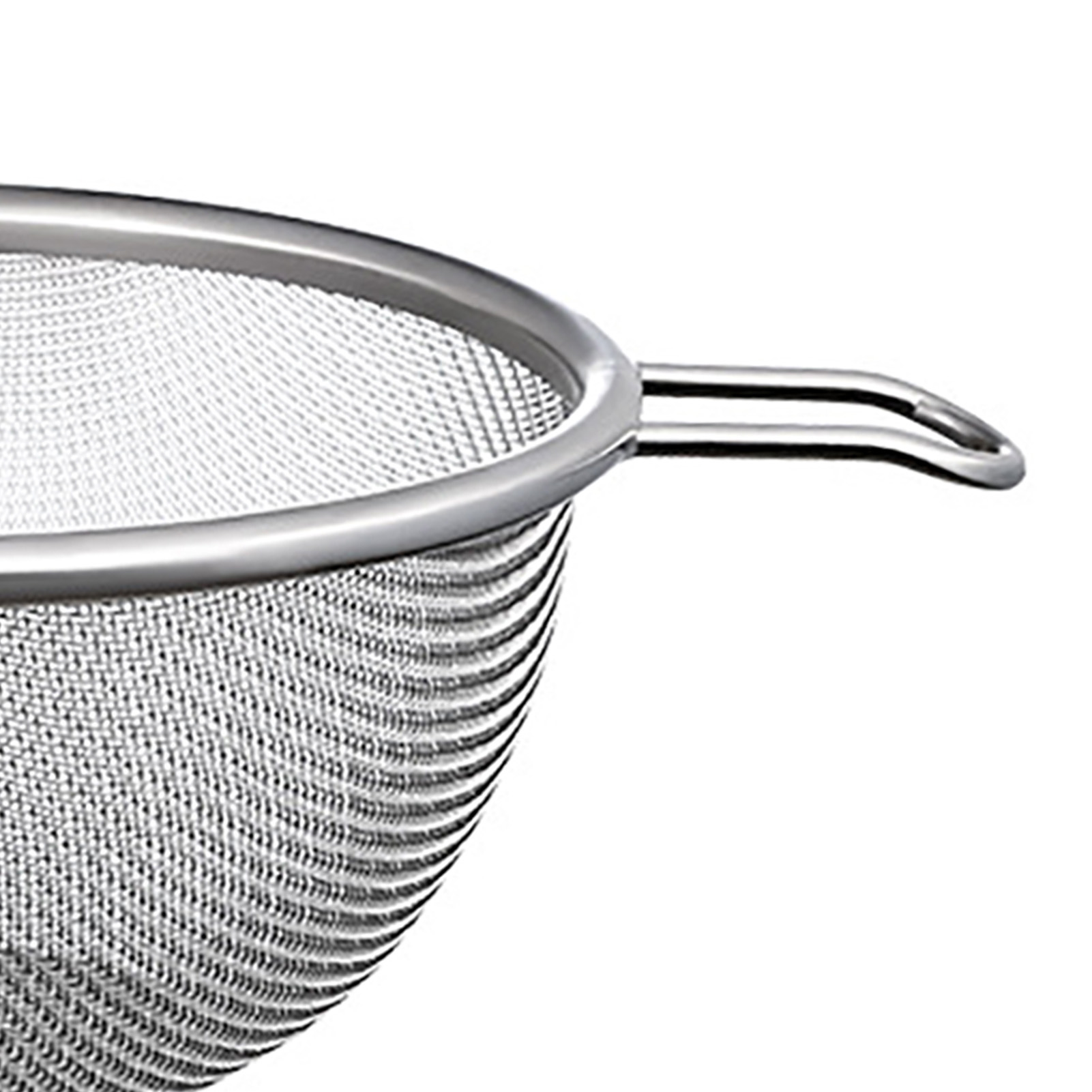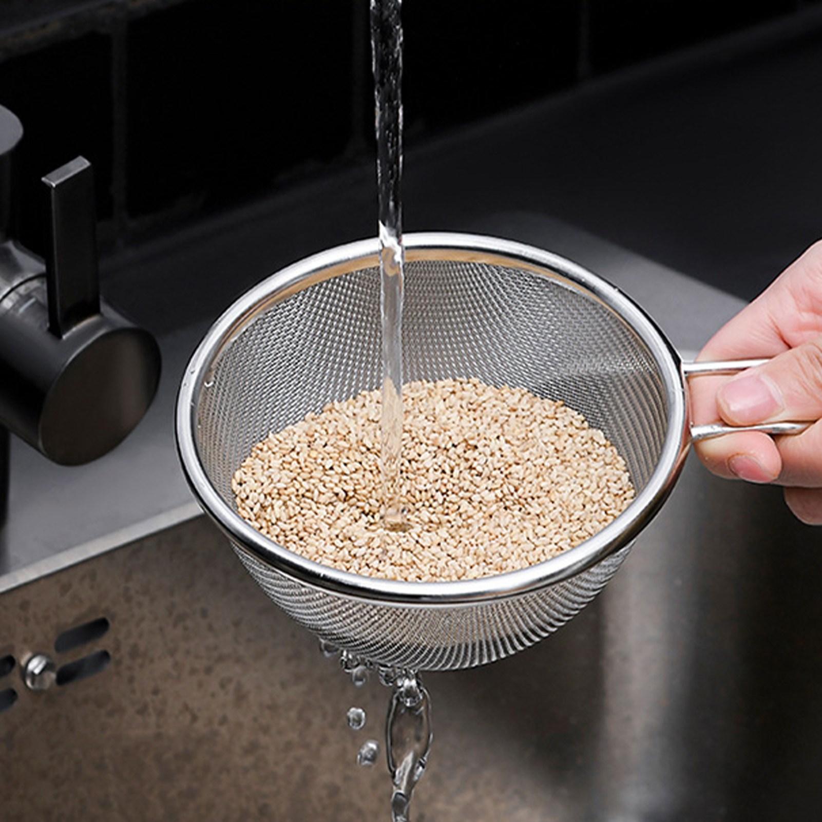 1、Stainless Steel Material: The fine mesh strainer is made from premium stainless steel, ensuring durability and reliability. It is built to last and can withstand the rigors of everyday kitchen use. 2、Innovative Design: With its handle design, the mesh strainer offers convenient operation. It allows for easy cleaning of small ingredients like sesame seeds and red beans, making your cooking experience hassle free. 3、Versatile Use: The Fine Mesh Strainer is a versatile tool that can be used for filtering, draining, sieving, and washing a variety of foods. From straining pasta to rinsing fruits and vegetables, it offers practicality and convenience in the kitchen. 4、Mesh Basket Design: The strainer features a tightly woven mesh basket that ensures no food particles fall through. This simplifies kitchen operations and reduces waste, allowing you to make the most out of your ingredients. 5、Easy to Clean: The Fine Mesh Strainer has a smooth surface that is easy to clean. It doesn't retain odors or flavors, preserving the original taste of the food. With its simple and efficient cleaning process.