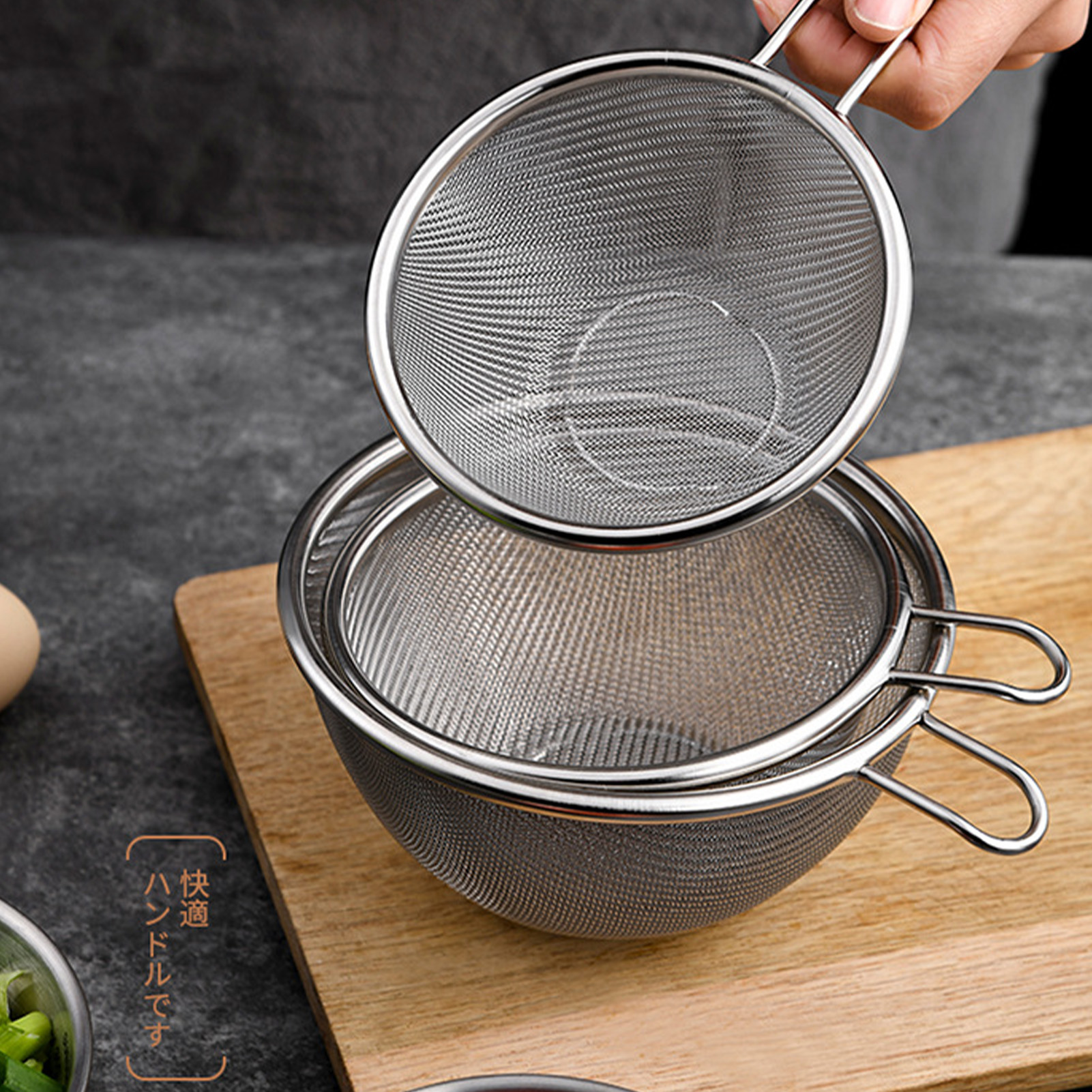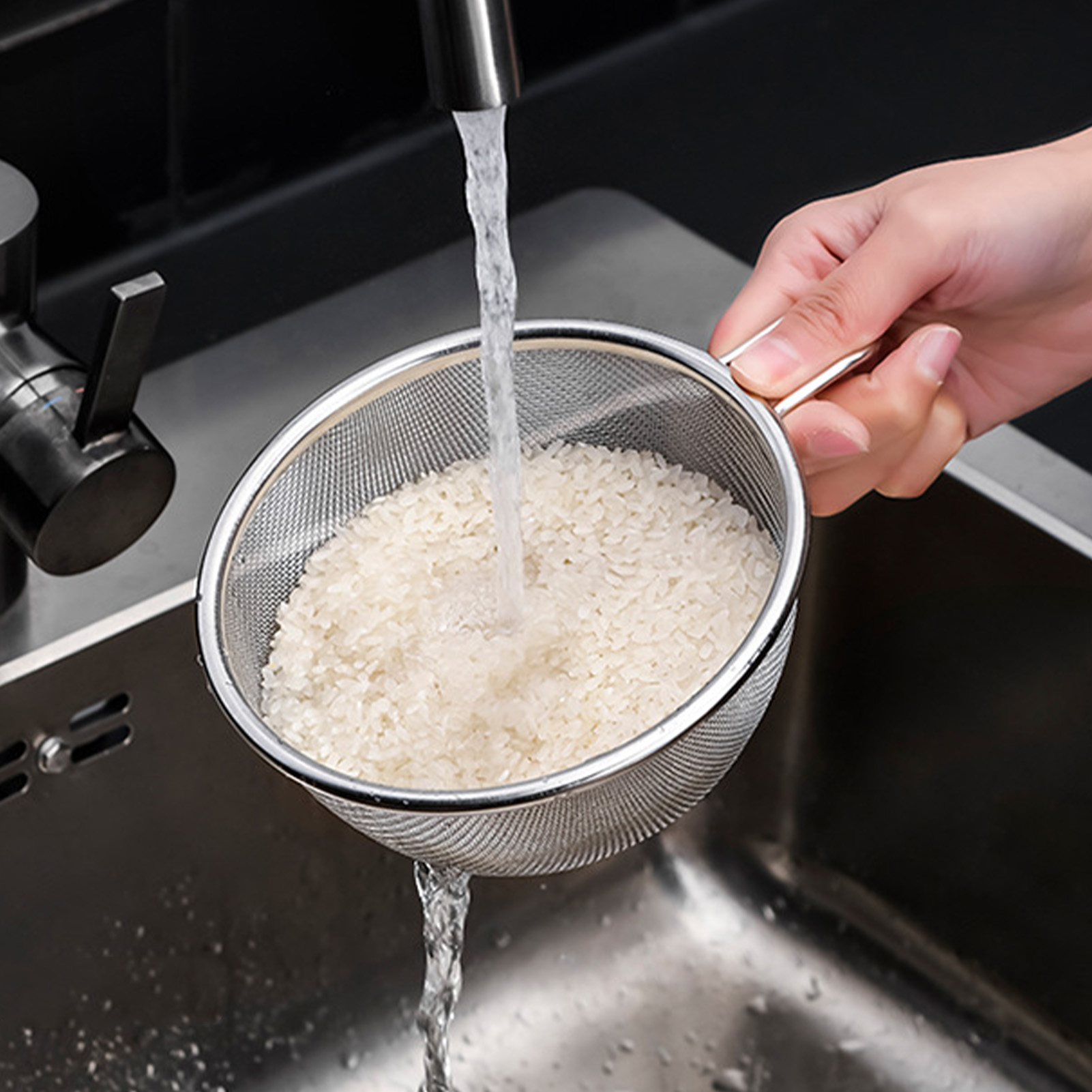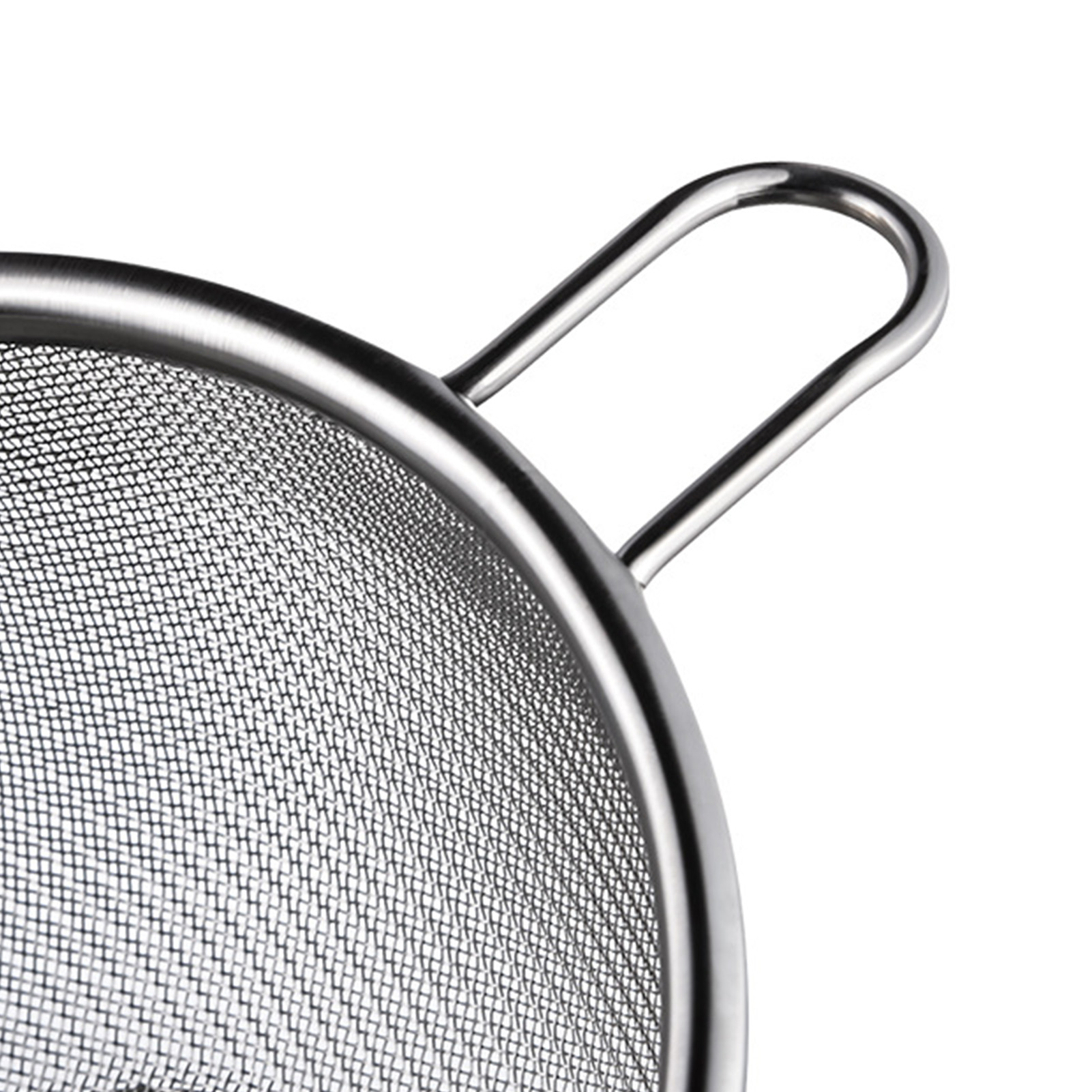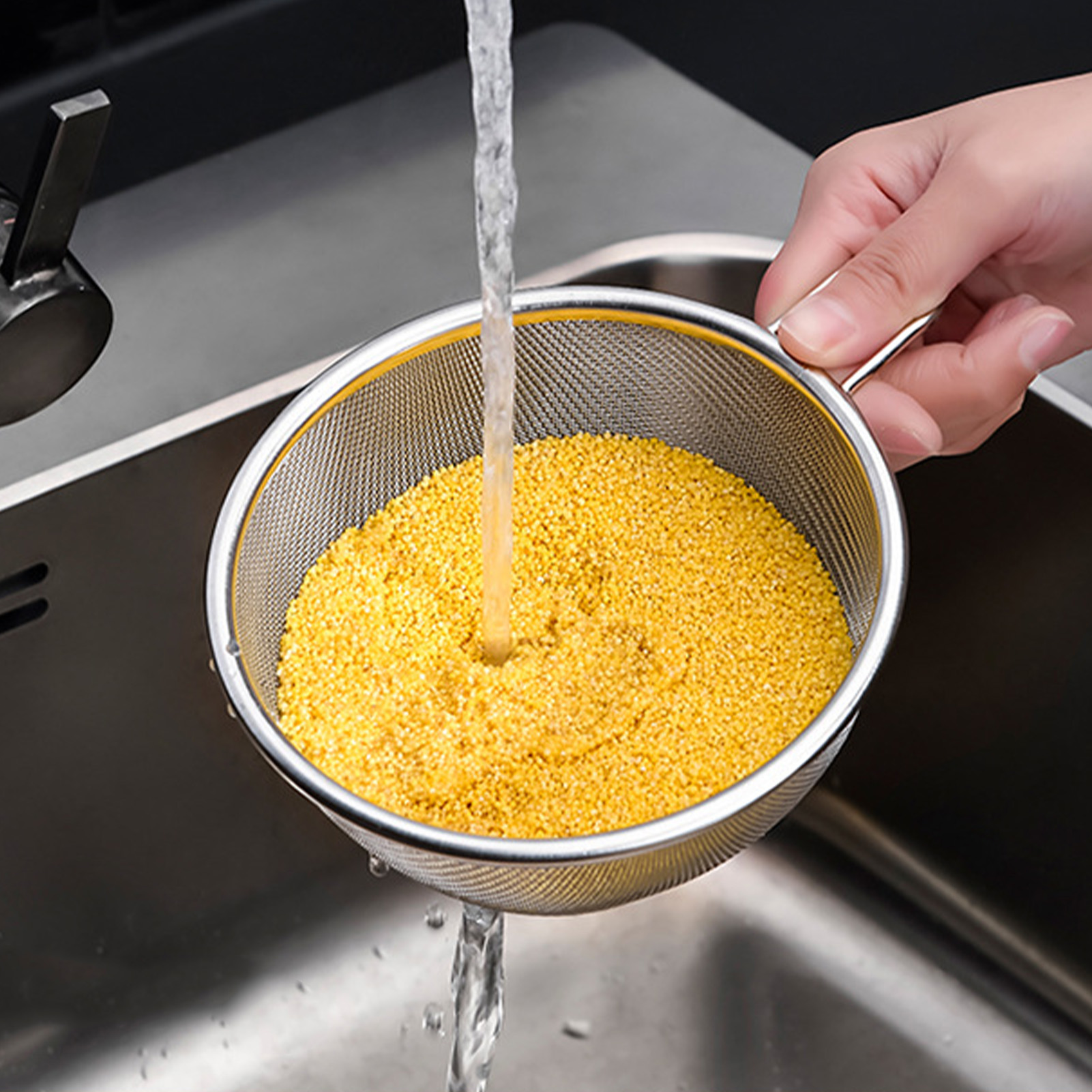 1、Stainless Steel Material: The fine mesh strainer is made from premium stainless steel, ensuring durability and reliability. It is built to last and can withstand the rigors of everyday kitchen use. 2、Innovative Design: With its handle design, the mesh strainer offers convenient operation. It allows for easy cleaning of small ingredients like sesame seeds and red beans, making your cooking experience hassle free. 3、Versatile Use: The Fine Mesh Strainer is a versatile tool that can be used for filtering, draining, sieving, and washing a variety of foods. From straining pasta to rinsing fruits and vegetables, it offers practicality and convenience in the kitchen. 4、Mesh Basket Design: The strainer features a tightly woven mesh basket that ensures no food particles fall through. This simplifies kitchen operations and reduces waste, allowing you to make the most out of your ingredients. 5、Easy to Clean: The Fine Mesh Strainer has a smooth surface that is easy to clean. It doesn't retain odors or flavors, preserving the original taste of the food. With its simple and efficient cleaning process.