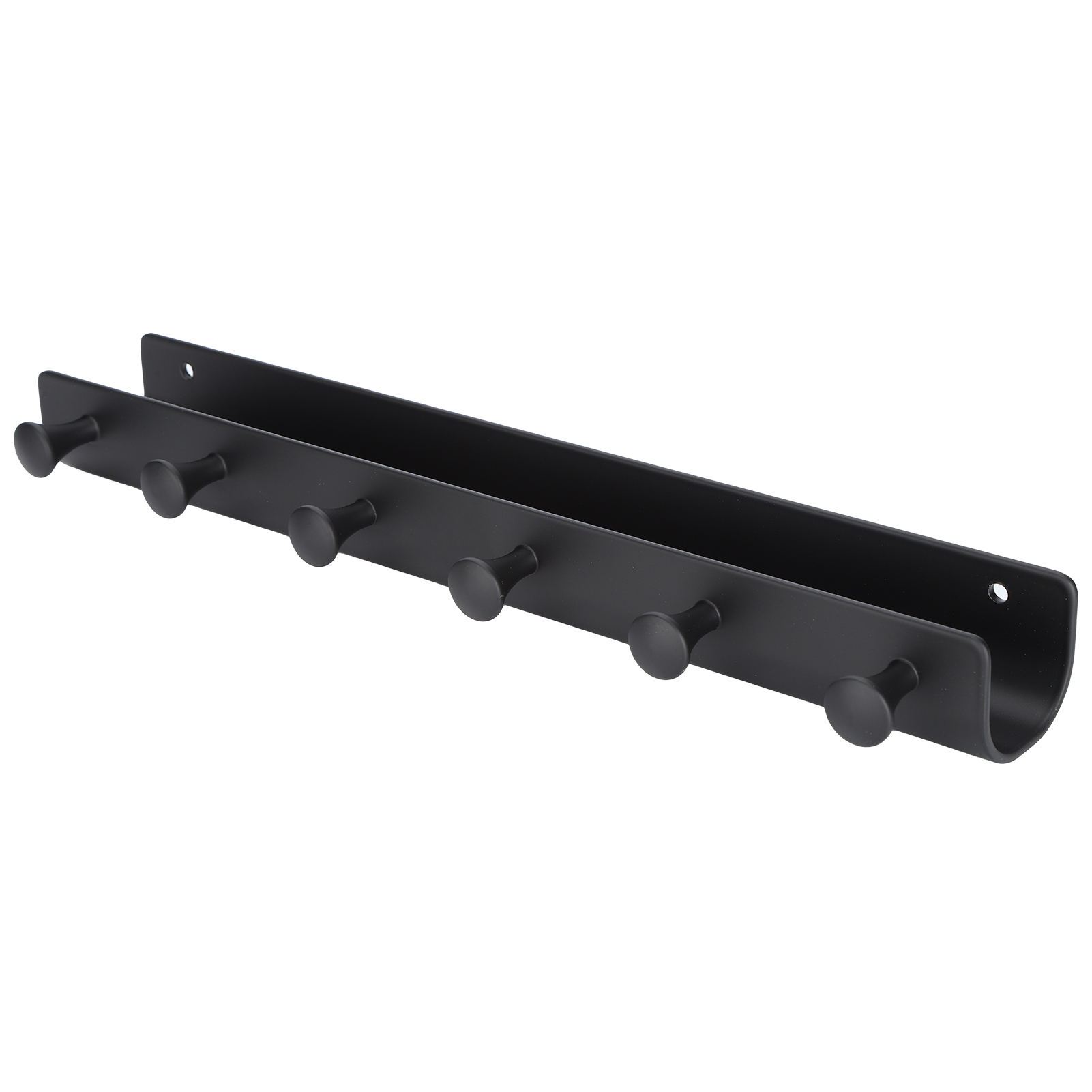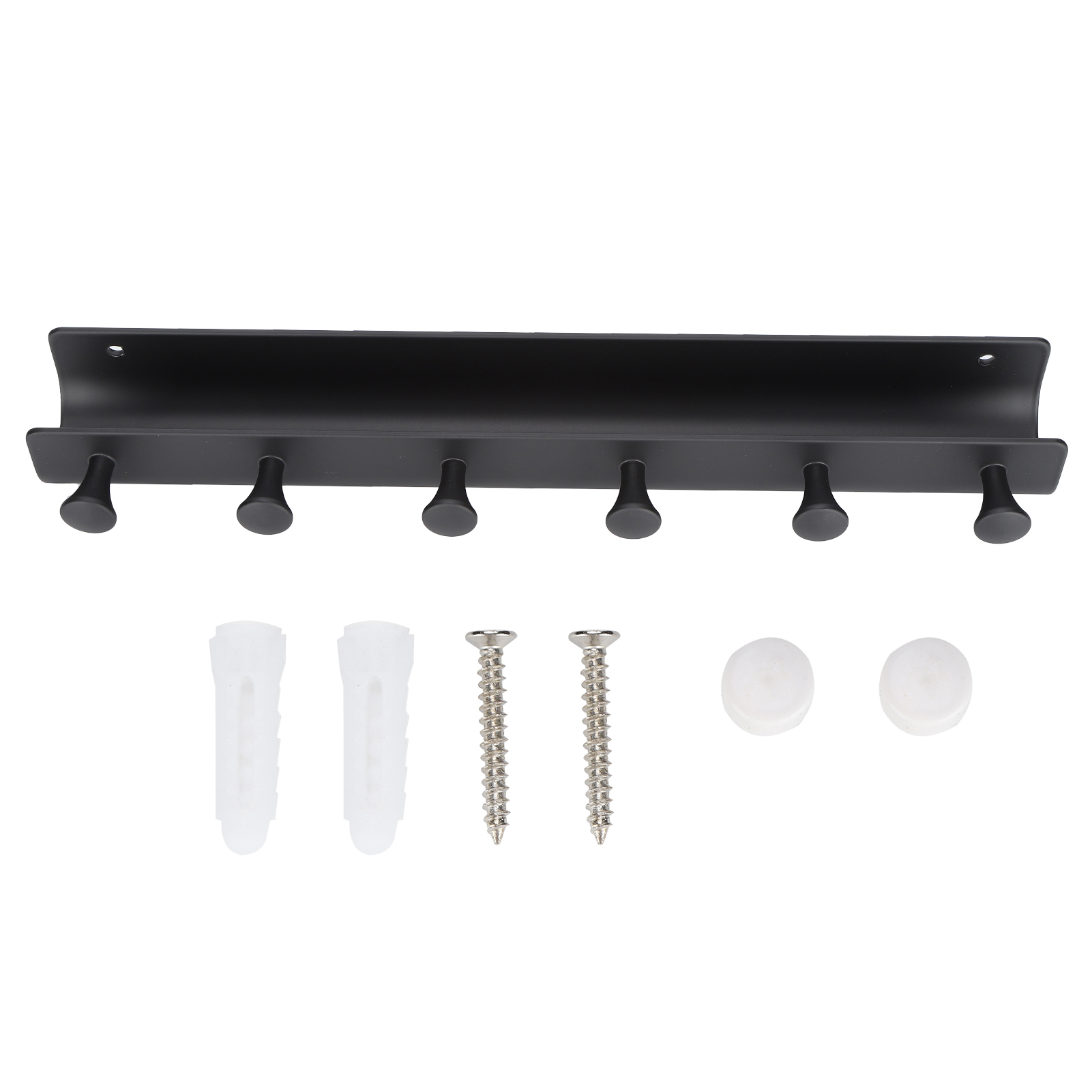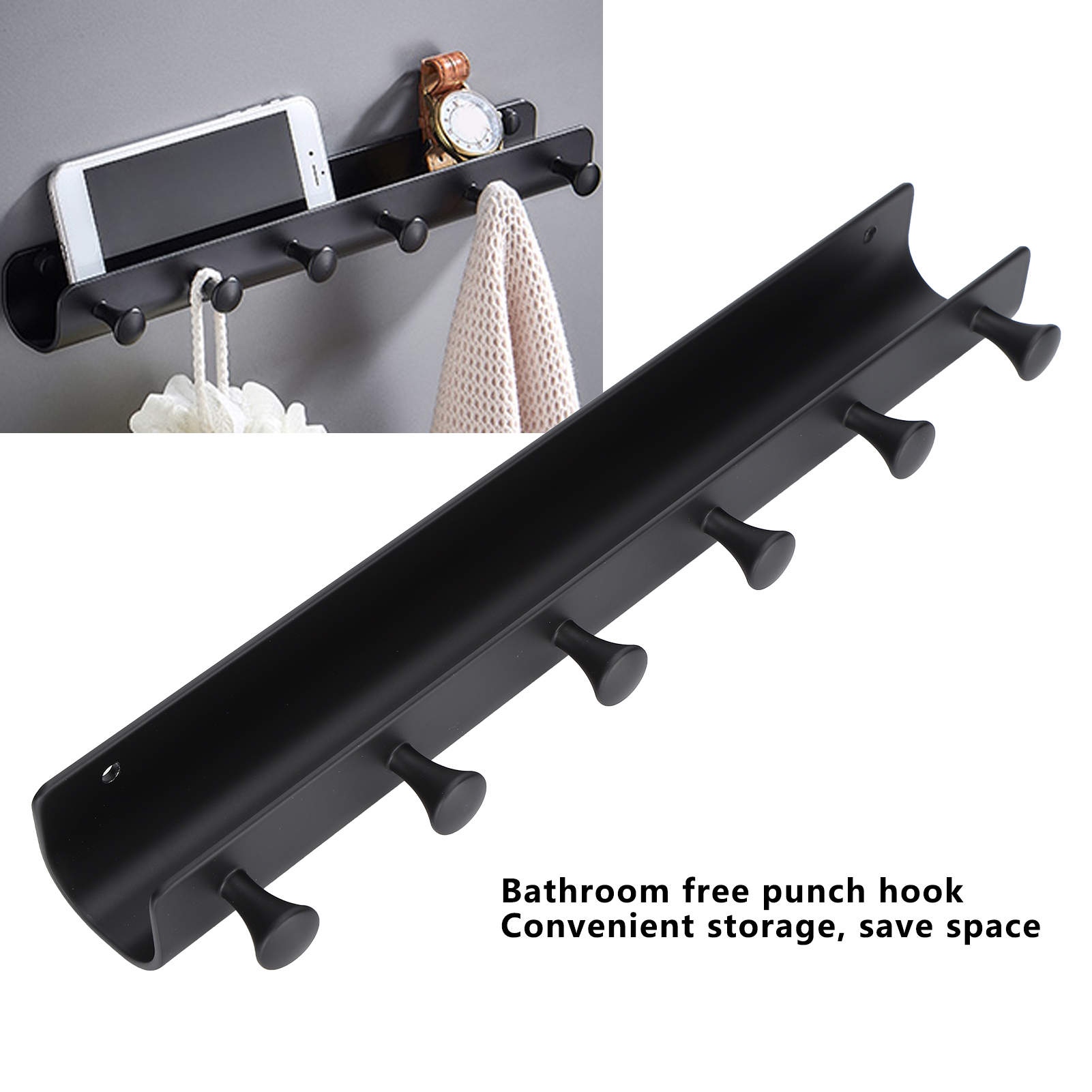 Wall Mounted Hook Space Aluminum Wall Clothes Pegs with 6 Hooks Punchfree Hanger for Hanging Coats Hat Keychain(Black )