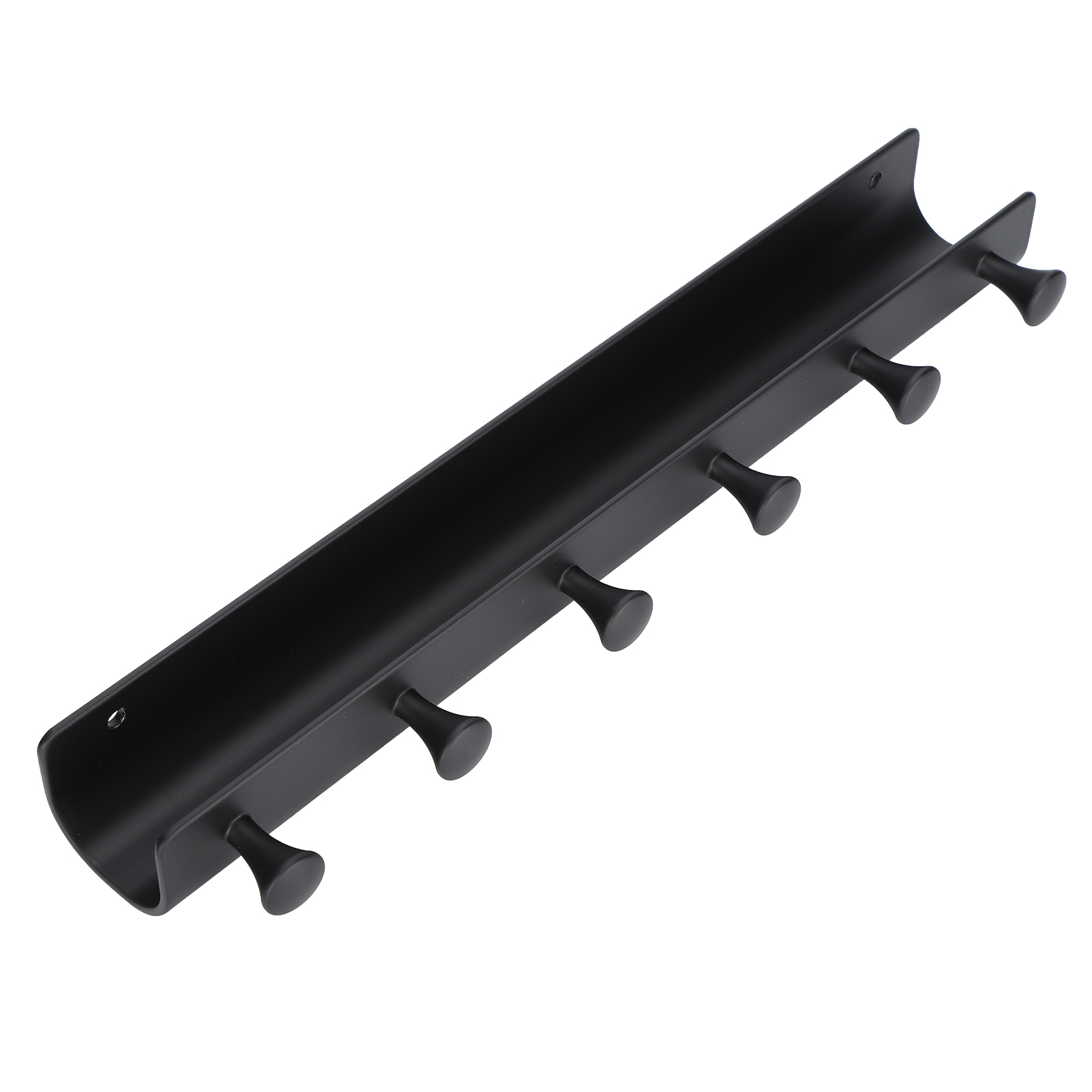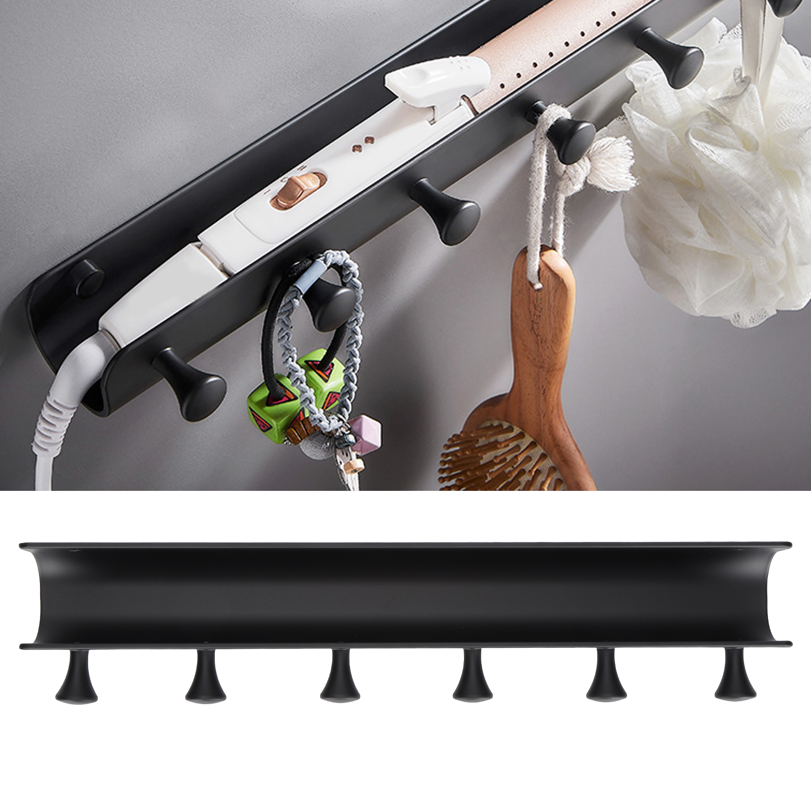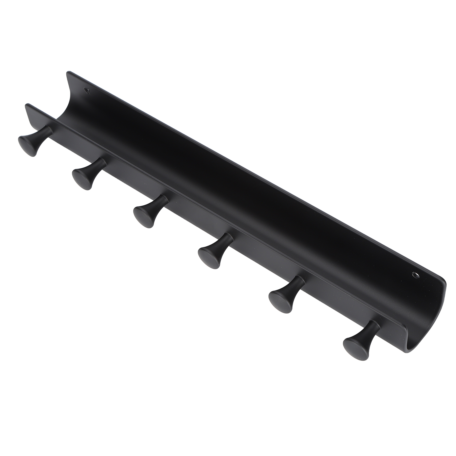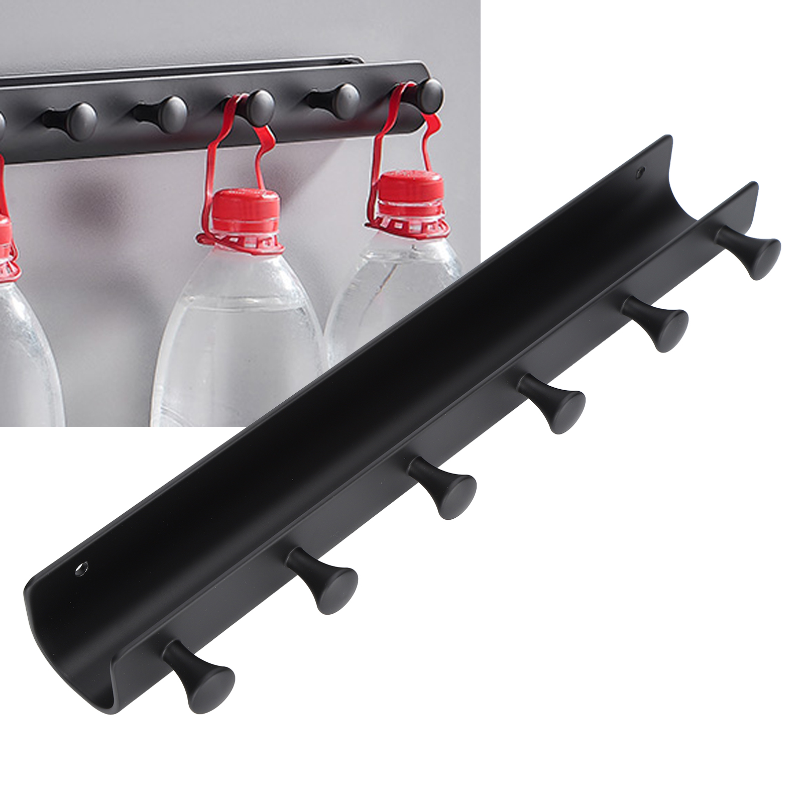 Wall Mounted Hook Space Aluminum Wall Clothes Pegs with 6 Hooks Punchfree Hanger for Hanging Coats Hat Keychain(Black )