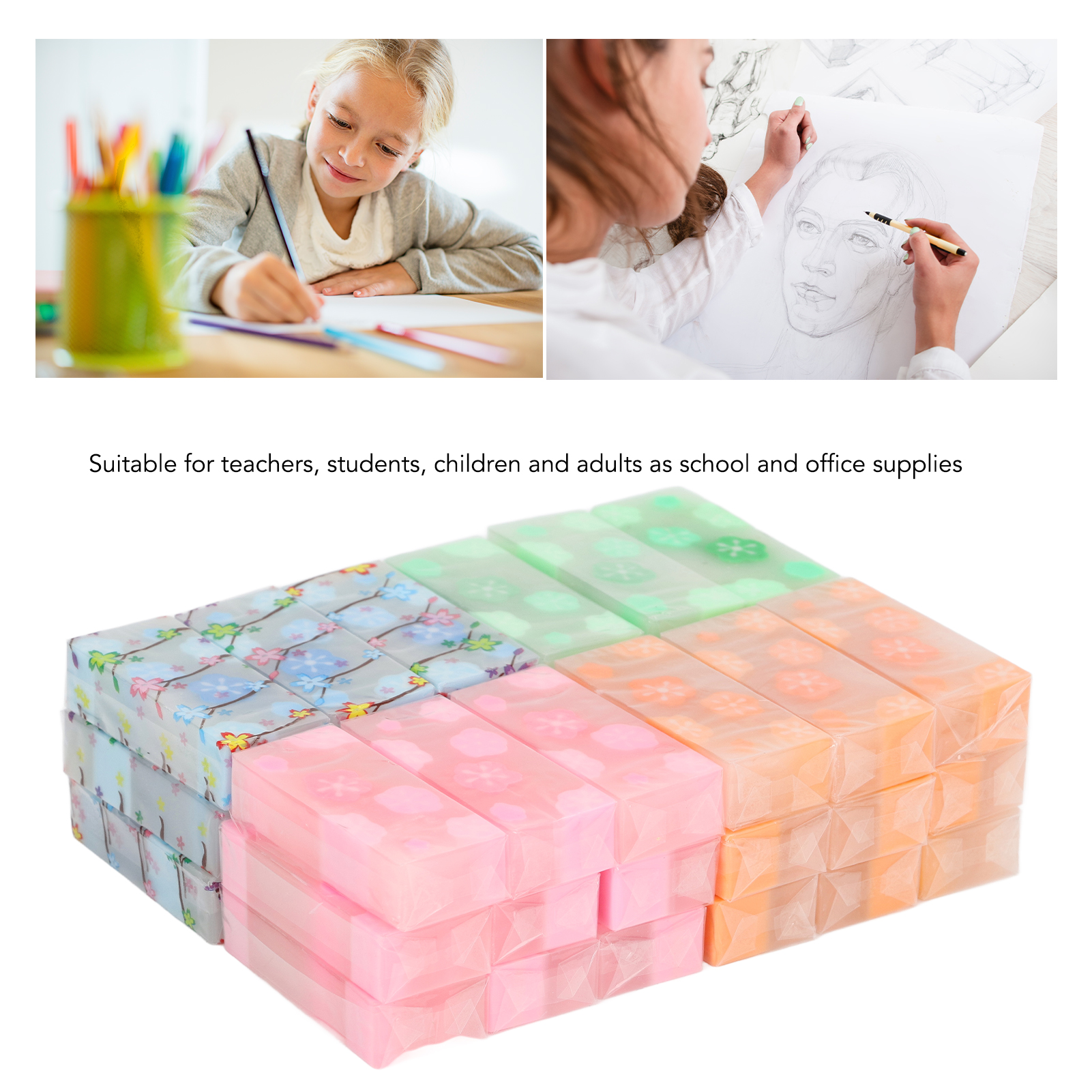 1、36 Pack: The 36 Pack Eraser Bulk Set is perfect for teachers, students, kids and adults as school and office supplies. 2、Durable And Break Resistant: Regular standard size, with improved materials, durable enough for everyday use. They don't break easily even when bent hard or apply a lot of pressure, making them ideal for children and students. 3、Easy to Erase: The eraser erases most types of pencil marks without smudging, and the soft material leaves no marks. 4、Suitability: Suitable for most situations such as testing, school and office writing, design and sketching. 5、Safe And Harmful: Colored pencil erasers, safe for children to use, are the best companion for drawing, sketching and pencil writing.
