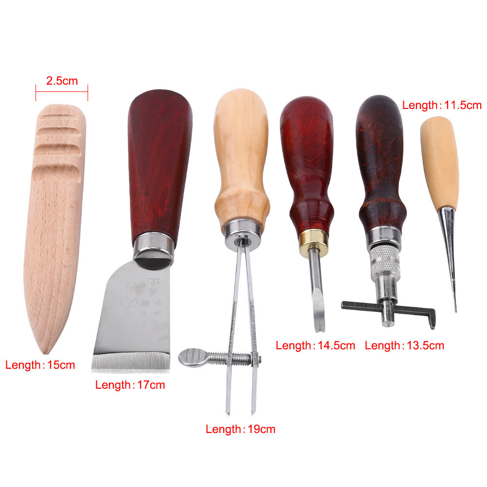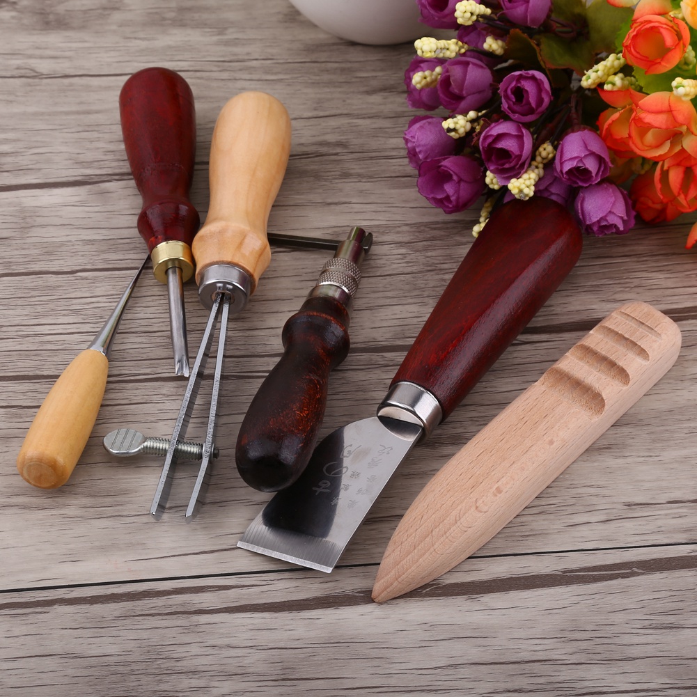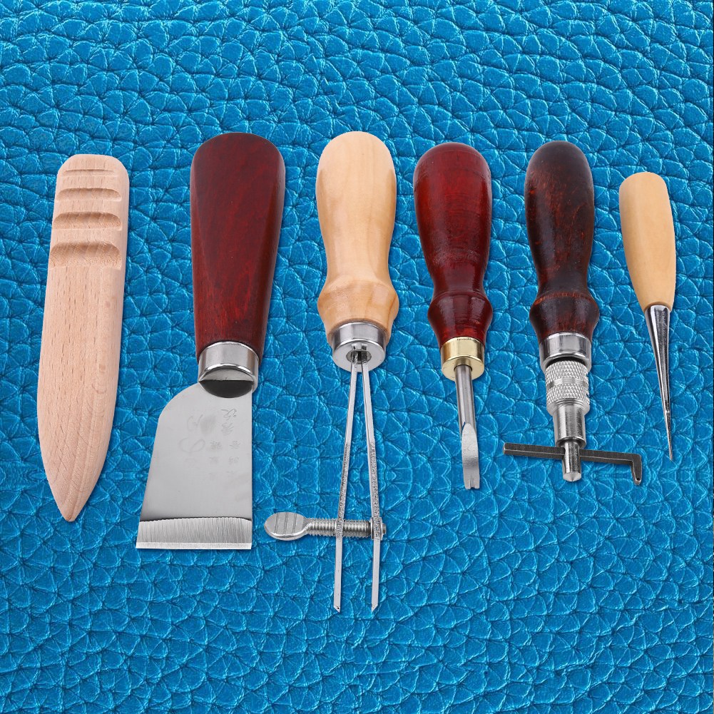 1、Made from high structure and hardness material is durable and ensures a long service life 2、There are totally 6 pieces tools which includes essential tools for leather working: edge creaser, slicker, skiving knife, groover, beveler and awl 3、A kind of very easy to use DIY hand tool, great for personalizing your leather projects 4、They are great for any custom leather works, the edge slicker has different grooves for various wide leather edges 5、This tool set would bring you much convenience when beveling or grooving leather craft