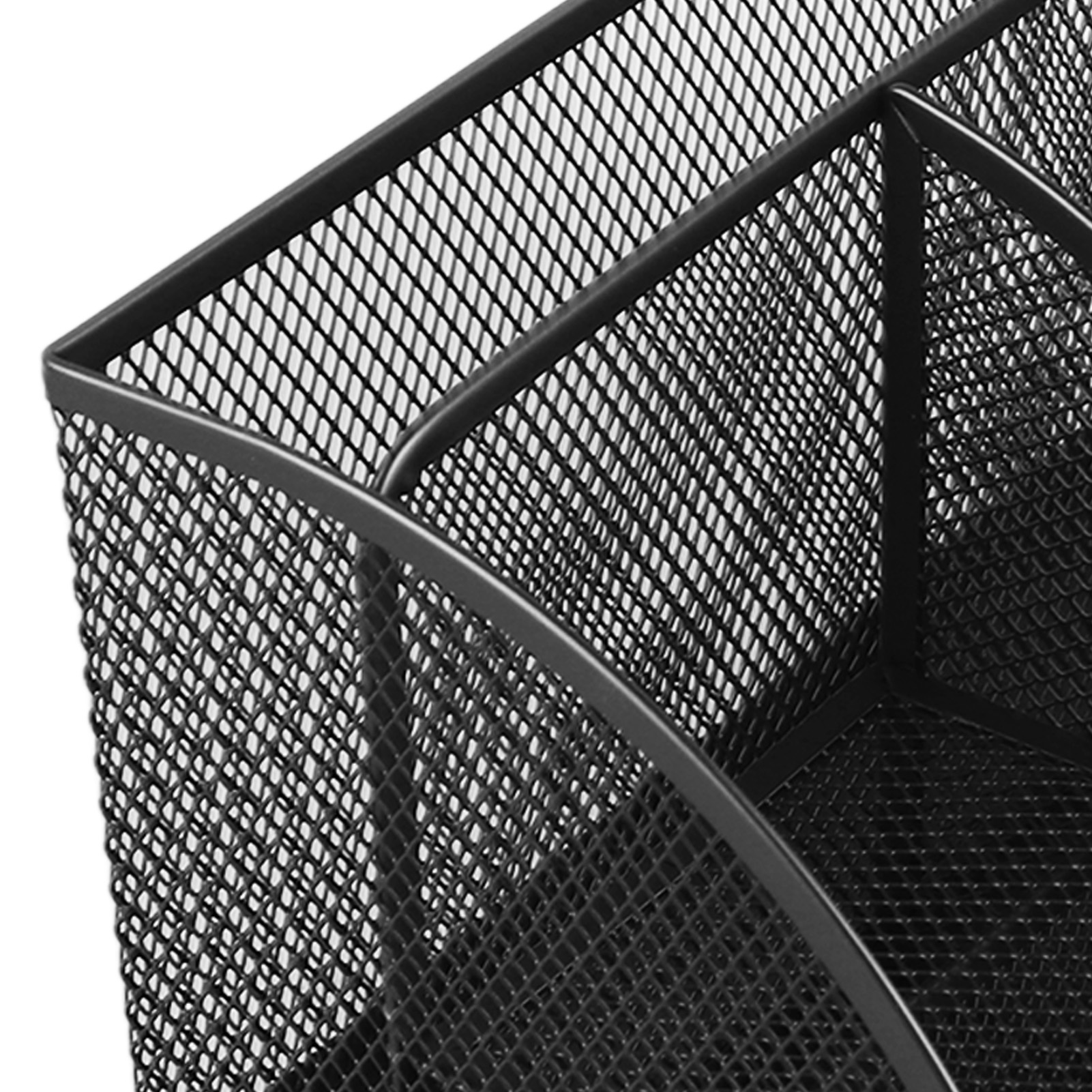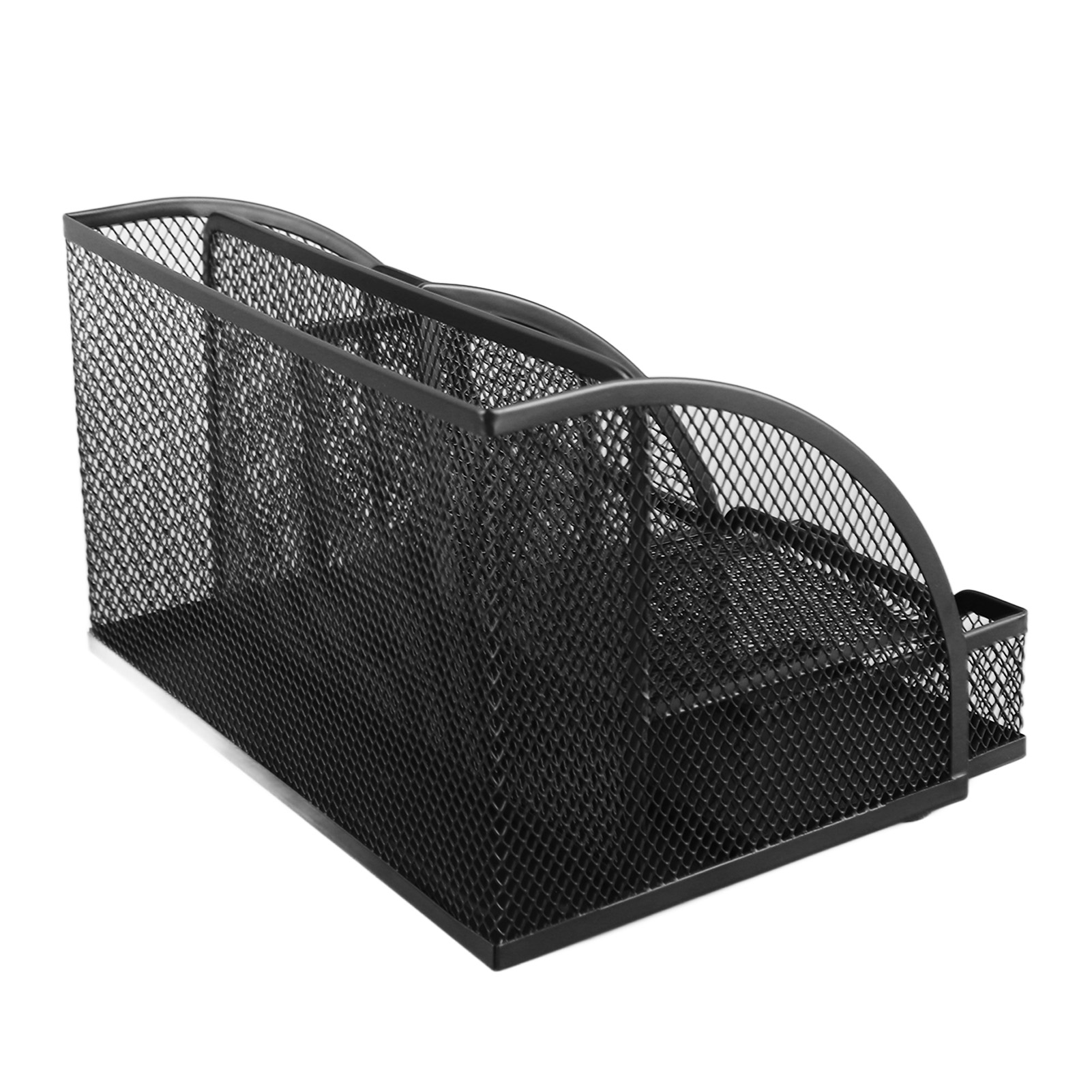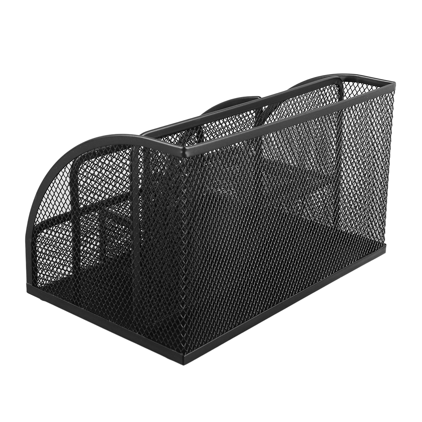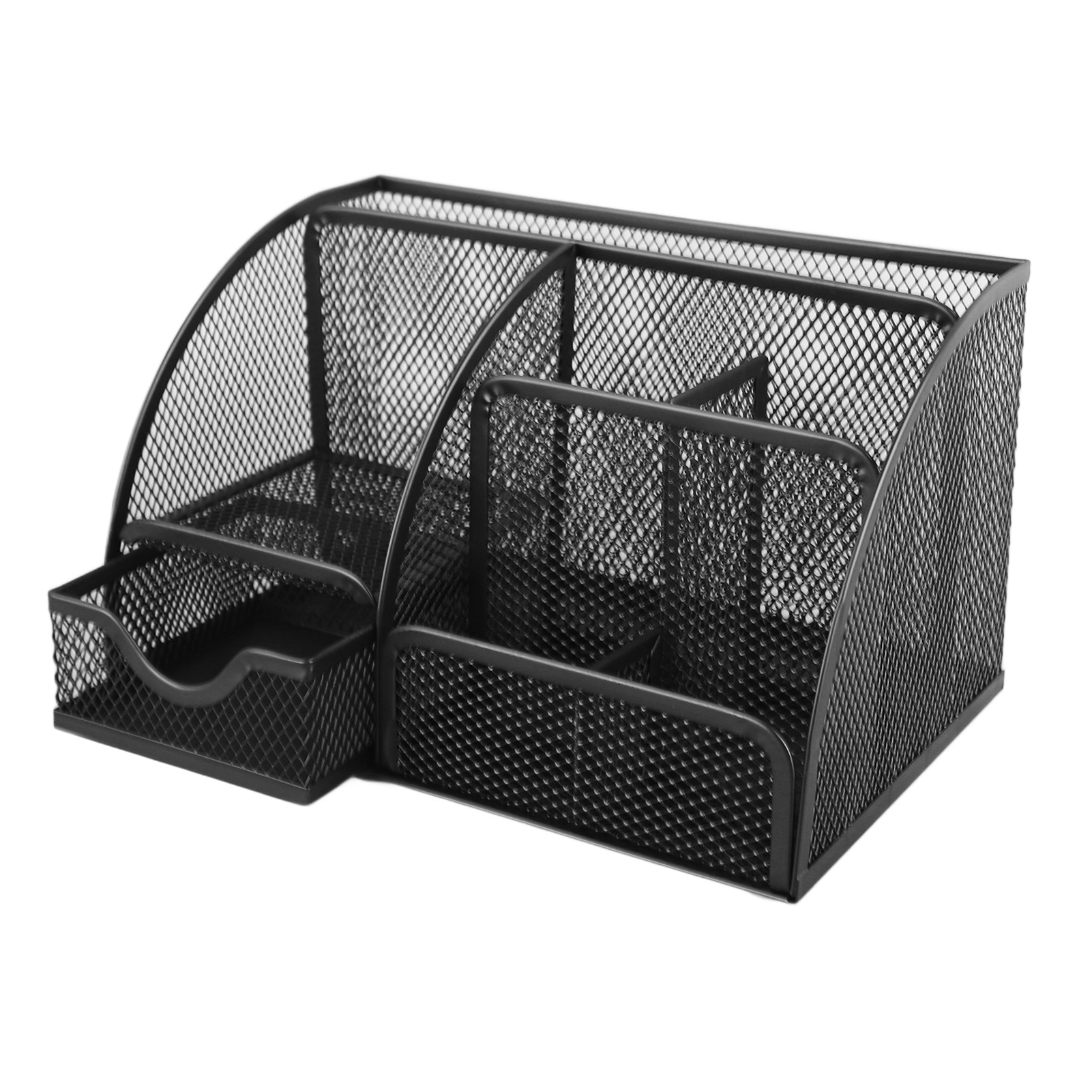 1、SPACE SAVING DESIGN: This desktop organizer is great for storing pens, pencils, markers, erasers, rulers, scissors, paper clips, thumb studs, rubber bands, tape, sticky notes, cards, and gadgets 2、DURABLE AND SMOOTH: The desk storage rack is made of sturdy mesh metal with a sturdy base. The smooth ABS coating and rounded edges make it extremely attractive 3、NON SLIP BASE: The office supply tray has four cushioned bottoms to protect your desktop from scratches 4、BEAUTIFUL WITHOUT DEFORMATION: Mesh office desktop organizer has mesh hollowing, ventilation and dry, easy to clean, simple and beautiful, stable and not easy to deform 5、ROUNDED CORNERS: 7 compartments office pen holder use rounded corners to avoid body scratches and durable