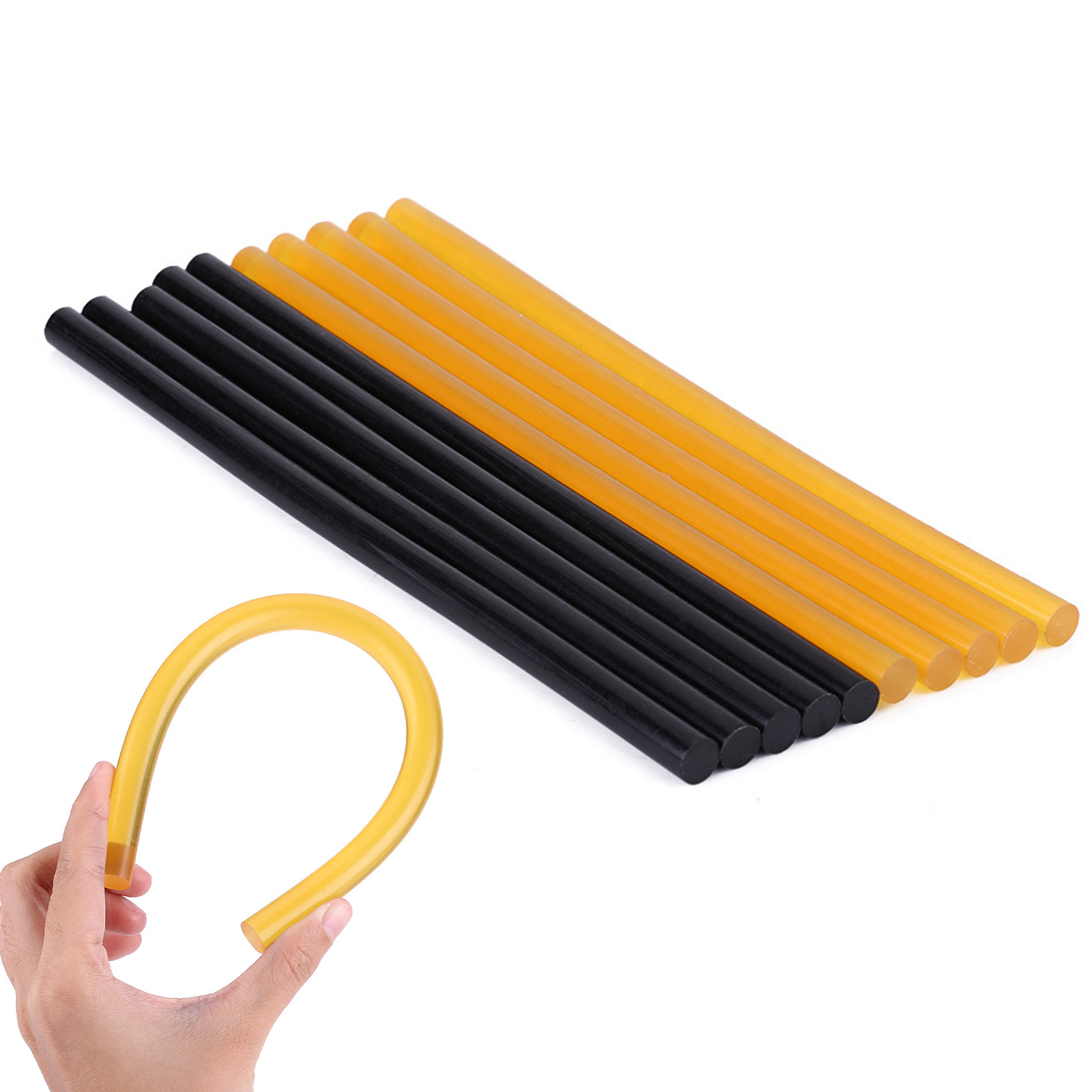 1、A set of 10 pieces hot melt glue sticks including 5 yellow color sticks and 5 black color sticks 2、Made of high quality material, it is resilient, flexible and very durable 3、High viscosity, not easy to fall off 4、Can be used with car dent repair hot melt glue gun for good dent or ding repair effect 5、Used for dent repair, drawing, jade base adhesive, handicraft production, wood, metal, plastic, etc