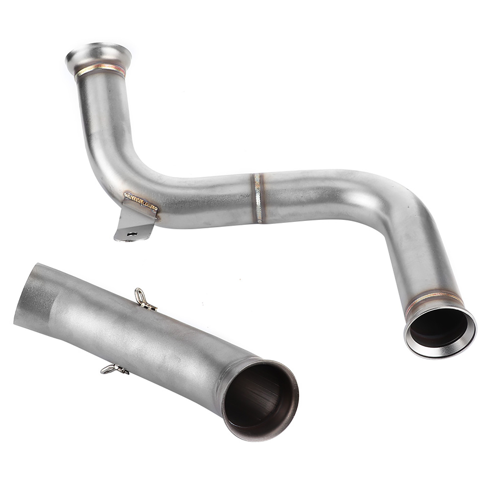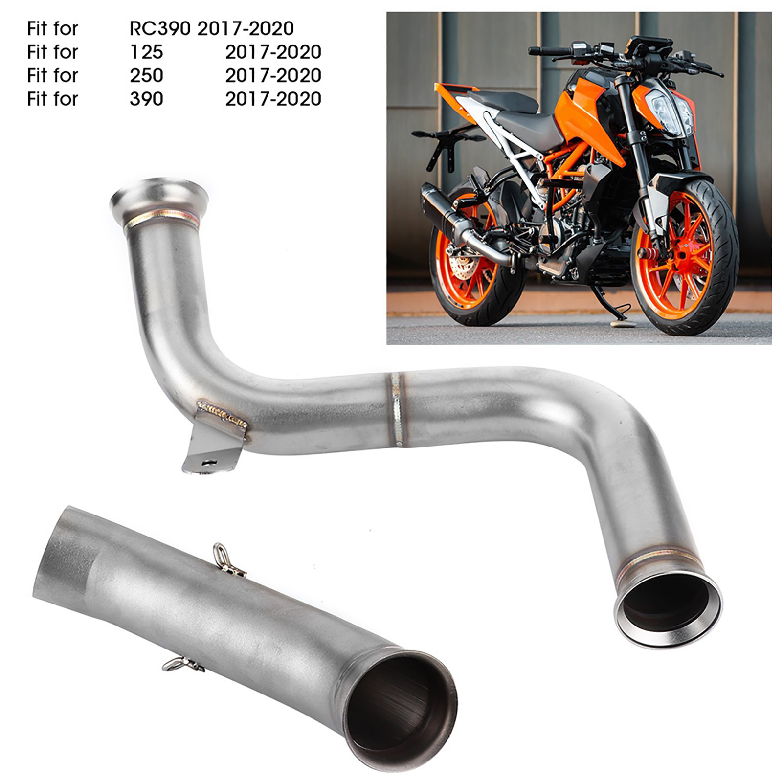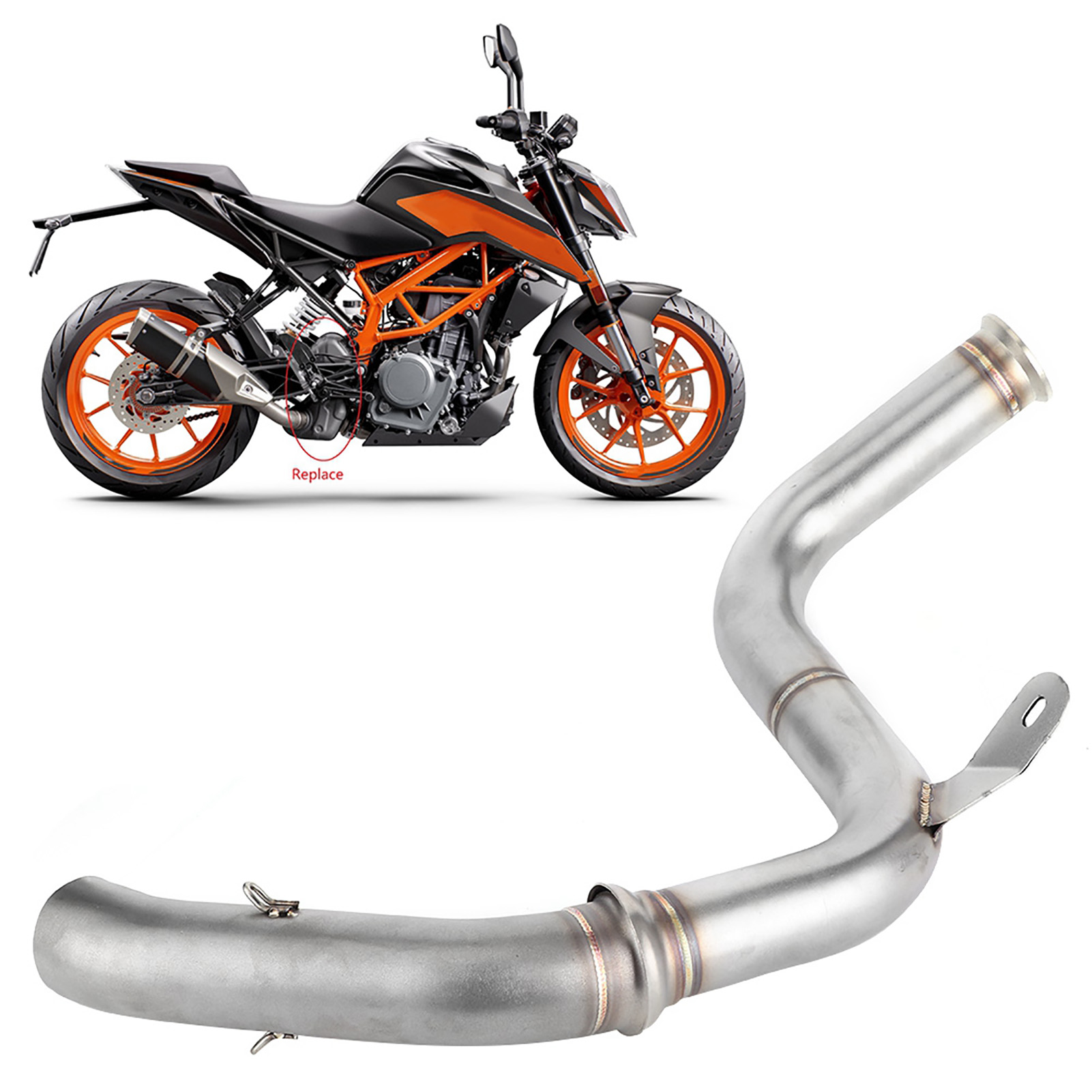 1、De‑cat Performance Mid Pipe replaces both the primary and secondary catalytic converters to create a free flowing exhaust. 2、Directly replace the old mid pipe, fit for 125 250 390 RC390 2017+. Compatible with the all brand 51mm/2in slip‑on muffler. 3、Premium 304 stainless steel material with a thickness of 0.04in, glossy, heat and high temperature resistant, long durability. 4、Reduces heat and increase air flow, performance De‑cat pipe weighs 770g/1.7lbs, original primary and secondary weigh 4.01kg, saving 3.24kg/7.1lbs weight in the catalytic section. Gain anywhere from 5 to 6HP, get the sound and performance by adding this midpipe. 5、No need of modifications. (re-mapping, power commander). Lambda sensor (O2 sensor) is located on the original front pipe which is retained and used with this upgrade.