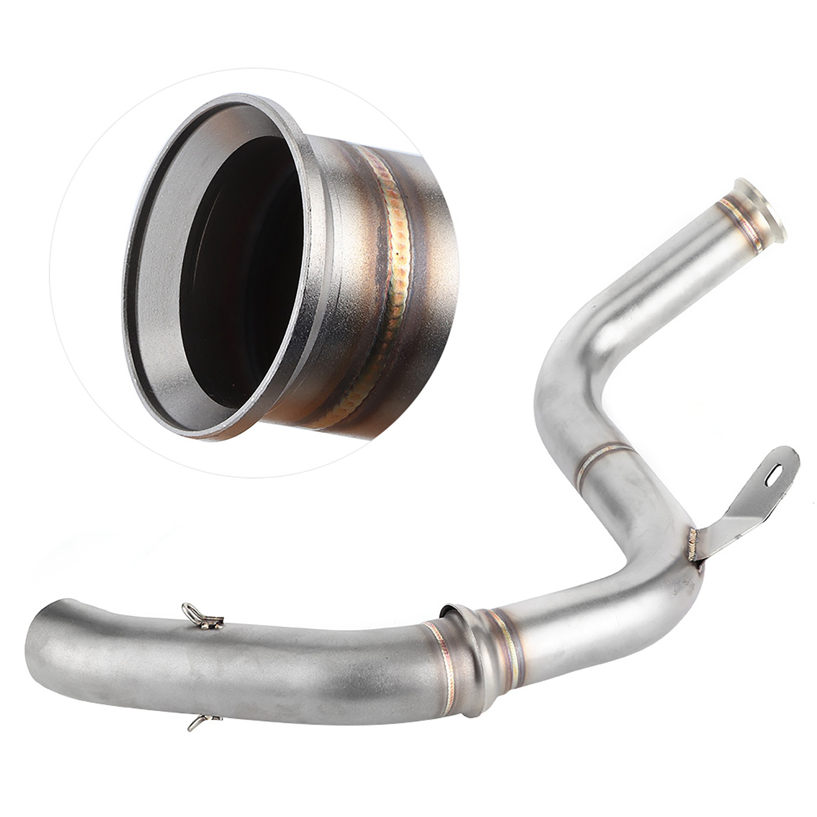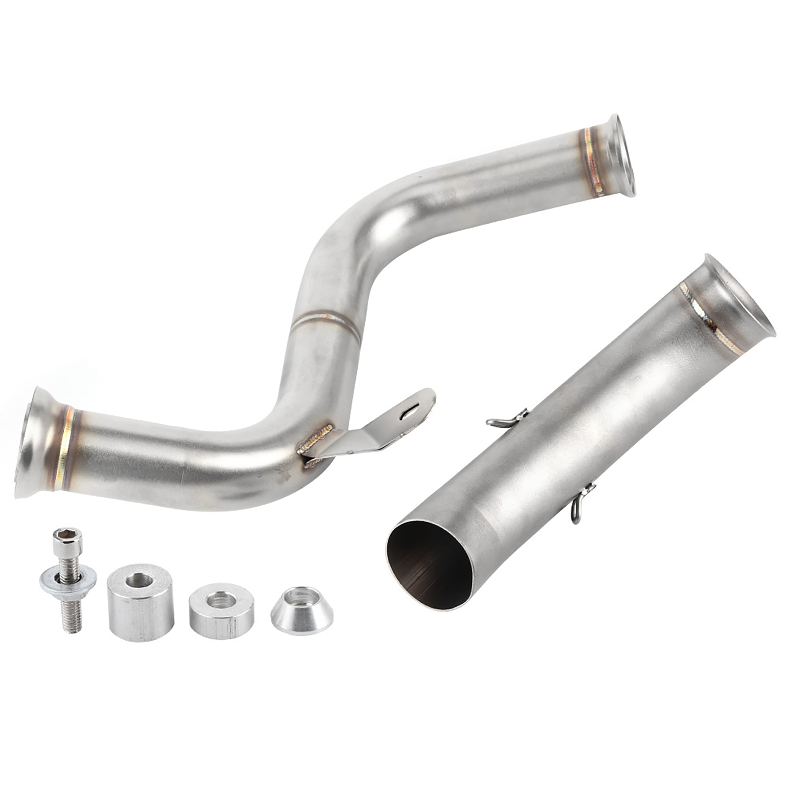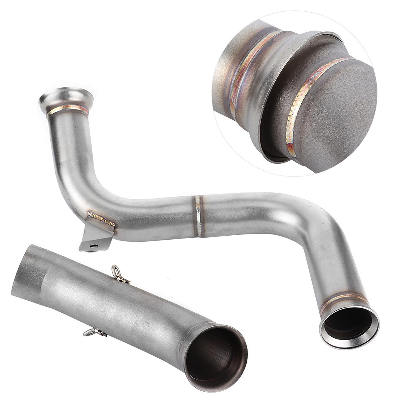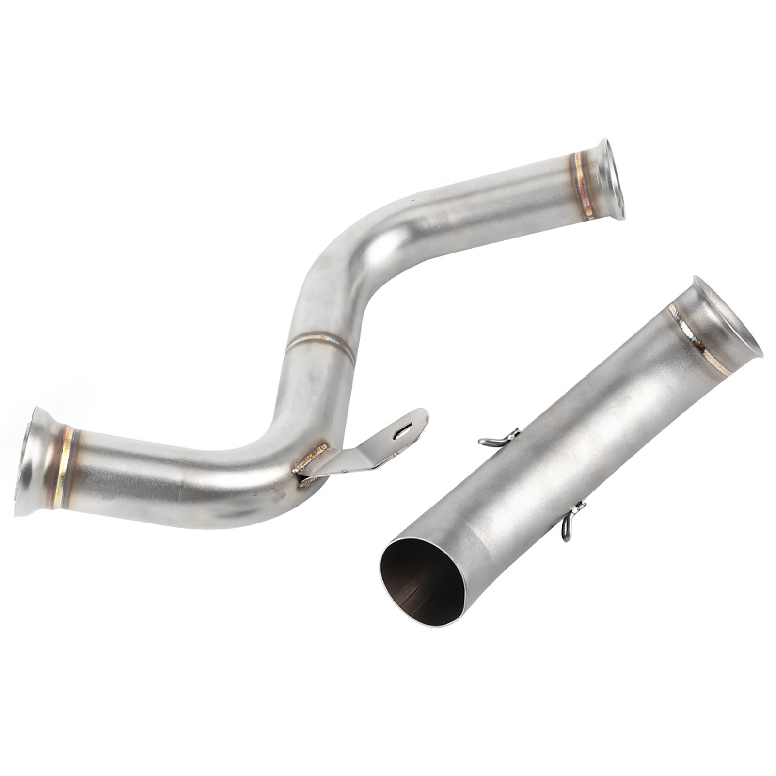 1、De‑cat Performance Mid Pipe replaces both the primary and secondary catalytic converters to create a free flowing exhaust. 2、Directly replace the old mid pipe, fit for 125 250 390 RC390 2017+. Compatible with the all brand 51mm/2in slip‑on muffler. 3、Premium 304 stainless steel material with a thickness of 0.04in, glossy, heat and high temperature resistant, long durability. 4、Reduces heat and increase air flow, performance De‑cat pipe weighs 770g/1.7lbs, original primary and secondary weigh 4.01kg, saving 3.24kg/7.1lbs weight in the catalytic section. Gain anywhere from 5 to 6HP, get the sound and performance by adding this midpipe. 5、No need of modifications. (re-mapping, power commander). Lambda sensor (O2 sensor) is located on the original front pipe which is retained and used with this upgrade.