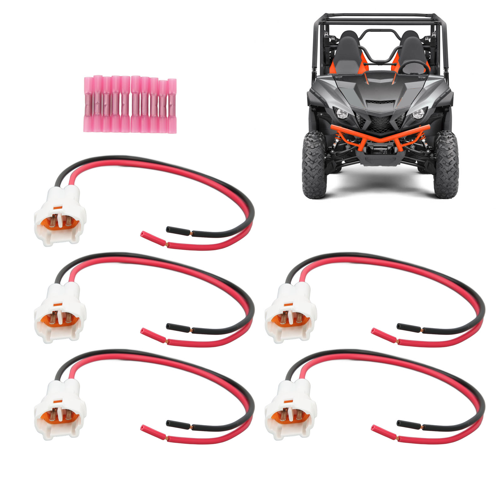 1、Fitment: Fit for Wolverine RMAX2 RMAX4 (all models) 2021; Fit for Wolverine 850 X4 X2 (all models) 2018‑2021; Fit for Wolverine 708 (all models). 2、Replacing OEM Number: B4J H25B0 V0 00 is the reference part number. Please double check the part number of your item to ensure perfect fit. 3、Function: The accessory power lead kit wires your preferred accessories to the unit's pre wired switched 12V DC power couplers which are located under the dash of for wolverine models. 4、Premium Material: Made of premium ABS plastic housing, this power lead harness is fire retardant, high temperature resistant, not easy to break. 5、Kit Including: The package includes 5pcs power lead wire plugs and 10pcs heat shrink crimp connectors, you can use the kit with confidence.