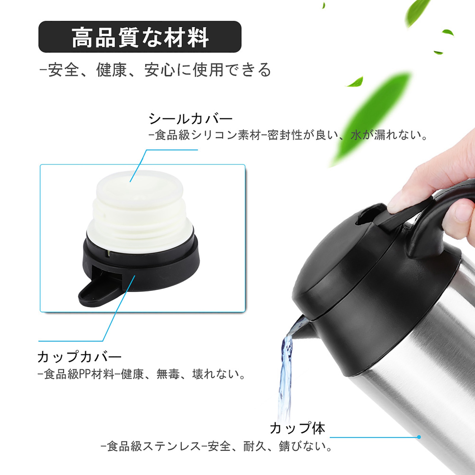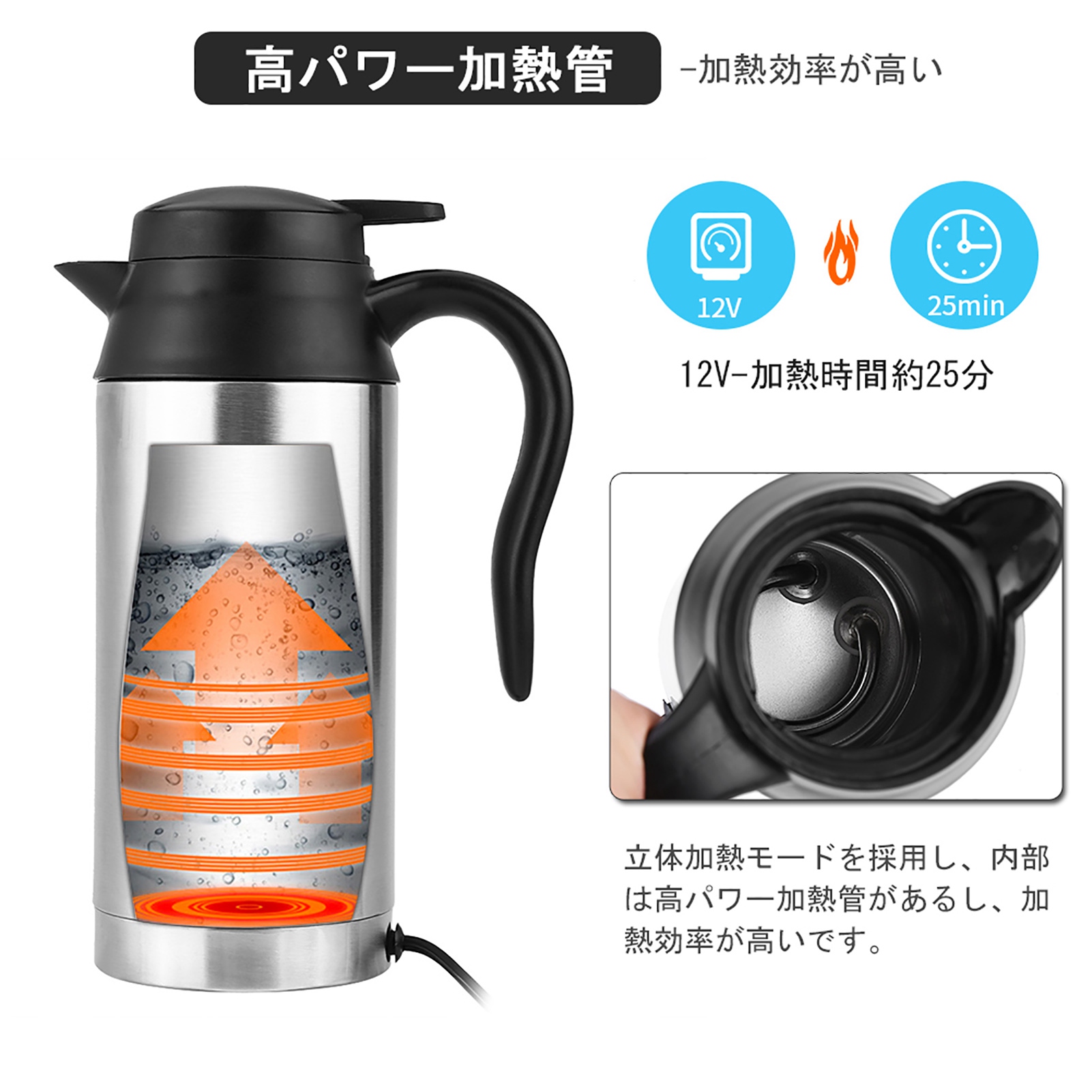 1、304 stainless steel and food grade PP material, safe to drink the boiled water. 2、Sealed kettle cover made by high quality silicon gel, safe and non‑toxic, good sealing performance to keep water warm, and ensures that the drink does not spill over. 3、Kettle inner and outer using insulation technology, good insulation effect to prevent burns. 4、Kettle has a indicator light, it will keep on red till the water boil, after water boiled, it will turn to green color to keep the water warn. 5、750ml capacity and fits most car cup holders, great for travel use.