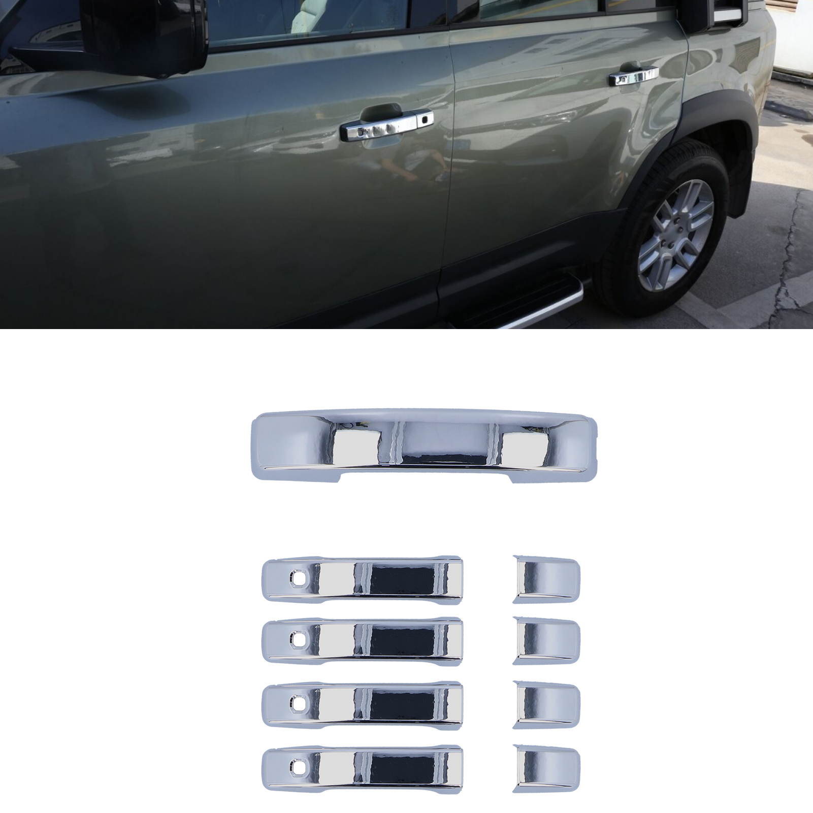 1、Stylish exterior door handle trims, perfectly fit for Land Rover Defender 2020‑2021. 2、Premium quality ABS material, anti‑yellowing and anti‑aging, sturdy and durable. 3、Simple installation, no damage to your car, easy to be attached and won't peel off. 4、Glossy appearance, stylish design, significantly enhances the car's style. 5、Protect the exterior handle from scratches and damages, reliable to use.