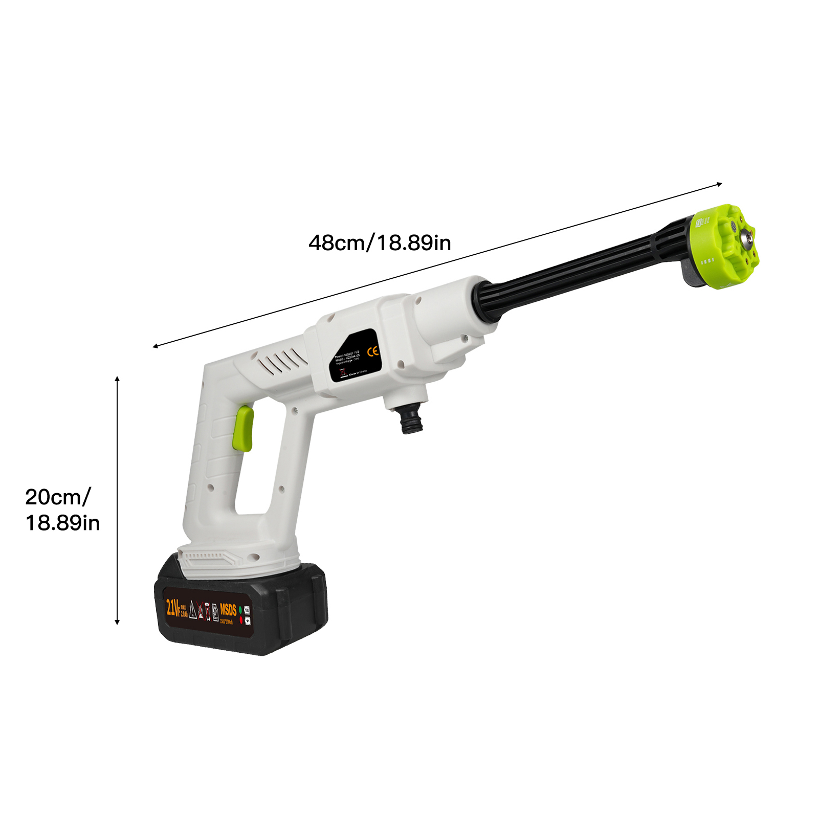 Large Capacity Battery: Premium-quality and professional car wash gun, designed to make your car cleaning experience easier and more efficient. With 2pcs powerful 21V and a capacity of 1500*10mah battery, the using time of pressure washer about (when in 0 ° mode)20-30 minutes/pcs; (In 45 ° mode)30-35 minutes/pcs, the package includes 2pcs battery, allowing you to wash your car without worrying about running out of battery.