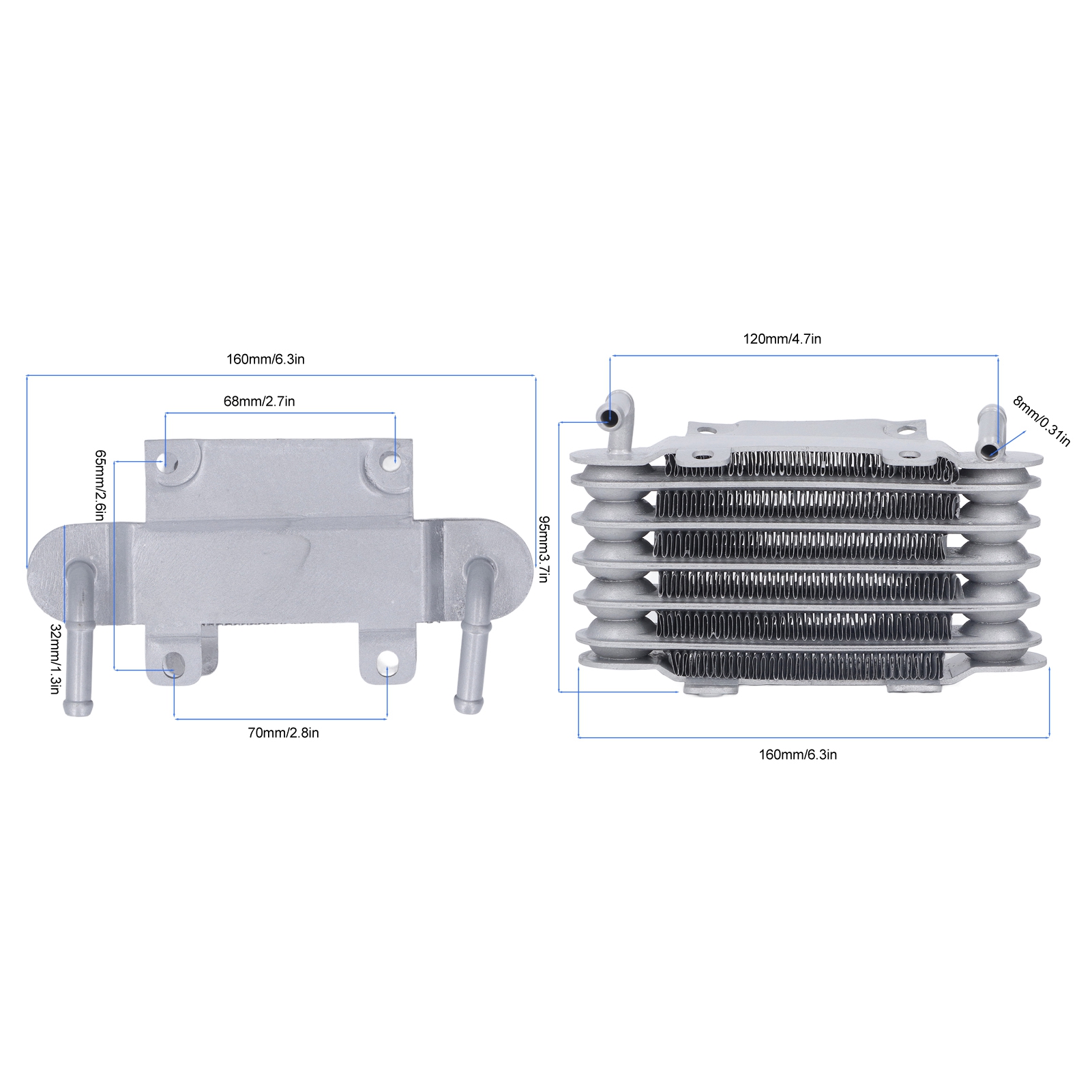 1、Wide Application: Aluminum engine oil cooler radiator is widely applicable to most motorcycles, dirt bike, pit bike 50CC‑250CC engine, allowing your vehicle to work more efficiently. 2、Powerful Function: The oil cooler is used to cool engine temperature, keep the engine in the normal working temperature range; reduce engine load and prolong its service time. 3、Excellent Performance: Motorcycle engine oil cooler is able to quickly cool engine oil, reduce engine wear and increase power, professional manufacturing for high performance. 4、Sturdy Construction: Motorcycle engine oil cooler radiator is exquisitely made from superior aluminum materials with high strength, not easy to deform, break or leak. 5、Simple Installation: Engine oil cooling radiator adopts the direct insertion mounting method, which is easy to install as long as the size is right, has a wide installation range.