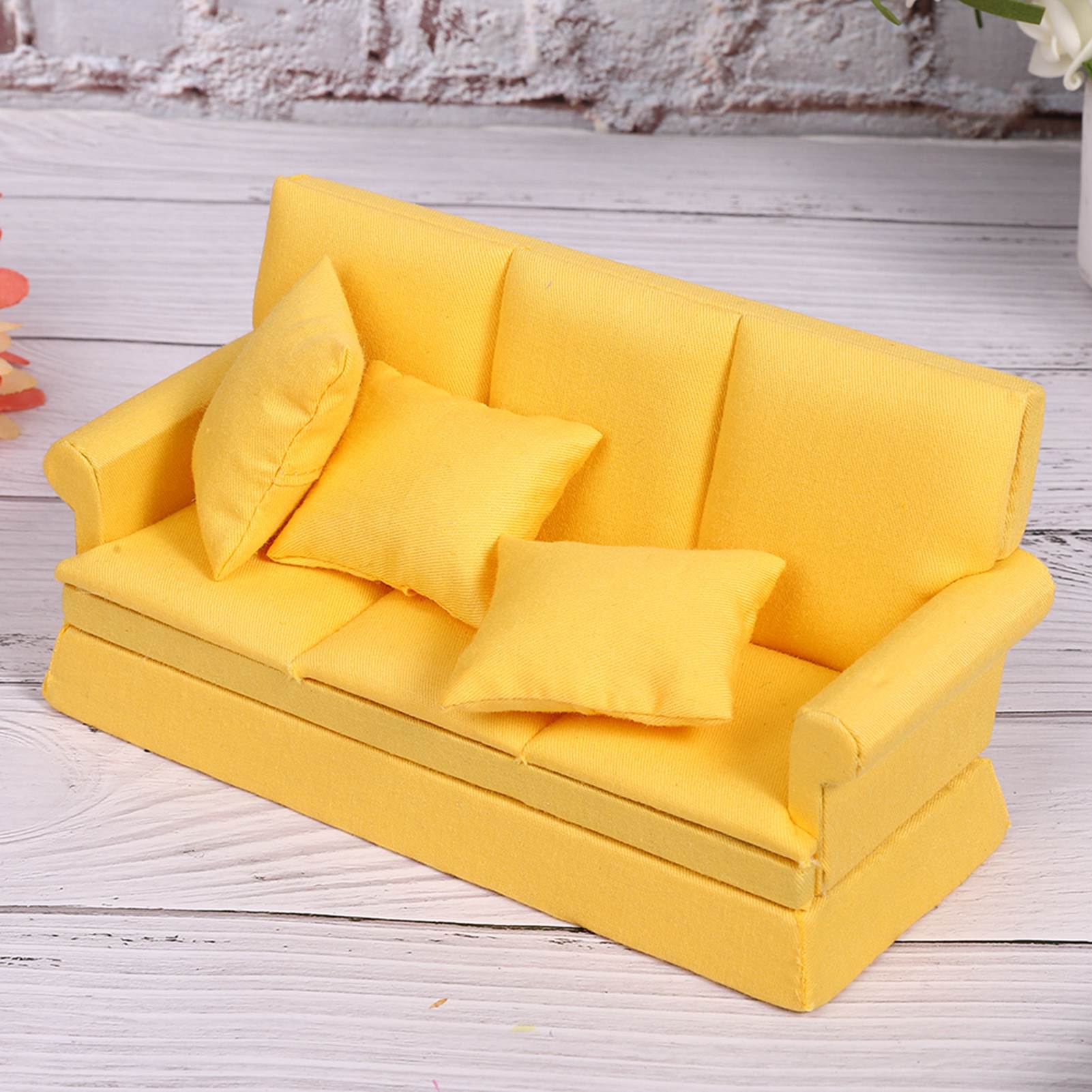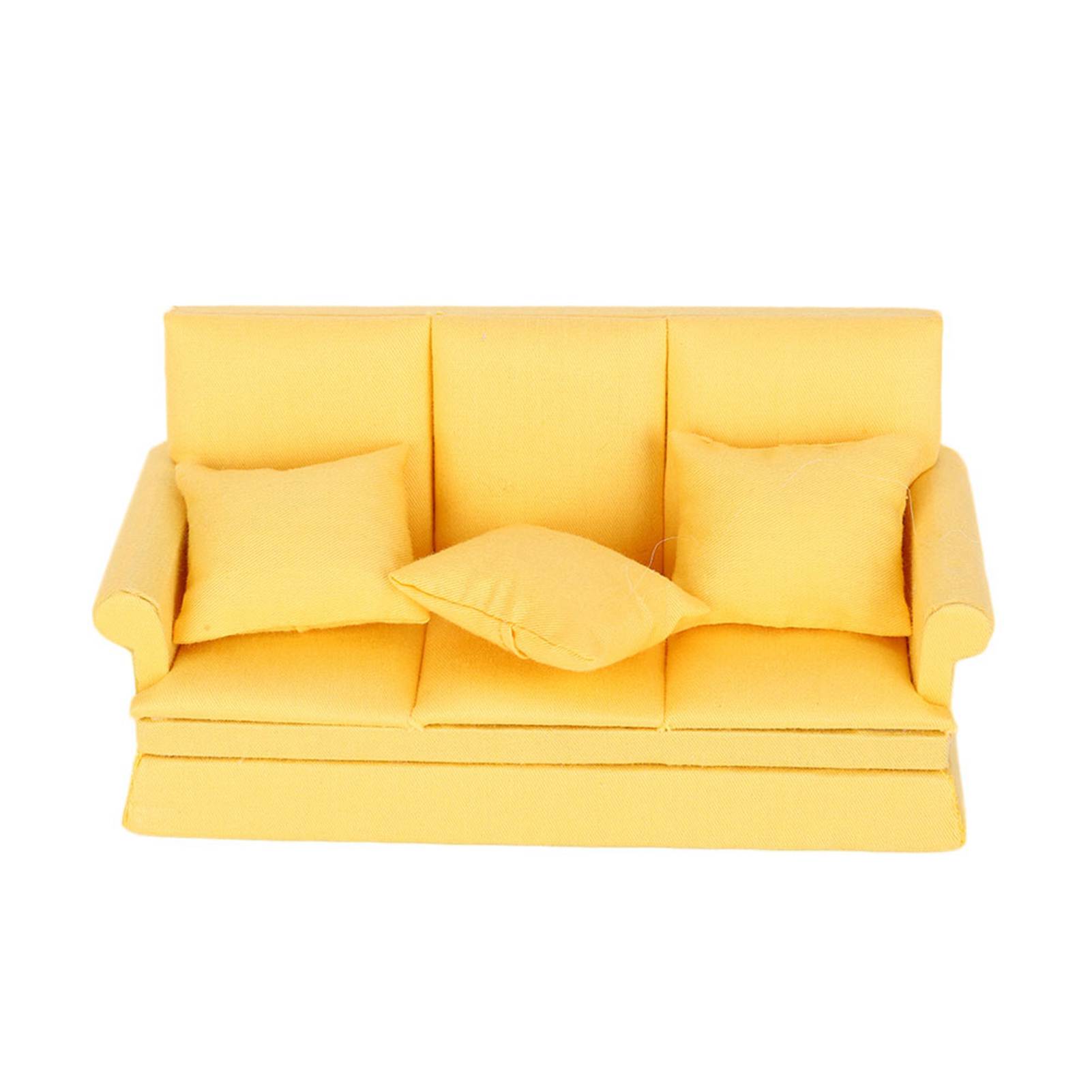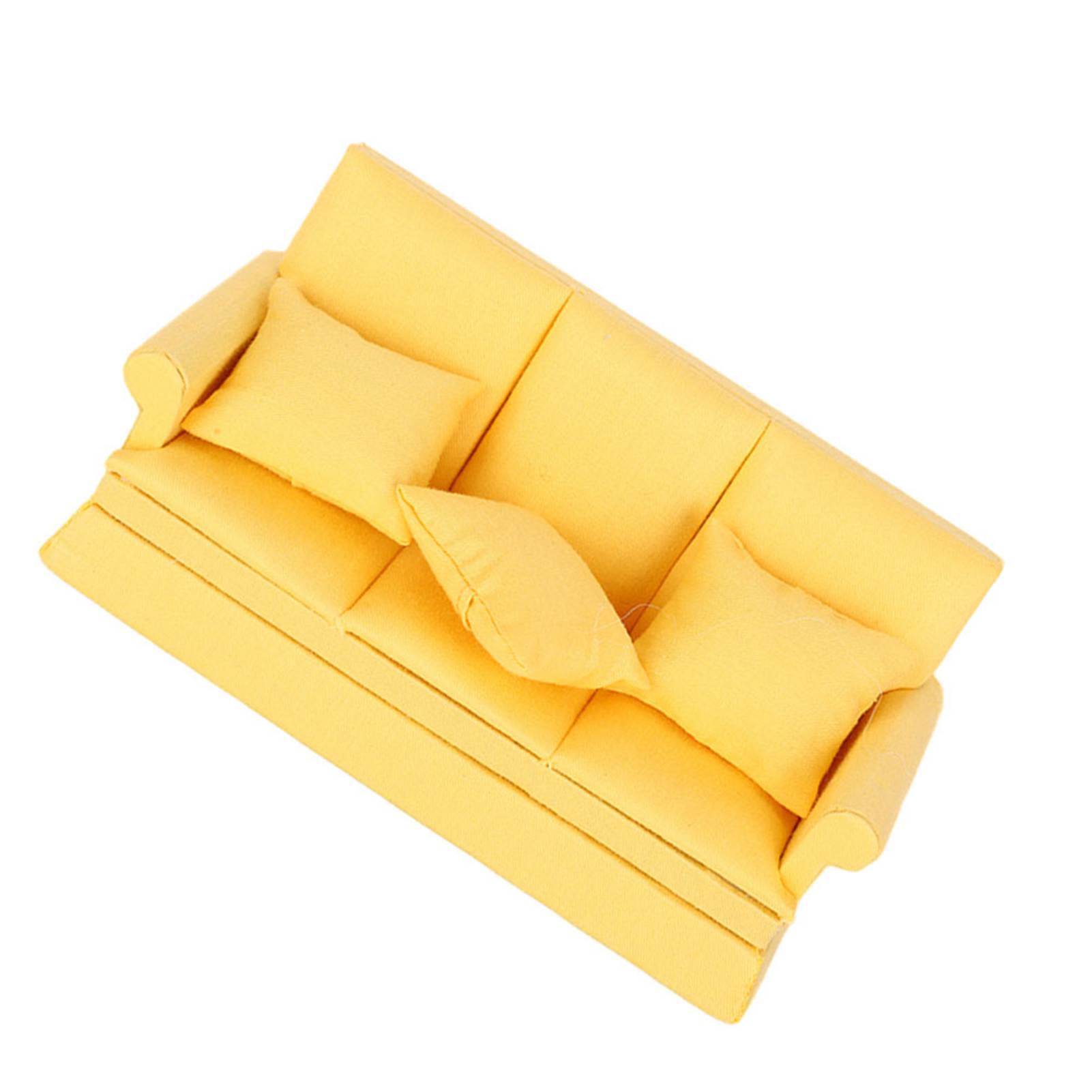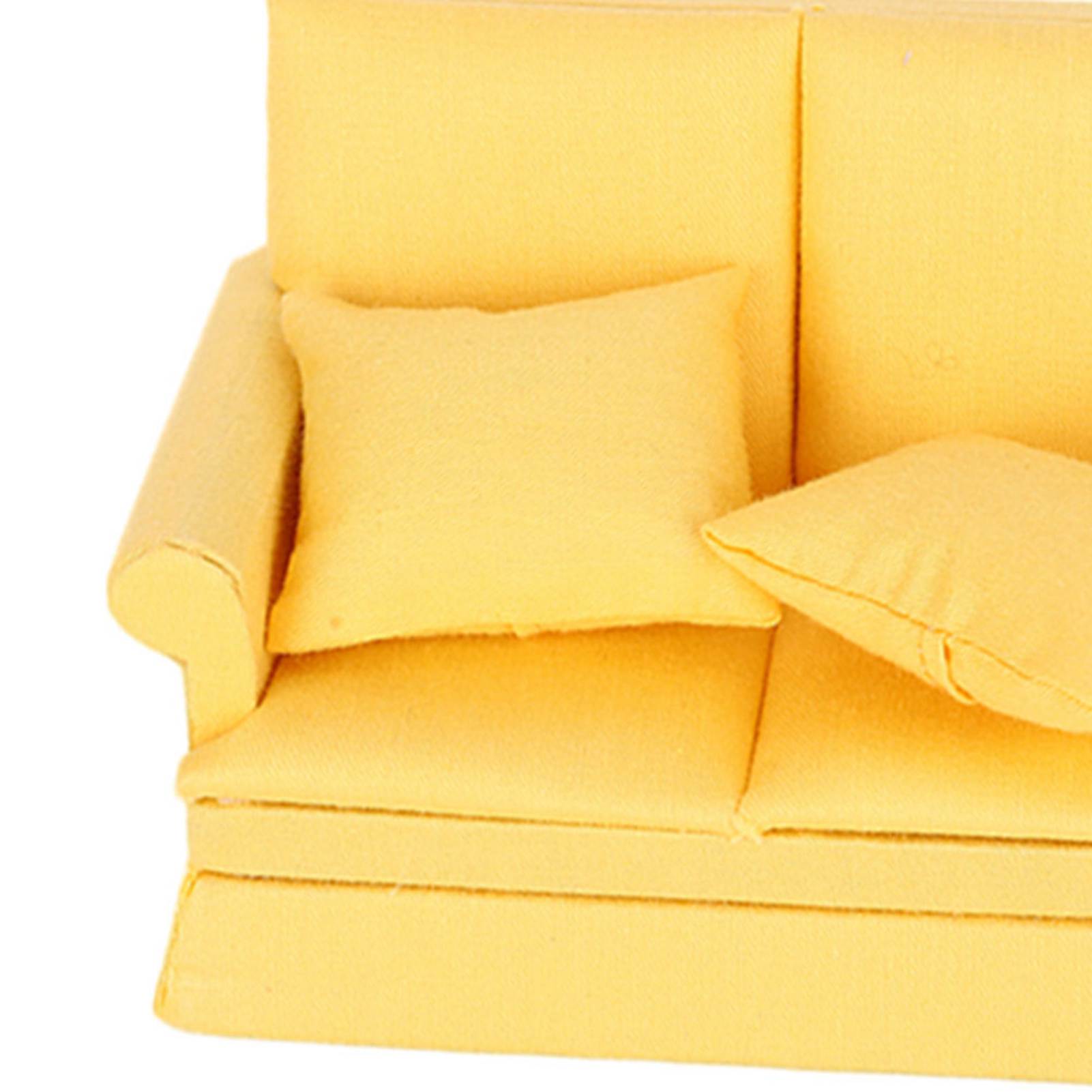 1:12 Doll House Mini Sofa with 3pcs Pillow Living Room Furniture Wooden Doll House Decoration AccessoriesYellow