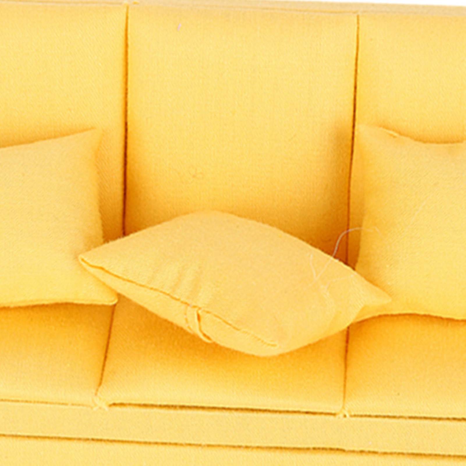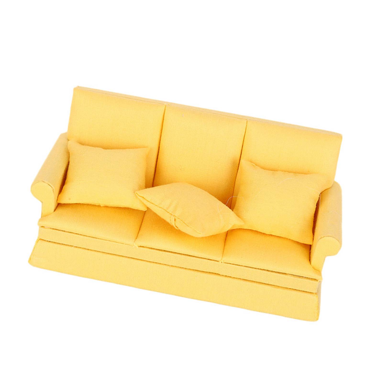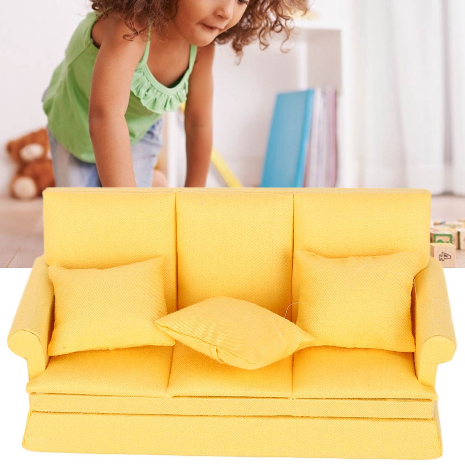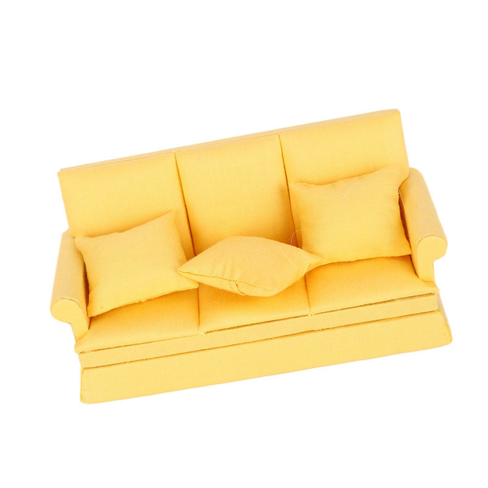 1:12 Doll House Mini Sofa with 3pcs Pillow Living Room Furniture Wooden Doll House Decoration AccessoriesYellow