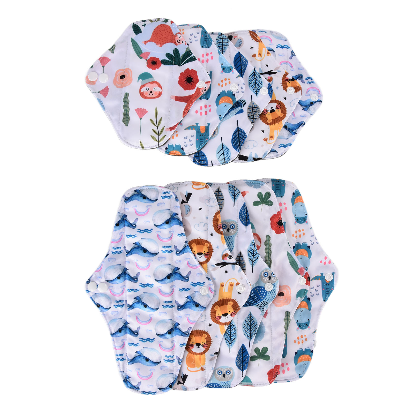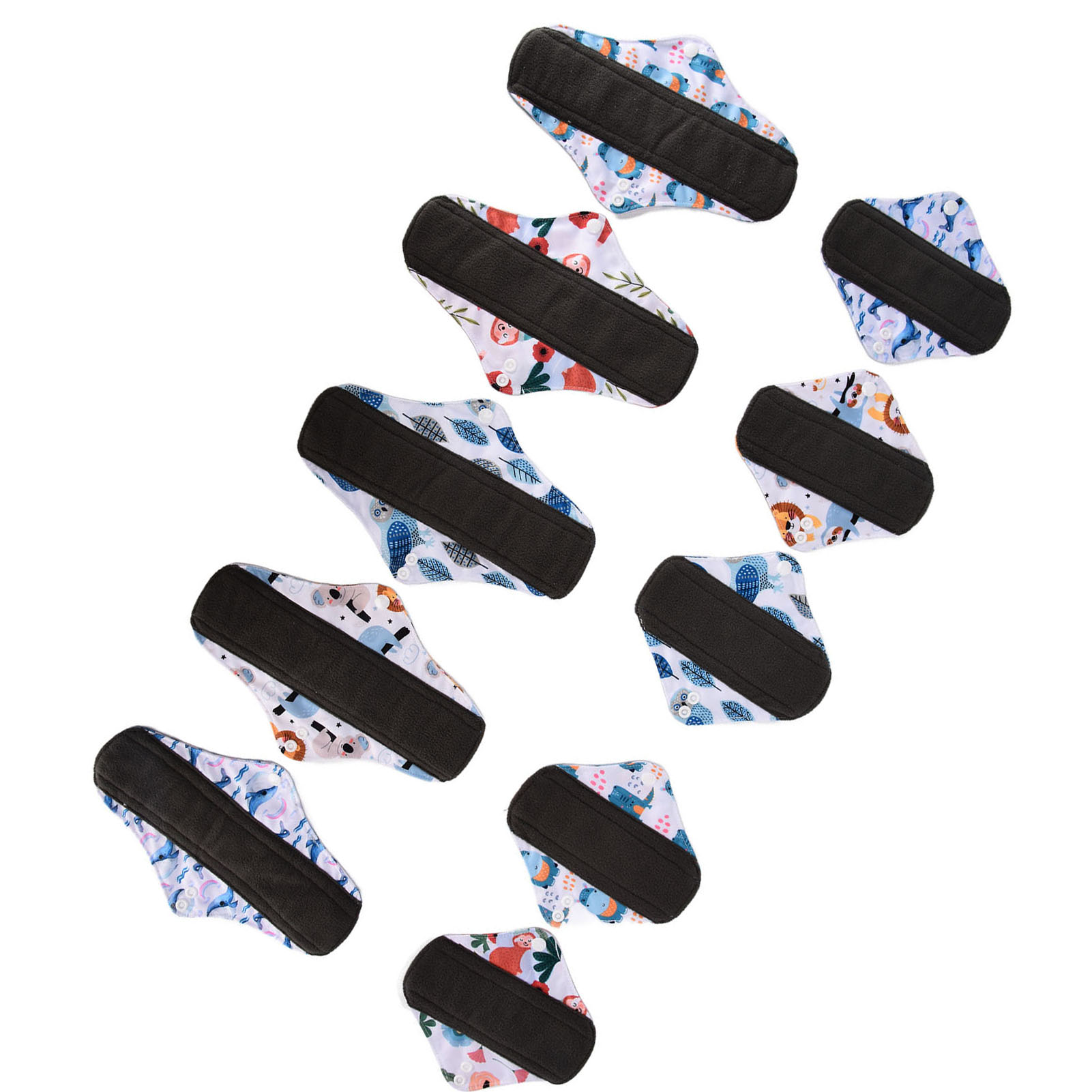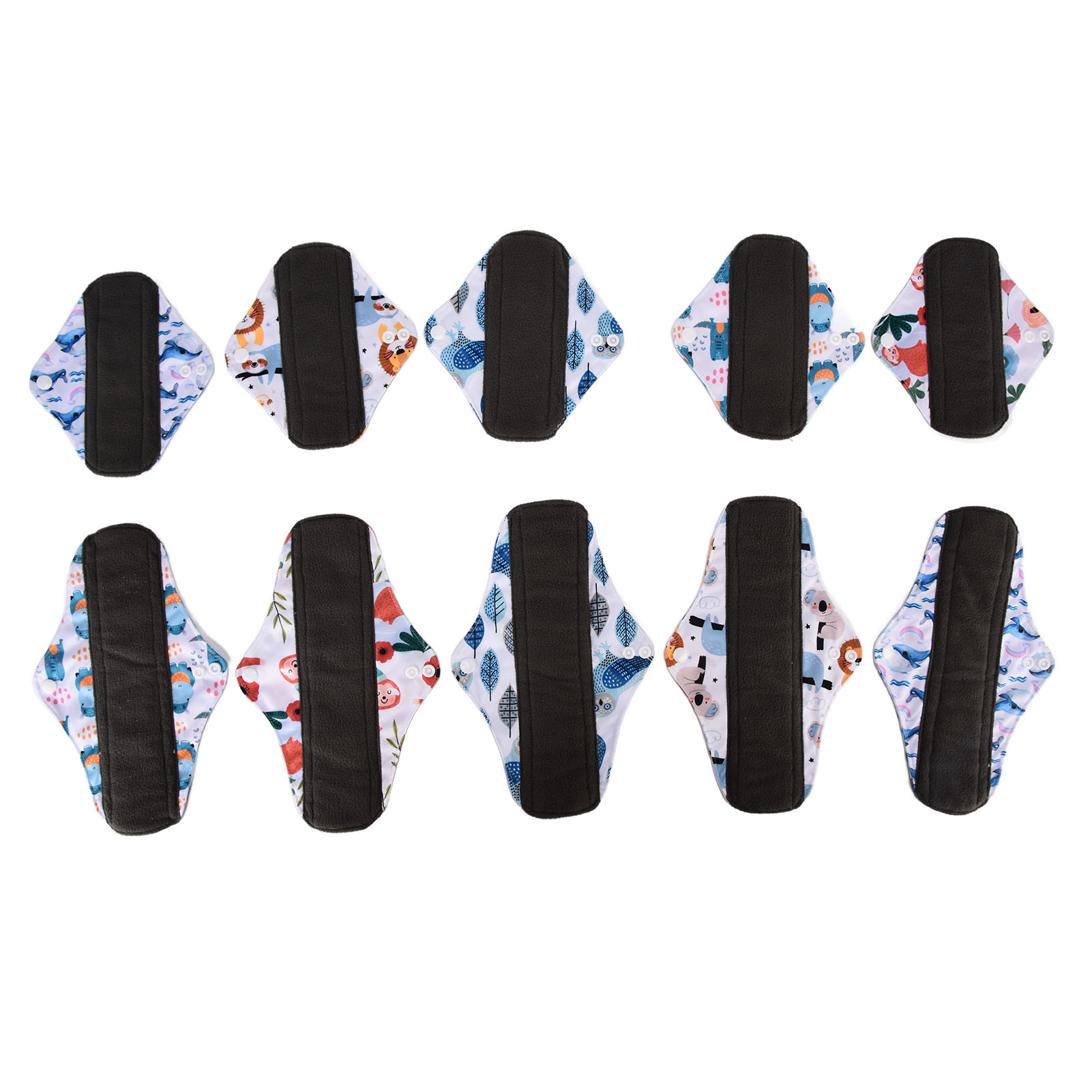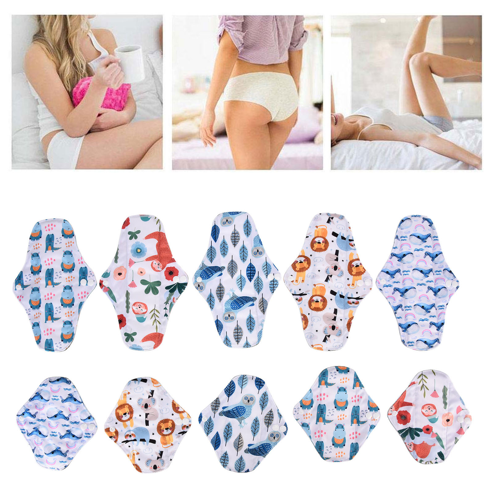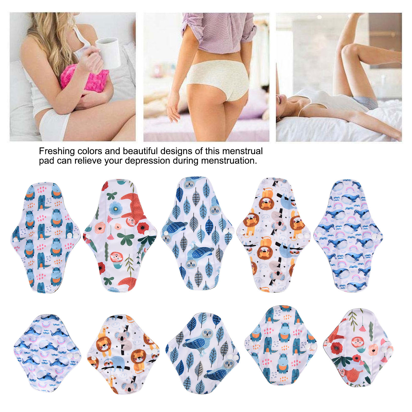 1、Our washable sanitary pad set includes 2 different sizes, which are suitable for all situations. 2、Bamboo carbon fiber with skin friendly properties, the middle layer is made of double layer water absorbing superfine fibers, and the outer layer is made of waterproof TPU material. 3、Freshing colors and beautiful designs of this menstrual pad can relieve your depression during menstruation. 4、There is a button on the side of this menstrual pad to fix the cushion so that the cushion will not move easily. 5、The sealing edge of this reusable menstrual pad can effectively prevent leakage, and is easy to use and rest assured.