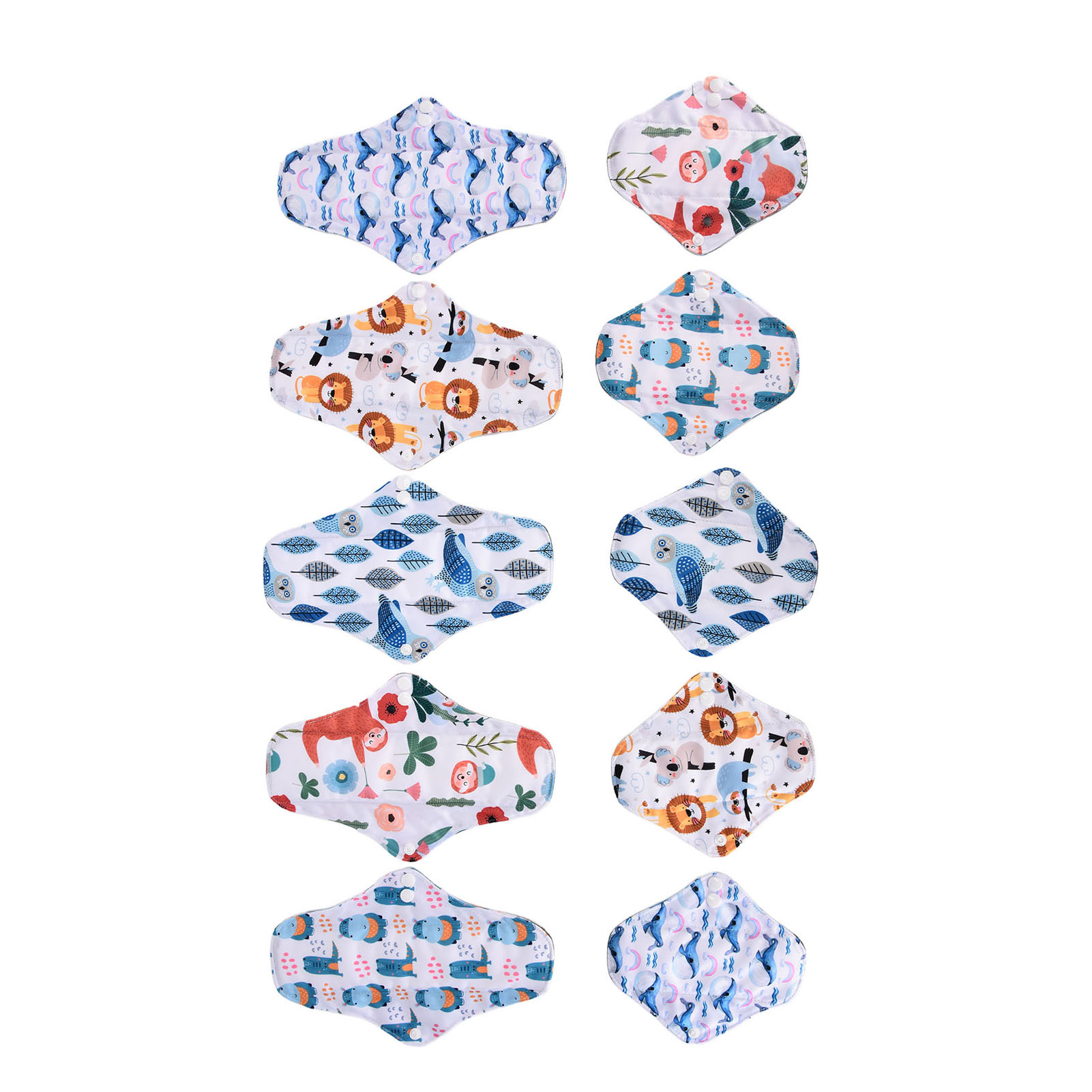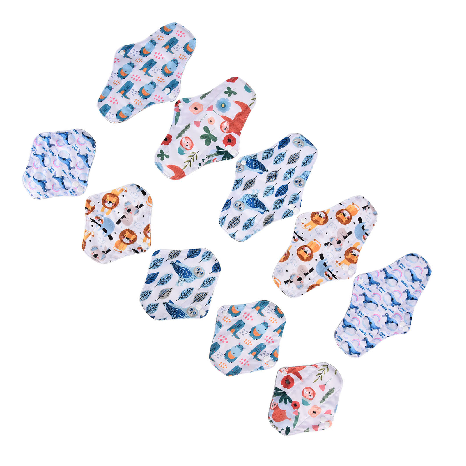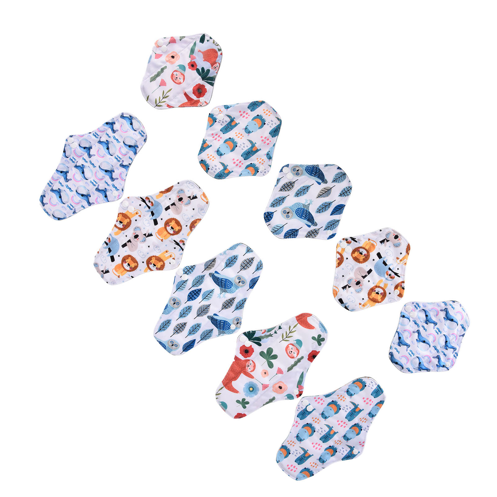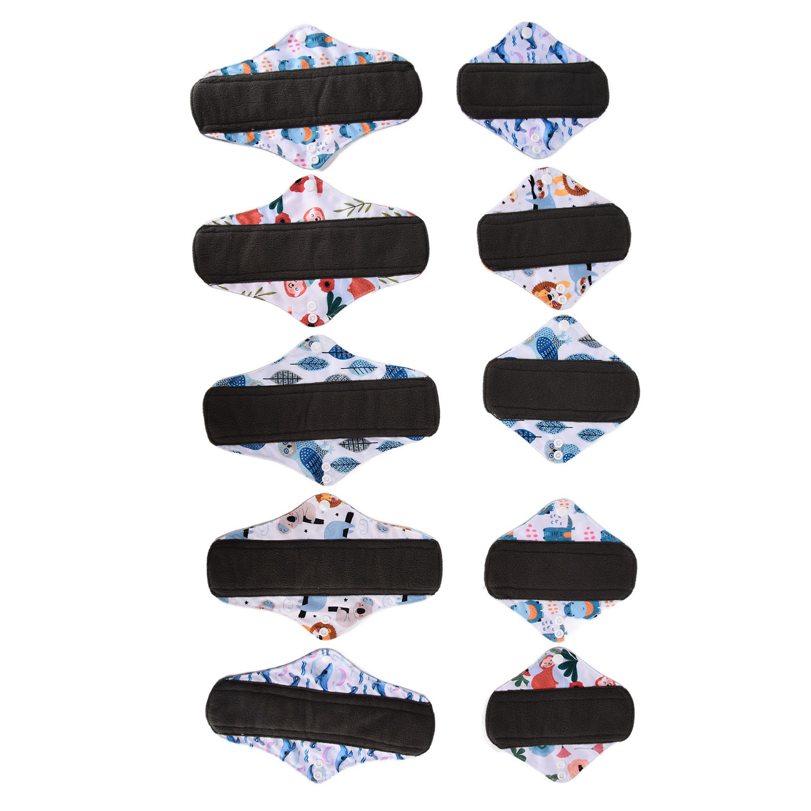 1、Our washable sanitary pad set includes 2 different sizes, which are suitable for all situations. 2、Bamboo carbon fiber with skin friendly properties, the middle layer is made of double layer water absorbing superfine fibers, and the outer layer is made of waterproof TPU material. 3、Freshing colors and beautiful designs of this menstrual pad can relieve your depression during menstruation. 4、There is a button on the side of this menstrual pad to fix the cushion so that the cushion will not move easily. 5、The sealing edge of this reusable menstrual pad can effectively prevent leakage, and is easy to use and rest assured.
