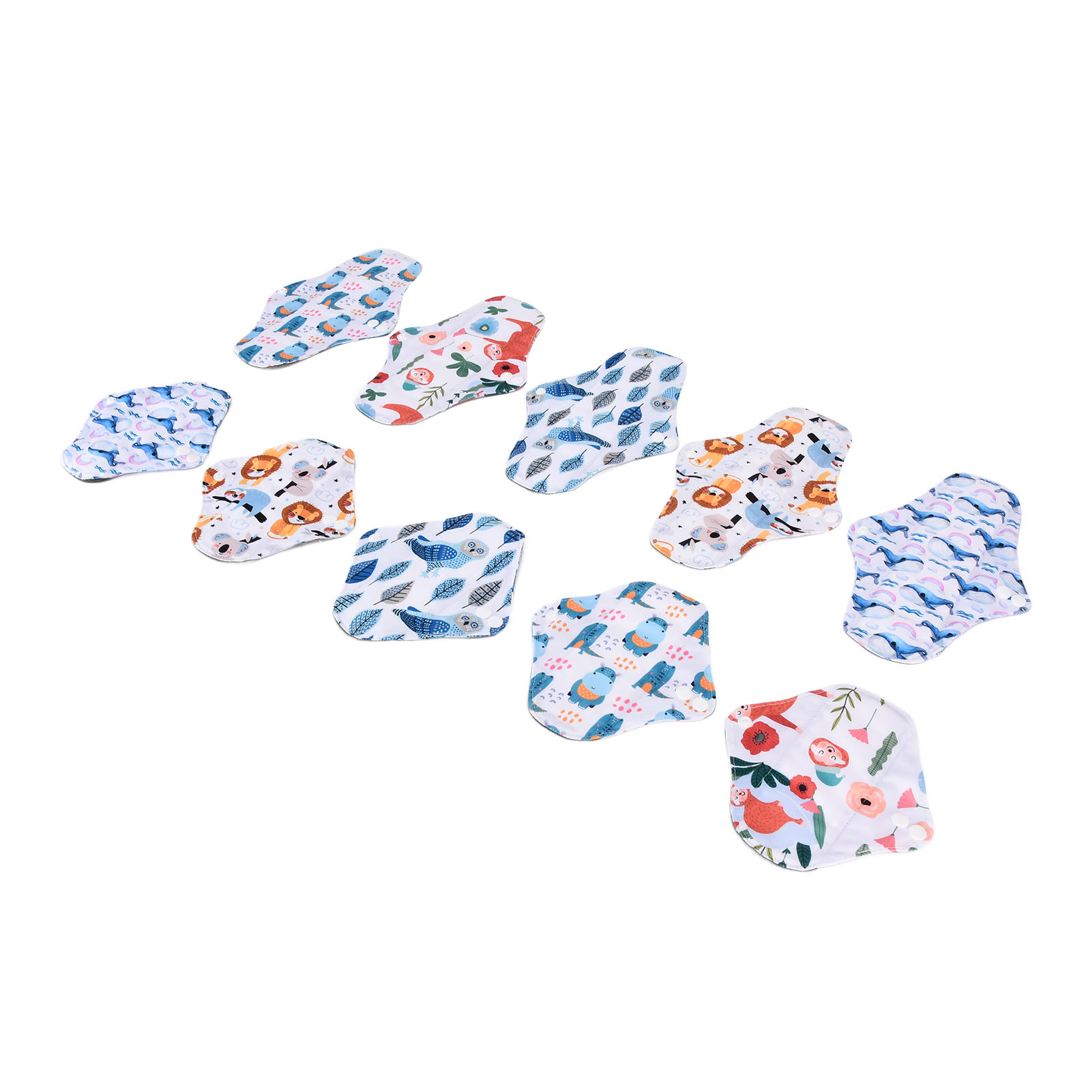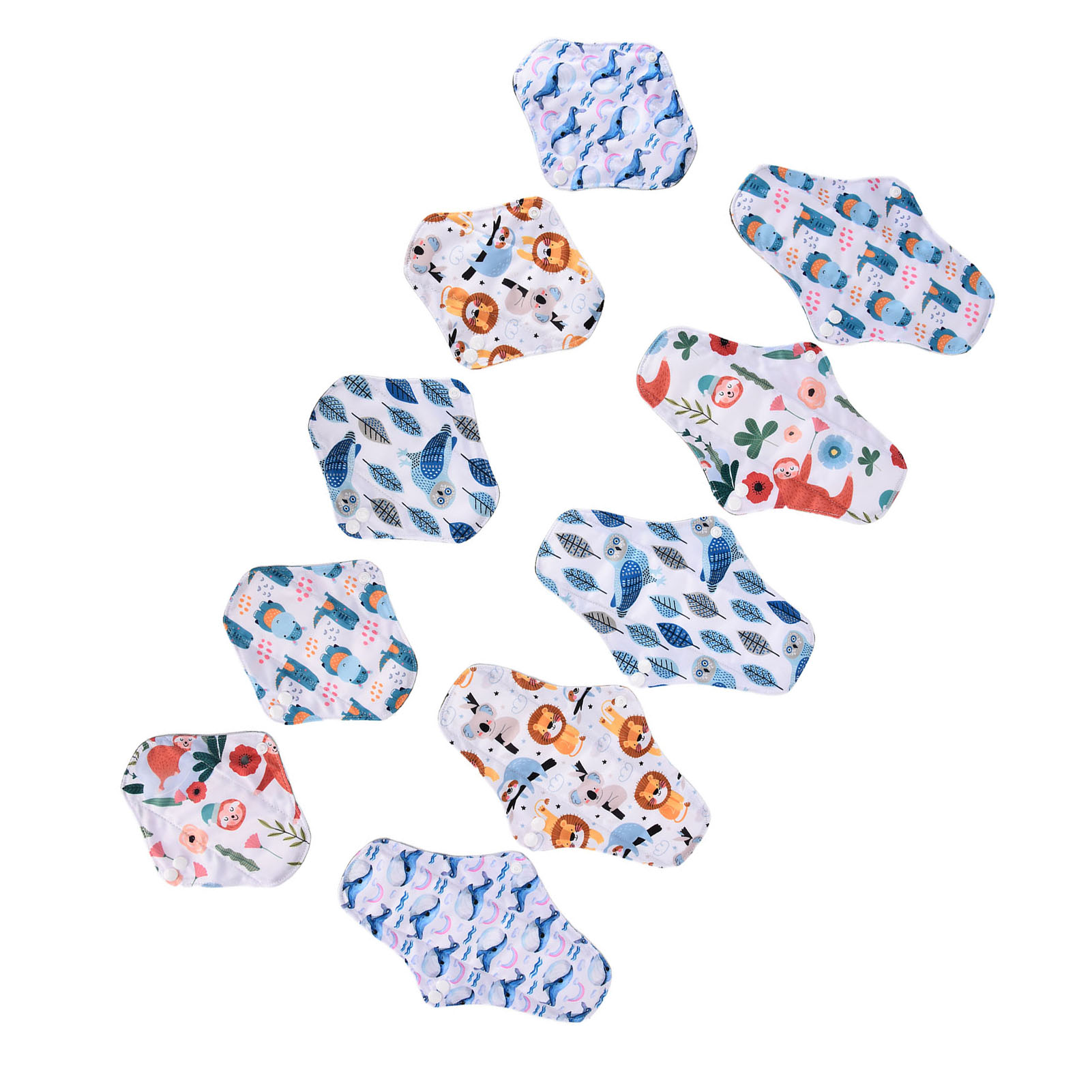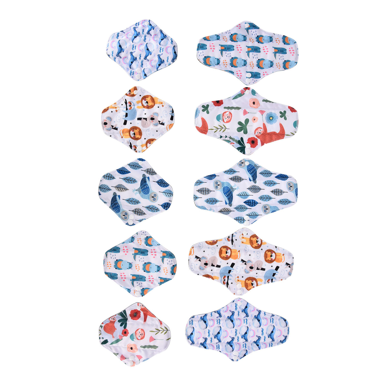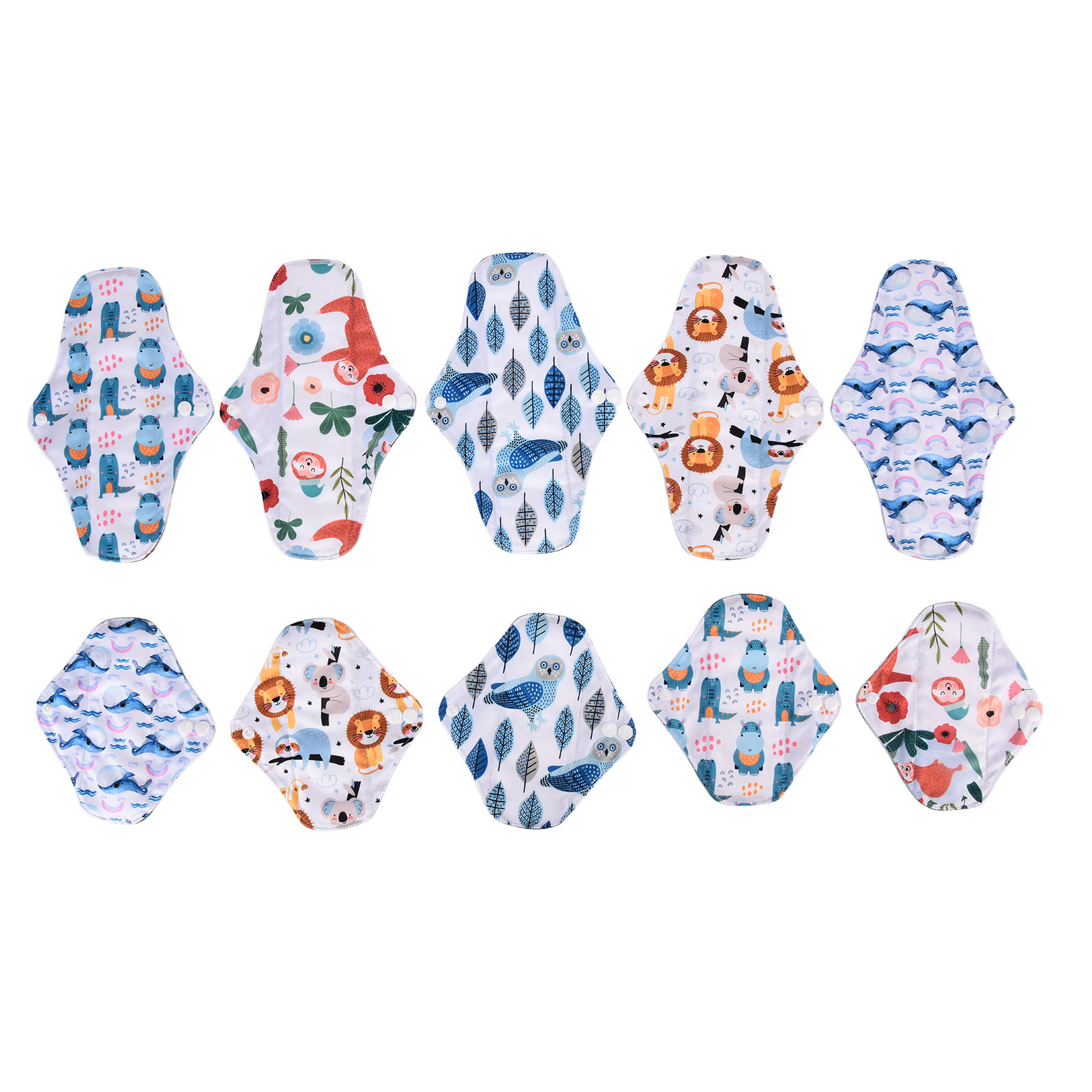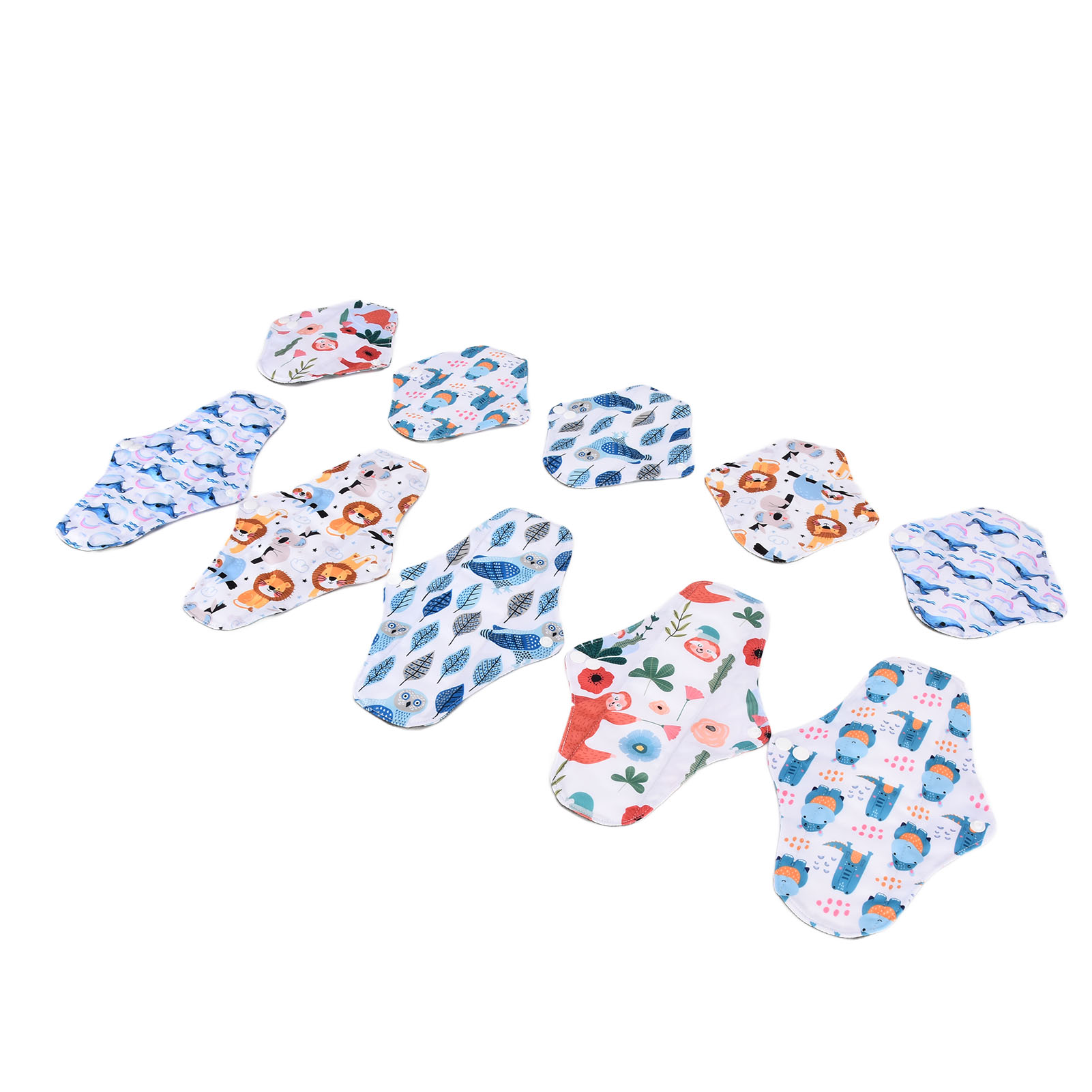 1、Our washable sanitary pad set includes 2 different sizes, which are suitable for all situations. 2、Bamboo carbon fiber with skin friendly properties, the middle layer is made of double layer water absorbing superfine fibers, and the outer layer is made of waterproof TPU material. 3、Freshing colors and beautiful designs of this menstrual pad can relieve your depression during menstruation. 4、There is a button on the side of this menstrual pad to fix the cushion so that the cushion will not move easily. 5、The sealing edge of this reusable menstrual pad can effectively prevent leakage, and is easy to use and rest assured.