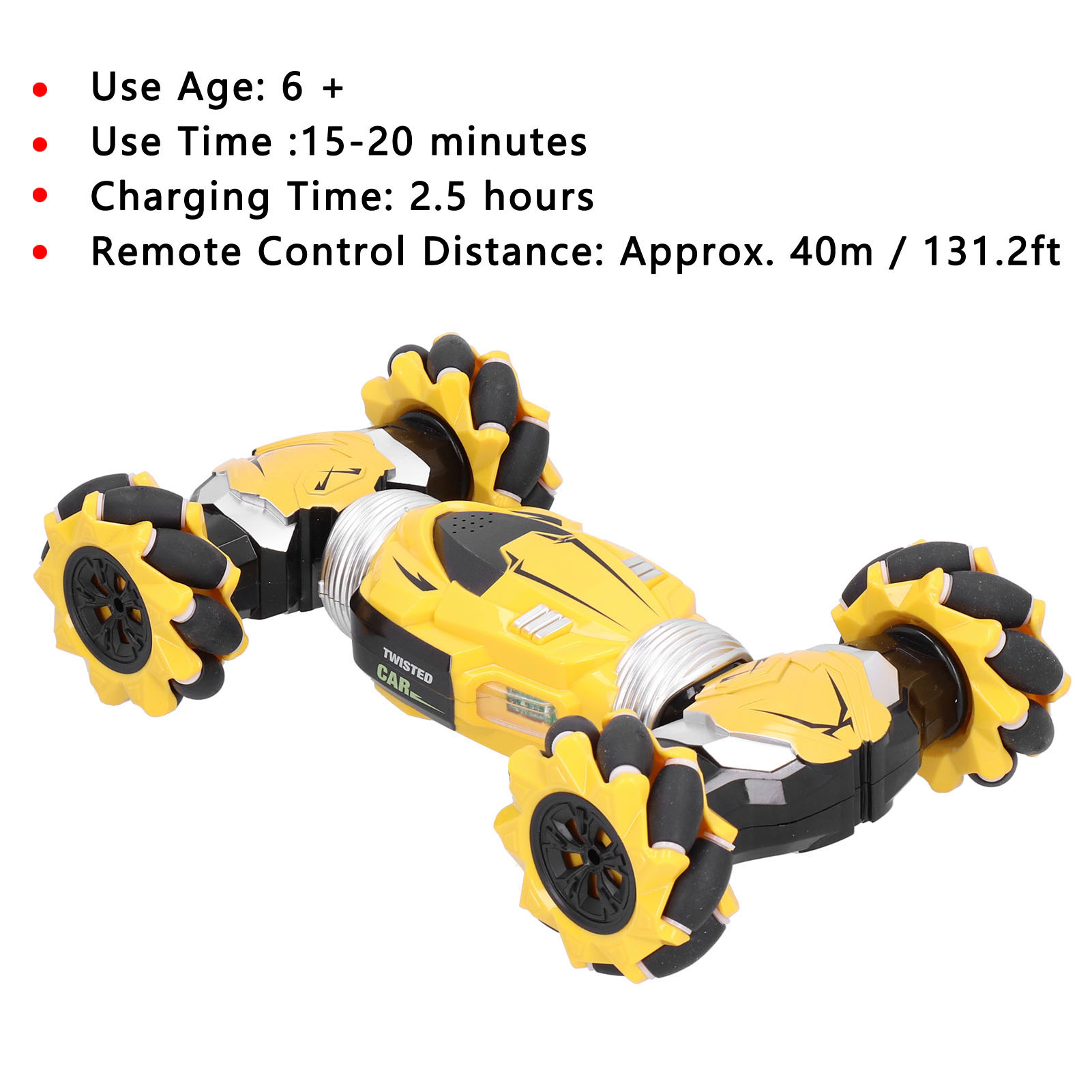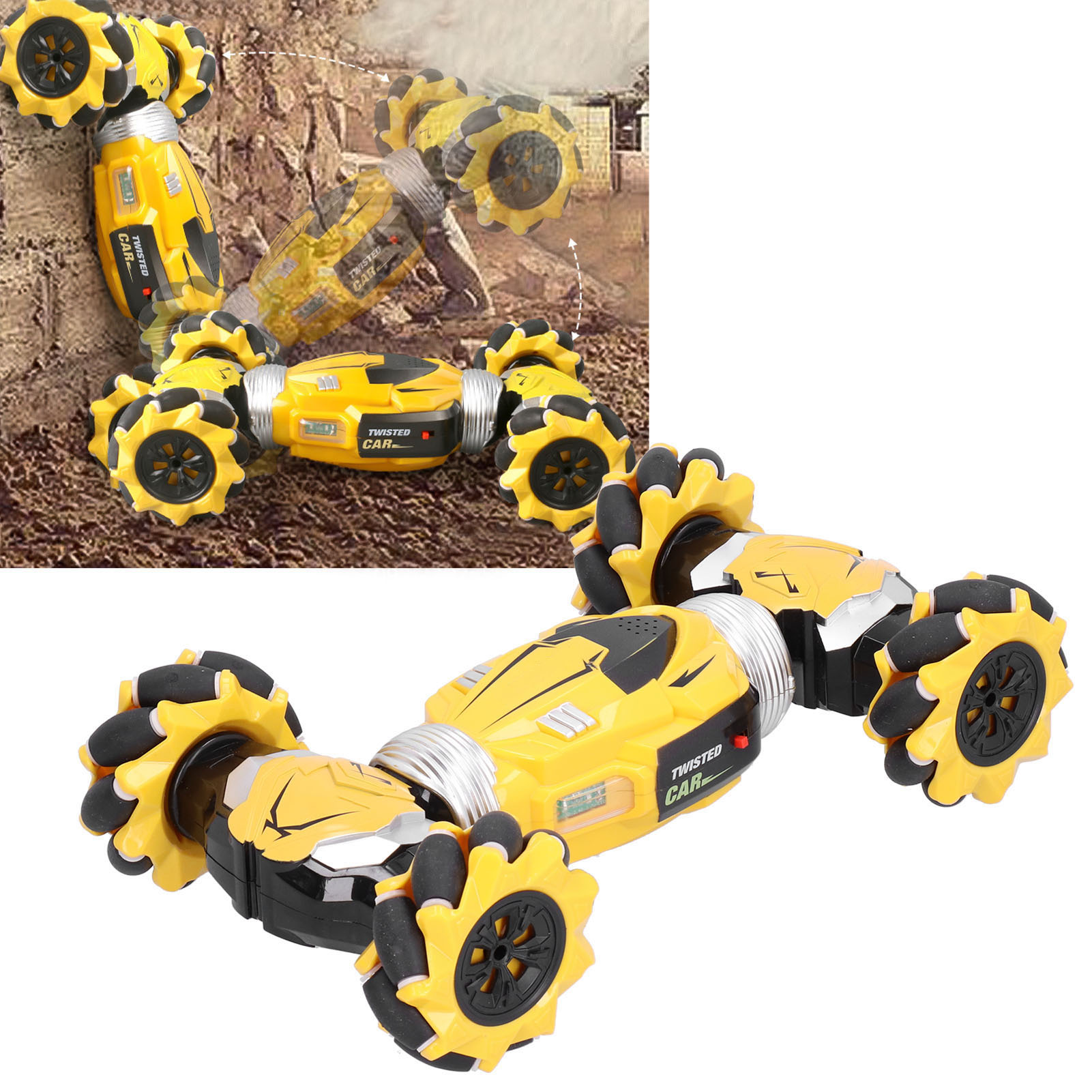 Functions: 2.4GHz, light and music, four-wheel drive lateral walking, four-wheel drive drift, twisting and deforming, climbing mode, forward/backward, left/right turn, 360° rotation, remote control, watch gestures sensing control